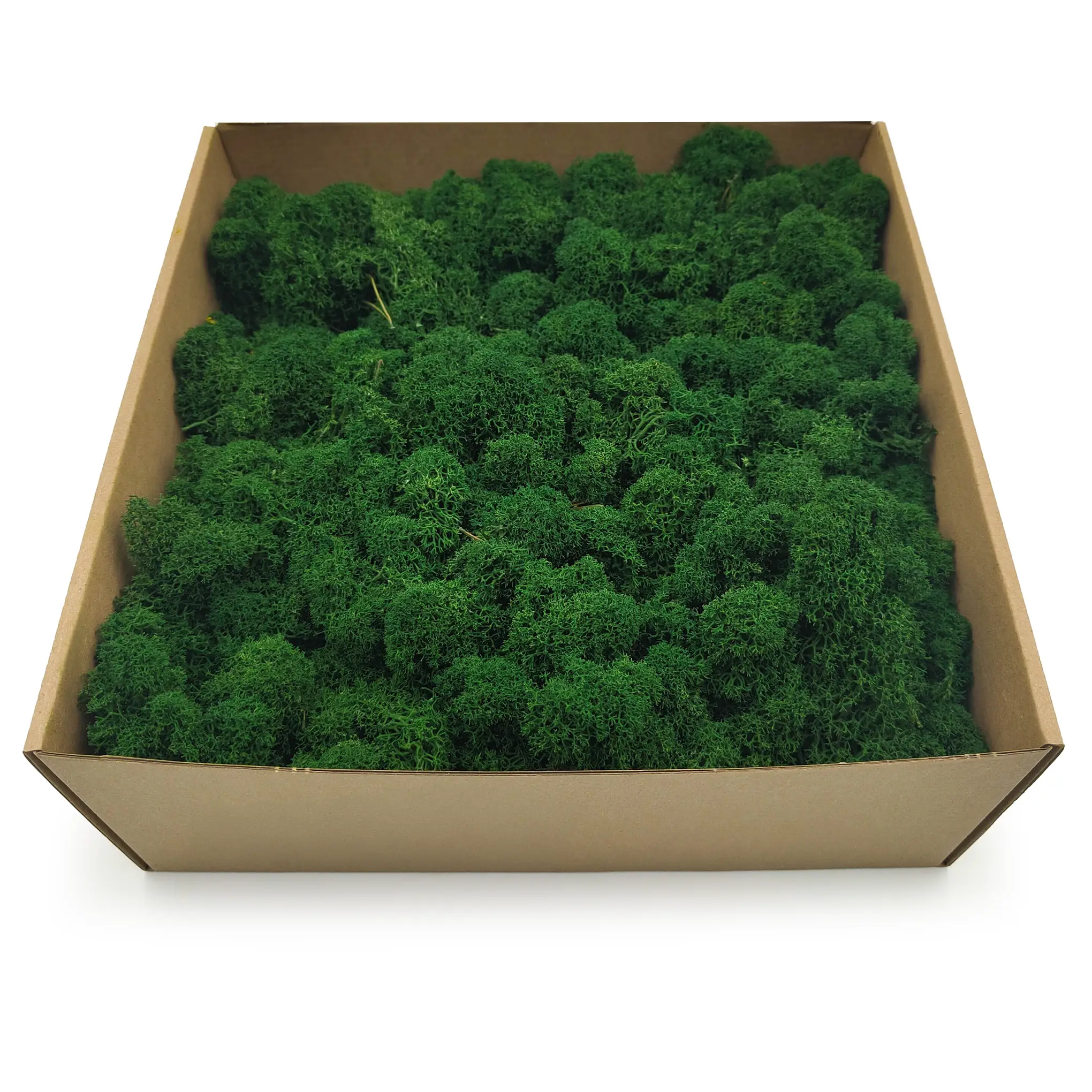 Mech Chrobotek Fiński w odcieniu butelkowej zieleni to propozycja dla wnętrz eleganckich, głębokich kolorystycznie i stonowanych. Ciemny, nasycony zielony kolor przywodzi na myśl las o zmierzchu i doskonale współgra z klasycznym drewnem, złotem, bielą czy grafitem. Jest to odmiana premium: o największych główkach, wyjątkowo oczyszczona, zebrana ręcznie w fińskich lasach.