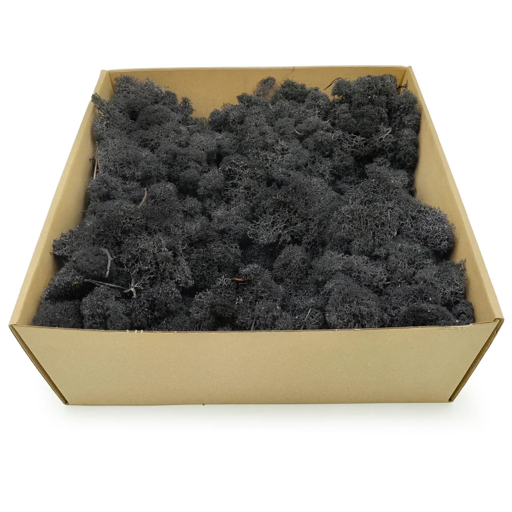 Barwiony na głęboką czerń fiński mech chrobotek to propozycja dla osób, które szukają mocnego kontrastu i eleganckiego efektu w dekoracjach. Czerń podkreśla formę, nadaje wyrazistości i znakomicie łączy się z bielą, złotem i zielenią.