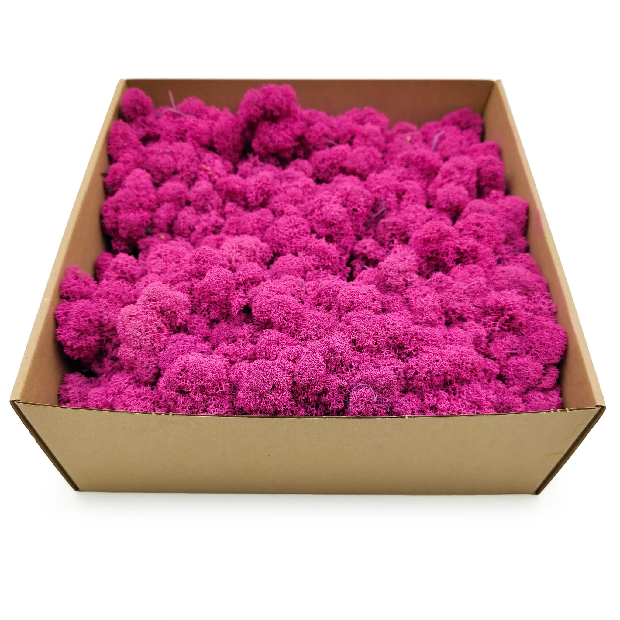 Barwiony na intensywny, głęboki odcień fuksji Mech Chrobotek Fiński to idealny wybór do nowoczesnych, odważnych aranżacji i projektów typu handmade. Jego duże, sprężyste główki gwarantują równomierne pokrycie powierzchni, a wyrazisty kolor przyciąga wzrok i nadaje dekoracjom artystyczny charakter.