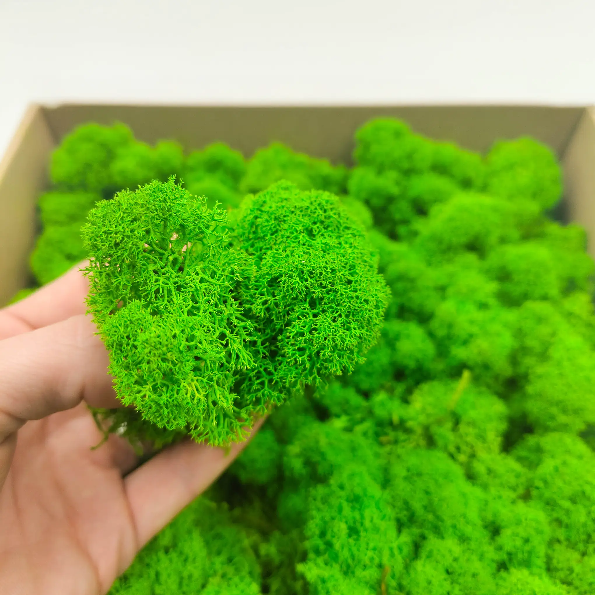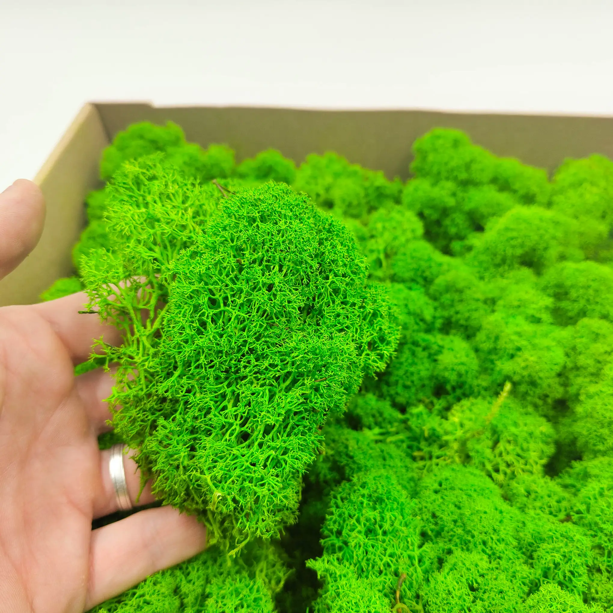 Mech Chrobotek Reniferowy Fiński barwiony na kolor letniej zieleni to doskonały wybór dla tych, którzy pragną dodać kompozycjom świeżości i naturalnej energii. Jego soczysty, zielony odcień idealnie komponuje się z florystyką w stylu boho, rustykalnym czy nowoczesnym.