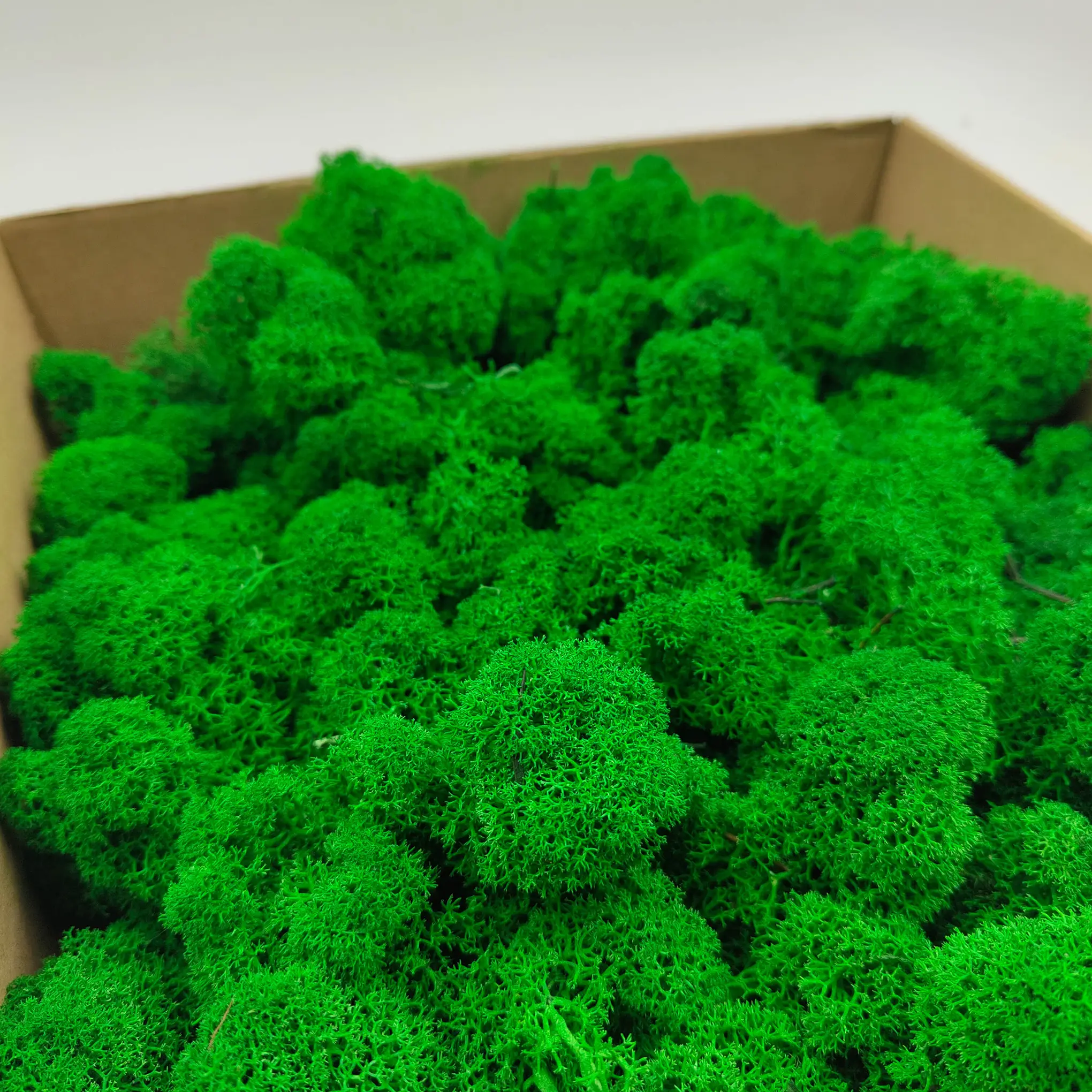 Chrobotek fiński jest zbierany ręcznie w lasach Finlandii z poszanowaniem dla środowiska. Stabilizacja i barwienie naturalnymi metodami sprawiają, że zachowuje on swoją elastyczność i intensywny kolor na lata. Kolor zielony kojarzy się z życiem, równowagą i spokojem – dlatego świetnie wpisuje się w wystrój biur, salonów SPA, restauracji oraz domowych wnętrz.
