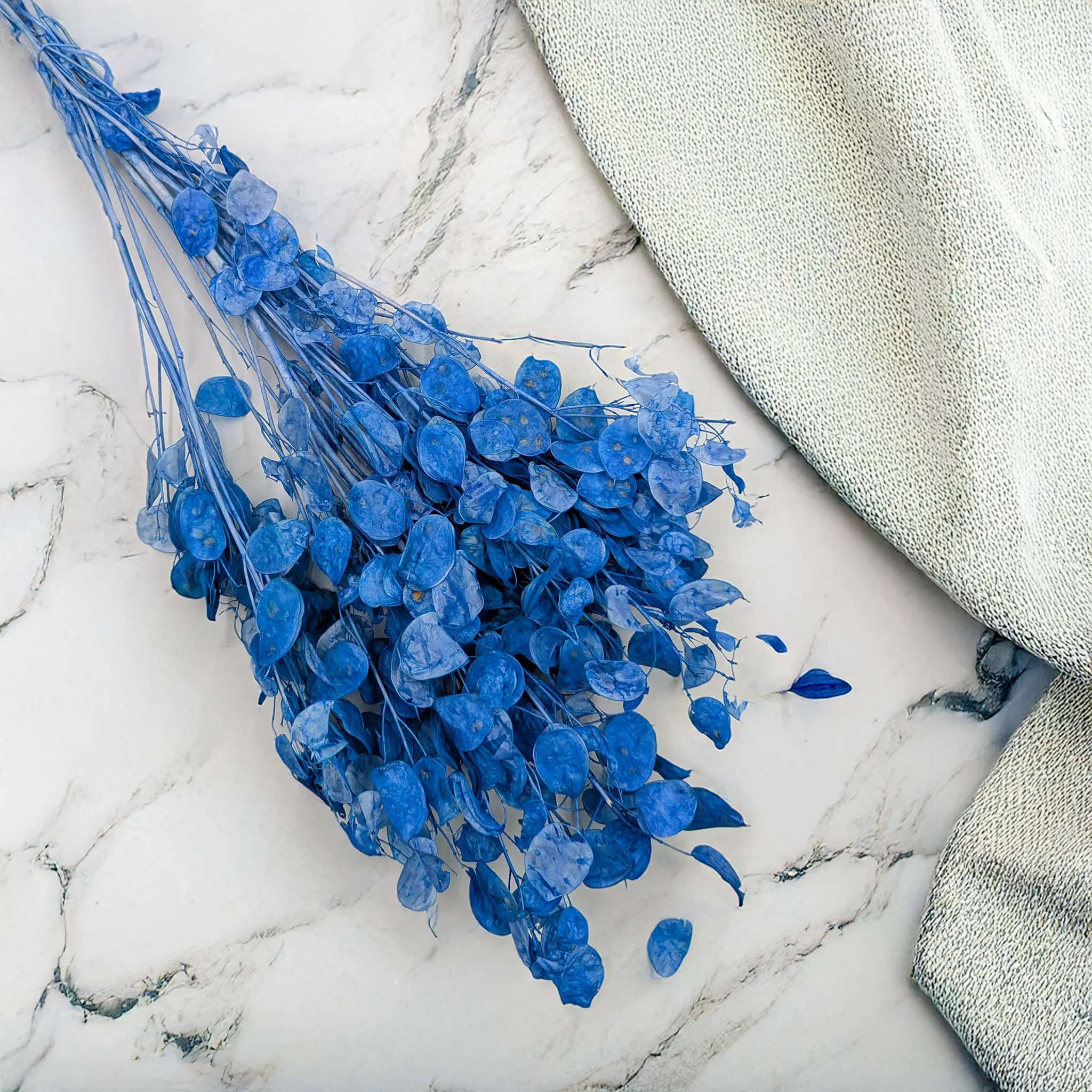 Suszona lunaria w intensywnym niebieskim odcieniu to elegancki akcent dla wszystkich, którzy szukają wyrazistej, a zarazem subtelnej dekoracji. Jej lekkość i półprzezroczysta struktura sprawiają, że idealnie pasuje do kompozycji boho, japandi i rustykalnych aranżacji ślubnych.