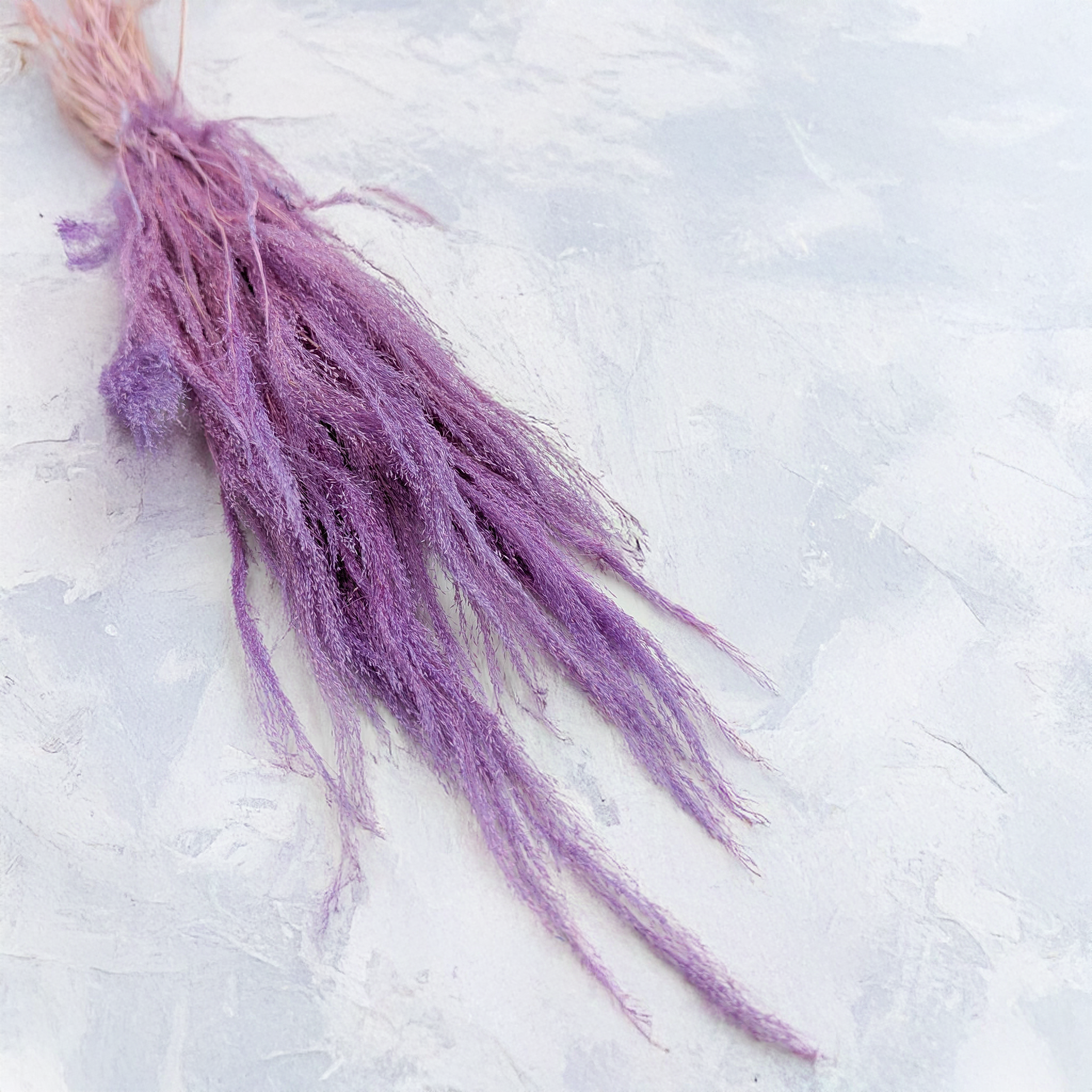 Mietlica jest suszona i barwiona z dbałością o zachowanie struktury, objętości i miękkości. Każda wiązka jest unikalna, stanowiąc delikatną, ale trwałą dekorację.