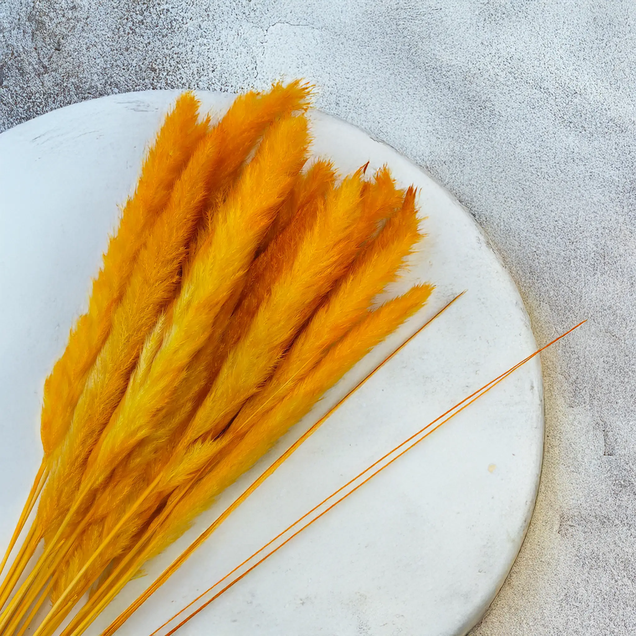 Mini trawa pampasowa w kolorze pomarańczowym to wyjątkowy element dekoracyjny, który wnosi do wnętrz energię, ciepło i przyjemny akcent kolorystyczny. Jej lekkie, puszyste pióra doskonale uzupełniają nowoczesne oraz klasyczne aranżacje, nadając im przytulności i unikalnego charakteru. Sprawdzi się zarówno w bukietach ślubnych, wiankach, flower boxach, jak i w dekoracjach stołowych czy wystroju wnętrz w stylu boho i rustykalnym.
