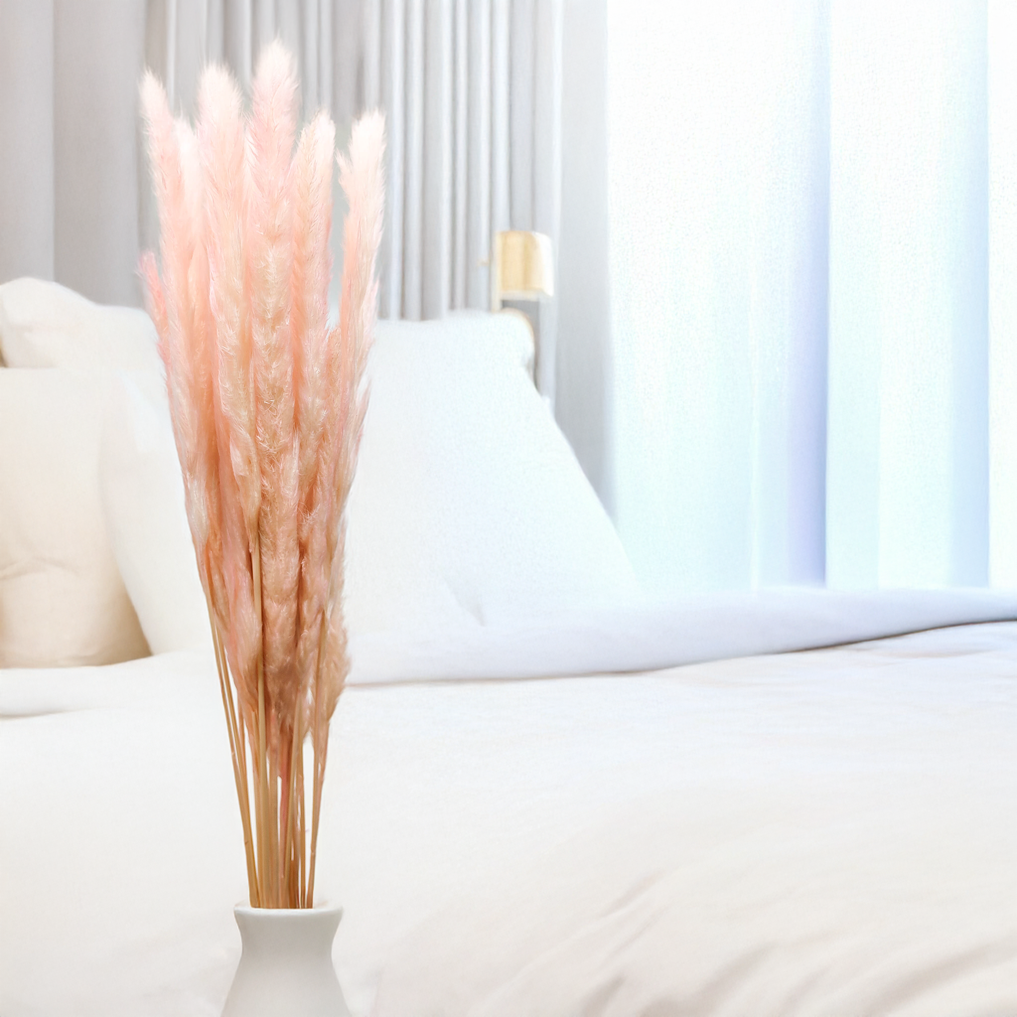 Trawa pampasowa powinna być przechowywana w suchym miejscu, z dala od wilgoci i bezpośrednich promieni słonecznych, które mogą wpływać na jej kolor i trwałość. Złamania lub nadłamania łodyg są naturalne dla tego typu produktów, podobnie jak delikatne osypywanie się nasion. Aby zwiększyć objętość pampasów, wystarczy delikatnie przedmuchać je suszarką do włosów ustawioną na chłodny nawiew.