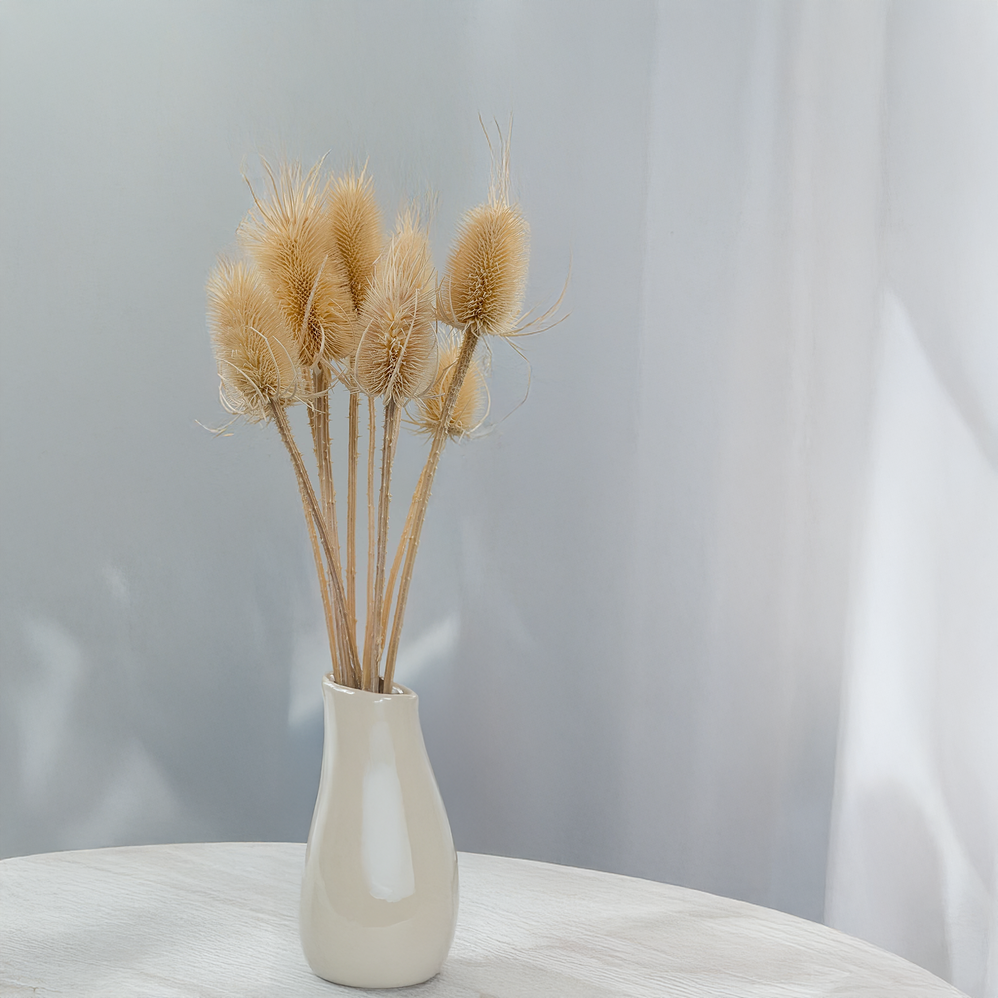 • Styl boho i naturalny: Suszony oset to doskonały wybór dla osób poszukujących nietypowych, unikalnych lub boho aranżacji. Jego subtelny kolor i charakterystyczny wygląd dodają wnętrzom odrobinę dzikości i egzotyki, tworząc atmosferę bliską naturze.