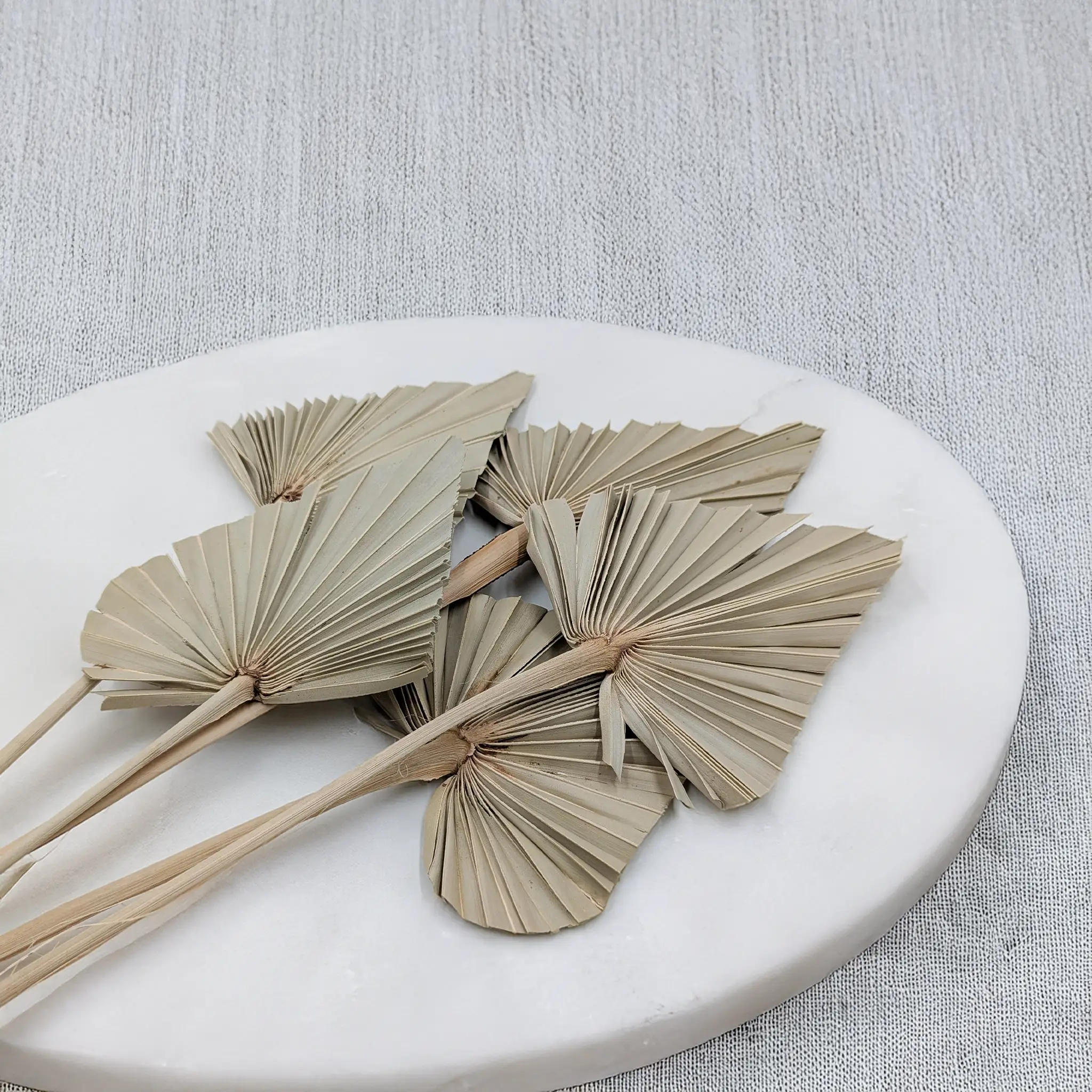 Cięte liście palmy palm spear w kolorze naturalnym, inaczej zwane wachlarzem lub strzałką z palmy, w bukiecie znajduje się 5 sztuk liści palmy, ich najczęstsze zastosowanie to dekoracja tortów, stroiki i suszone bukiety.