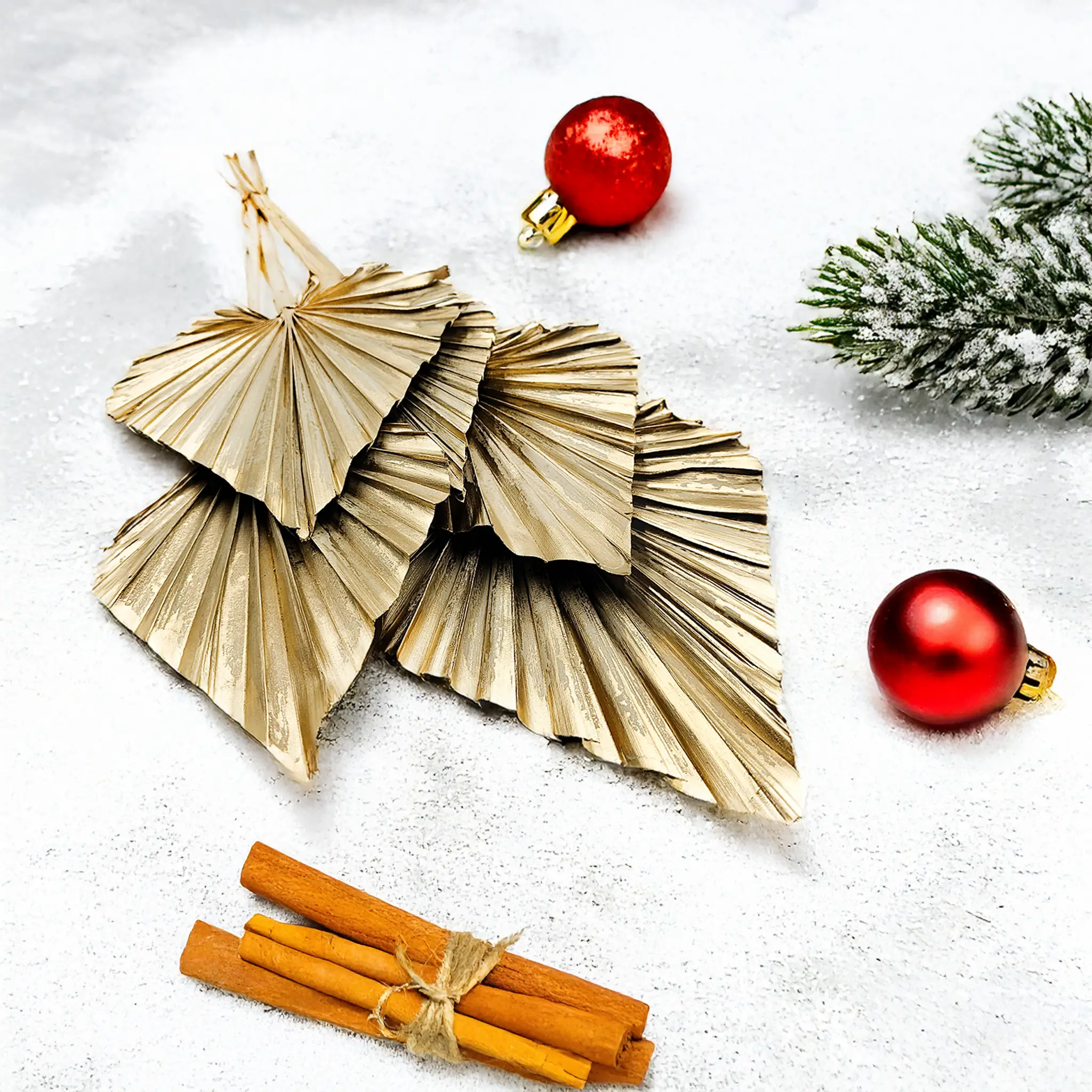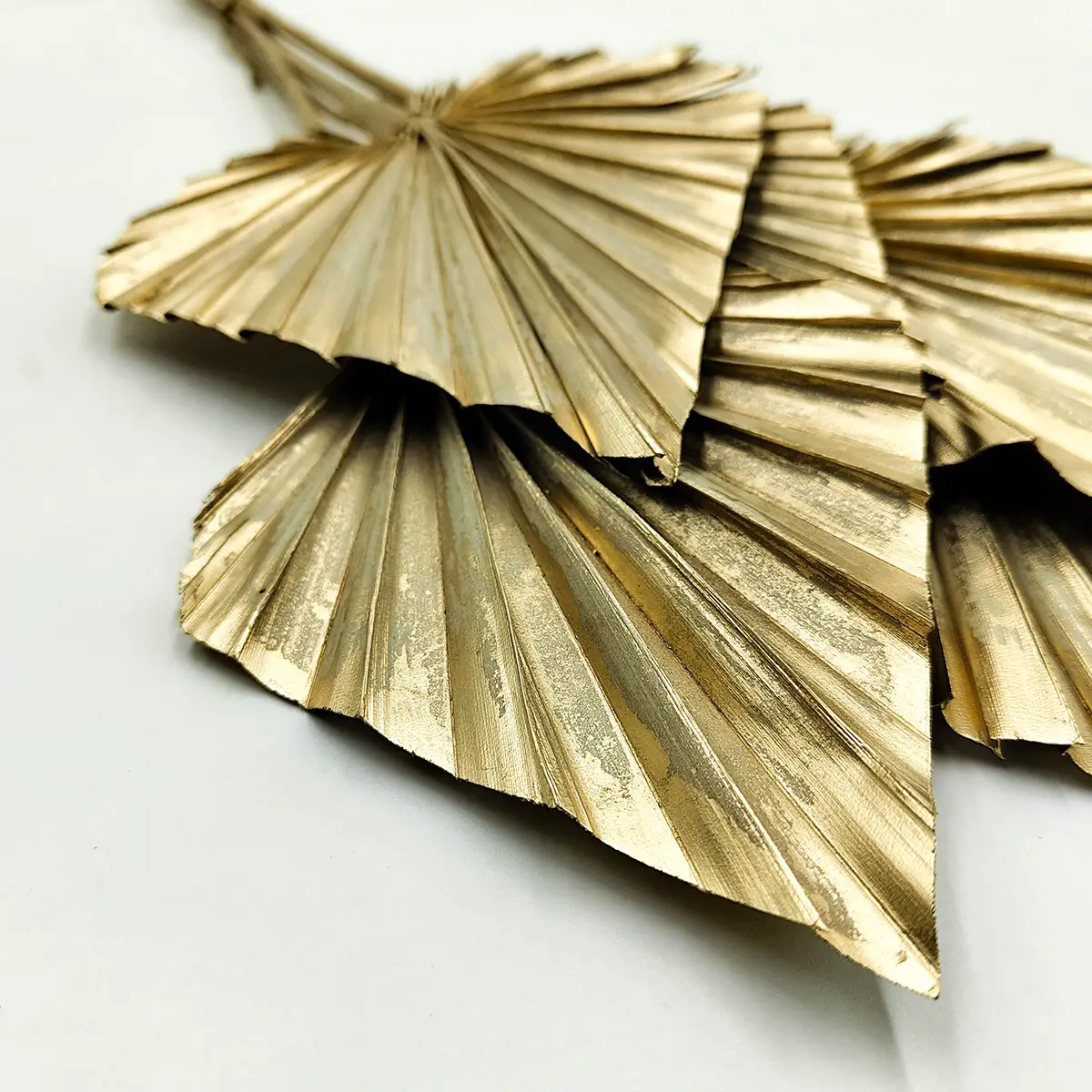 Cięte liście palmy palm spear w kolorze złotym, inaczej zwane wachlarzem lub strzałką z palmy, w bukiecie znajduje się 5 sztuk liści palmy, ich najczęstsze zastosowanie to dekoracja tortów, stroiki i suszone bukiety.