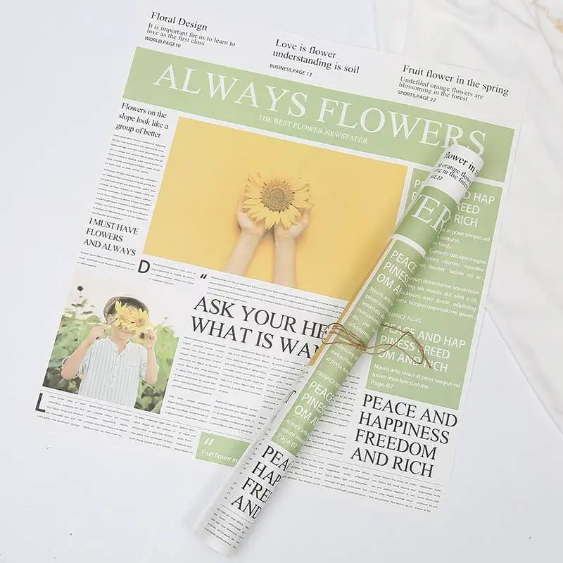 Jedna strona papieru jest zadrukowana, naśladując autentyczny wygląd gazety. Odpowiednio zaprojektowane wzory, kolumny tekstu i zdjęcia sprawiają, że papier ten stanowi doskonałe tło dla aranżacji kwiatowych. Drugą stronę papieru charakteryzuje gładka powierzchnia.
