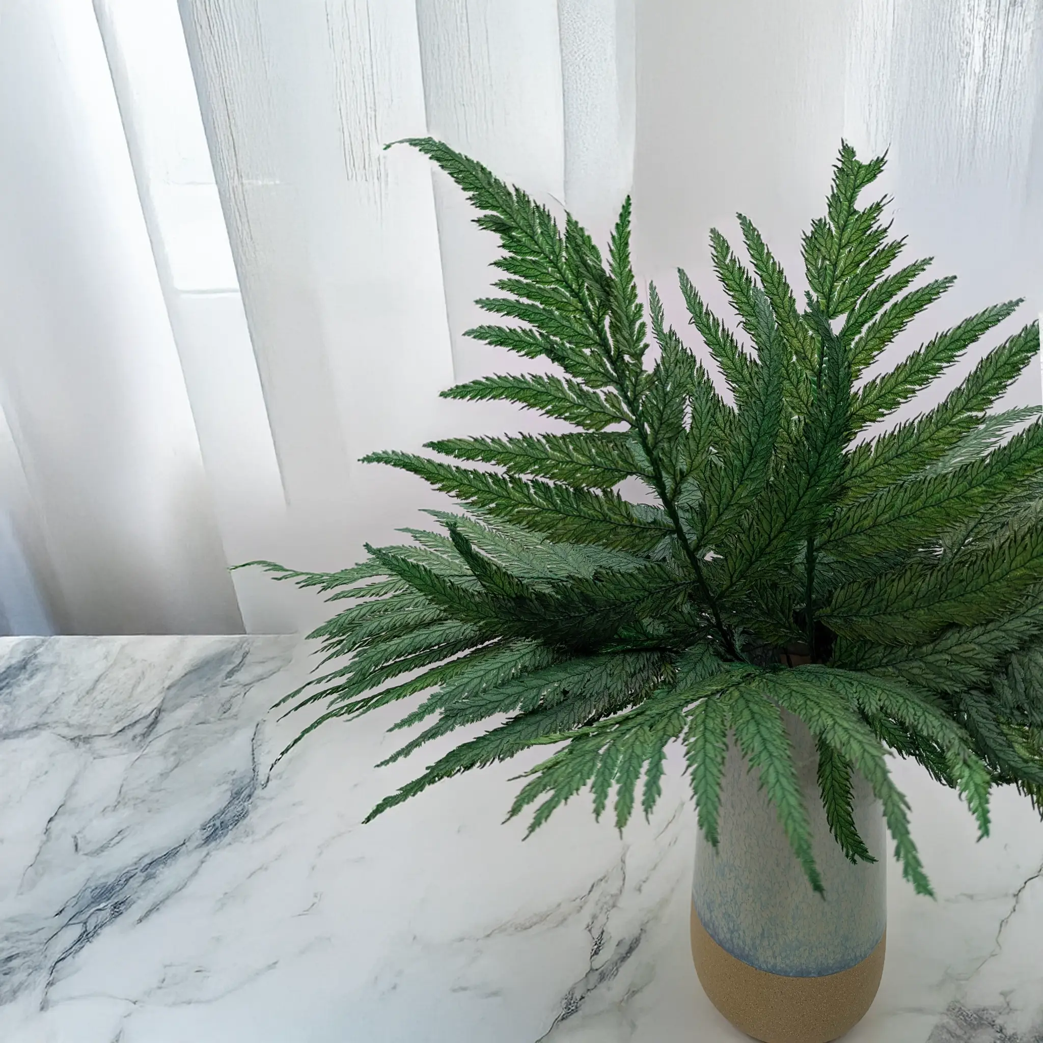 Paproć pióropusznik strusi to zachwycający produkt, który wnosi do wnętrz elegancję, wyrafinowanie i unikalny charakter. Dzięki zaawansowanej stabilizacji, te delikatne paprocie zachowują swoje oryginalne kształty i zielony kolor, nie wymagając żadnej pielęgnacji. To idealny wybór dla miłośników trwałych i wyjątkowych elementów dekoracyjnych.