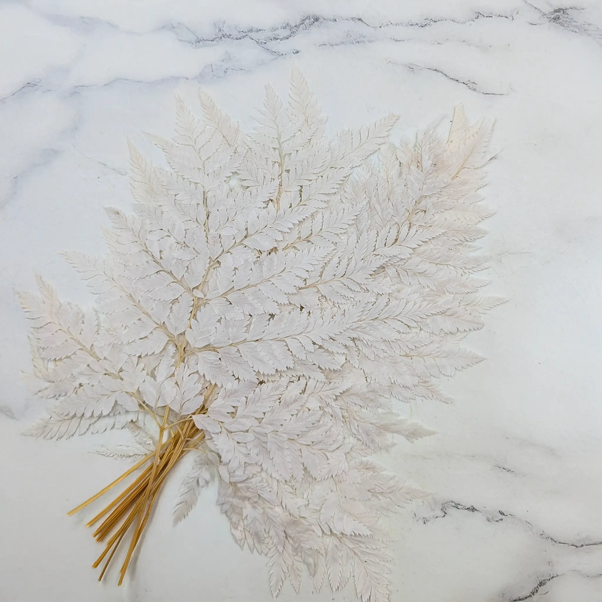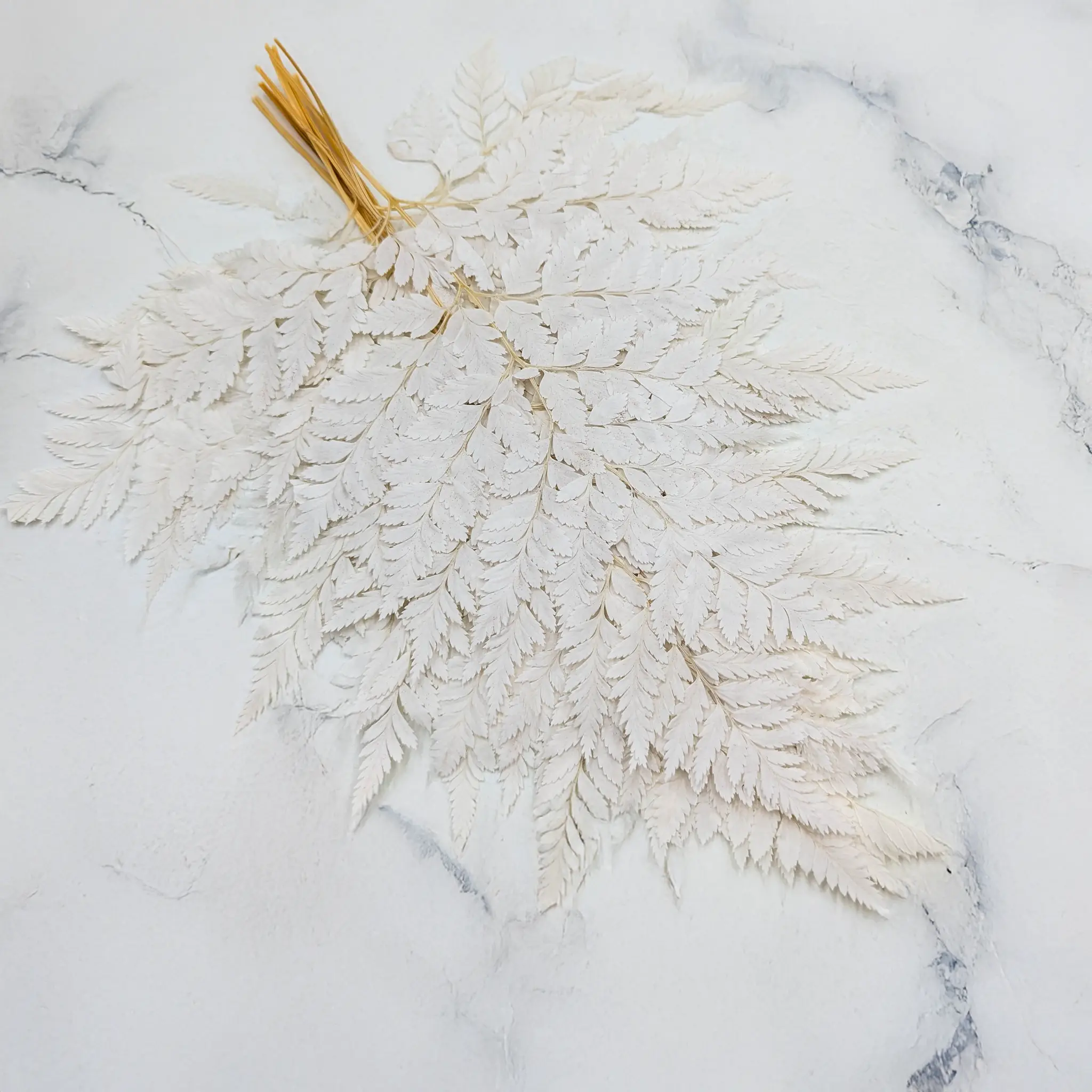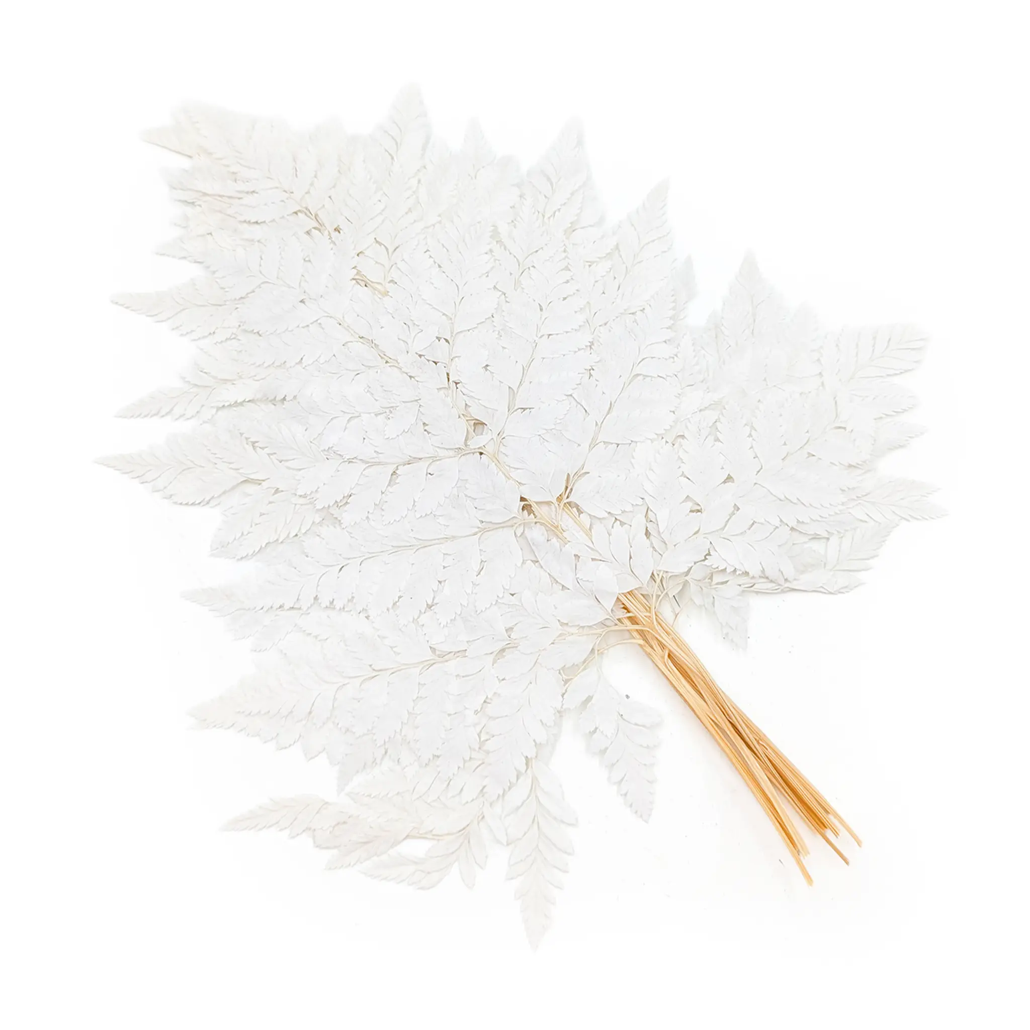 Paproć stabilizowana - Skórzasta Long - Bielona to atrakcyjny produkt w florystyce, który cieszy się dużą popularnością ze względu na swoją naturalną urodę i trwałość. Kolor biały jest niezwykle ważny w florystyce, ponieważ symbolizuje czystość, niewinność, harmonię, elegancję i odświętność. Paproć stabilizowana w bieli jest doskonałym wyborem dla tworzenia dekoracji ślubnych i innych uroczystości, gdzie ten kolor ma szczególne znaczenie.