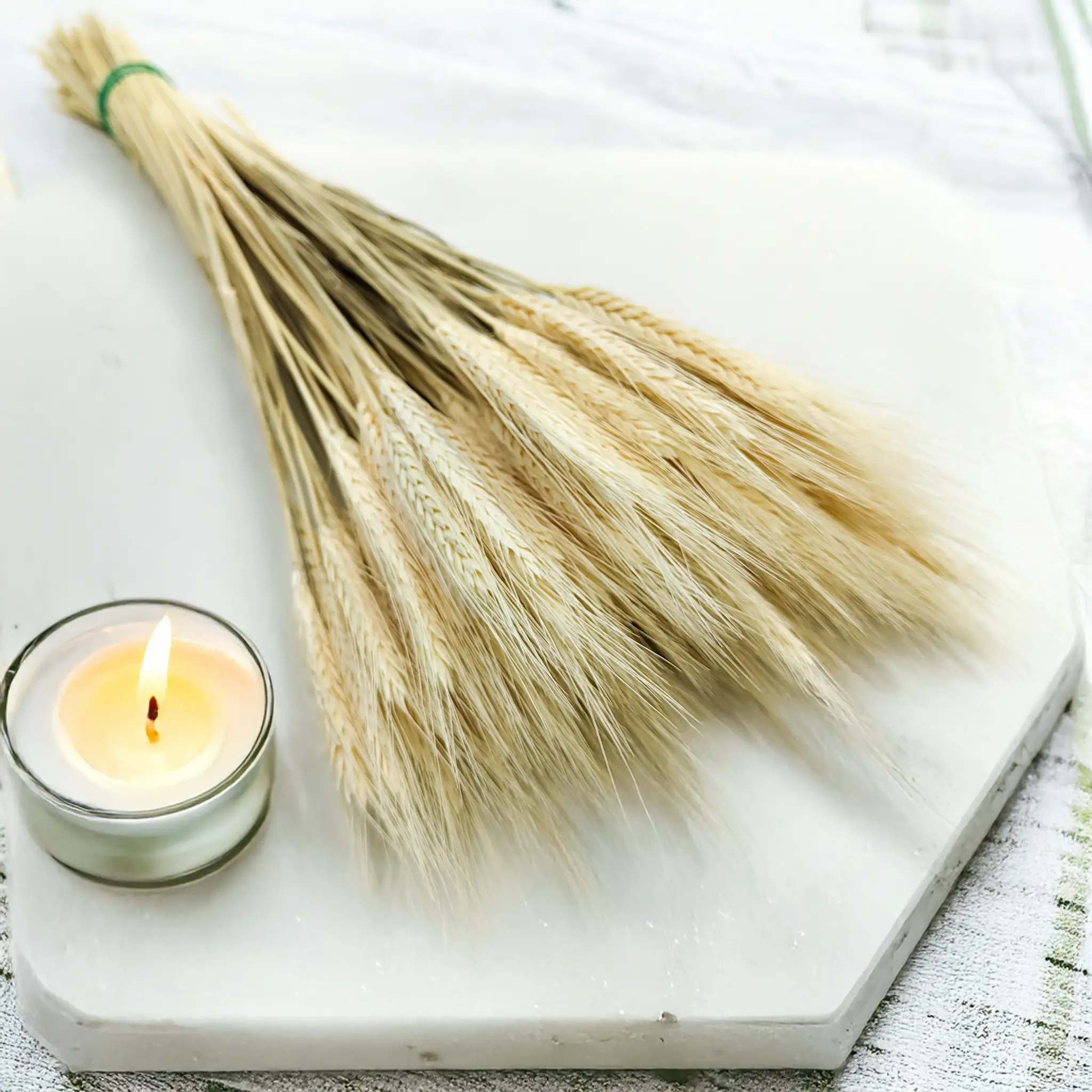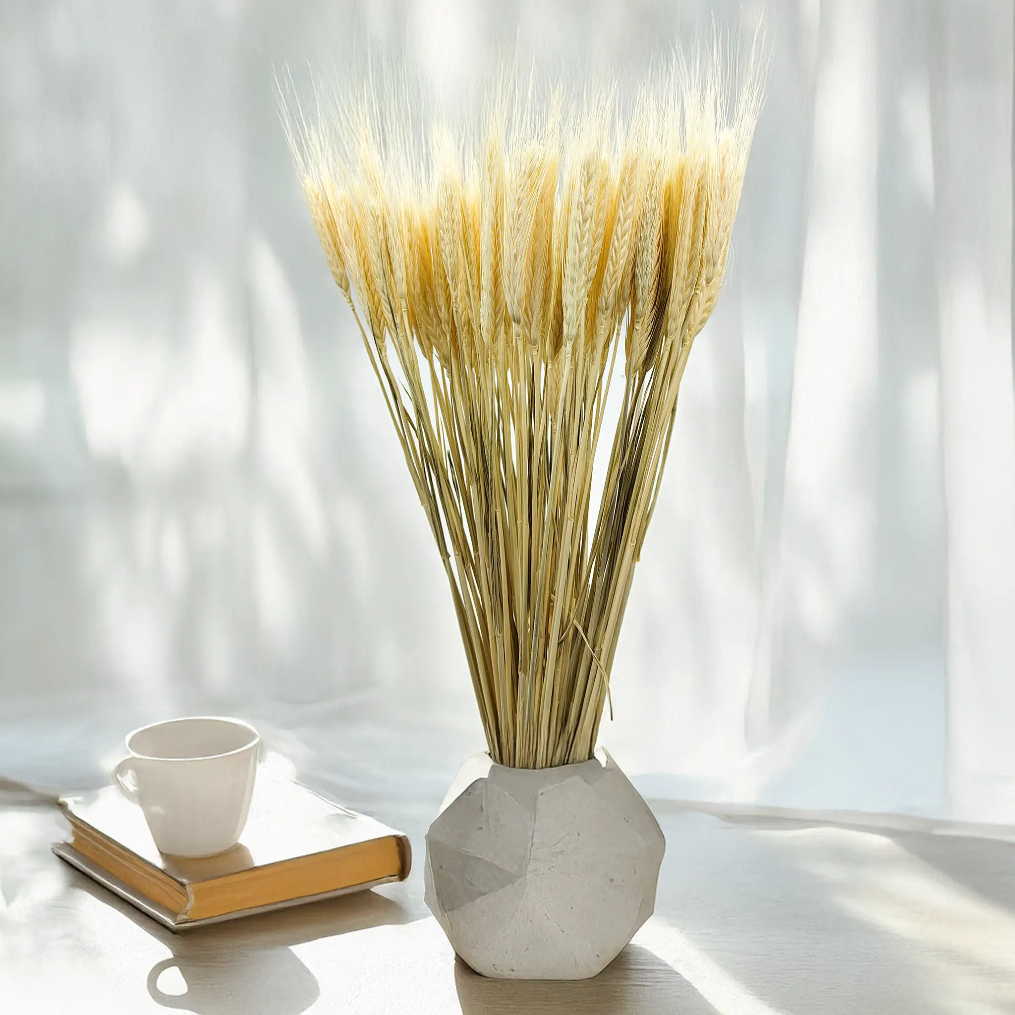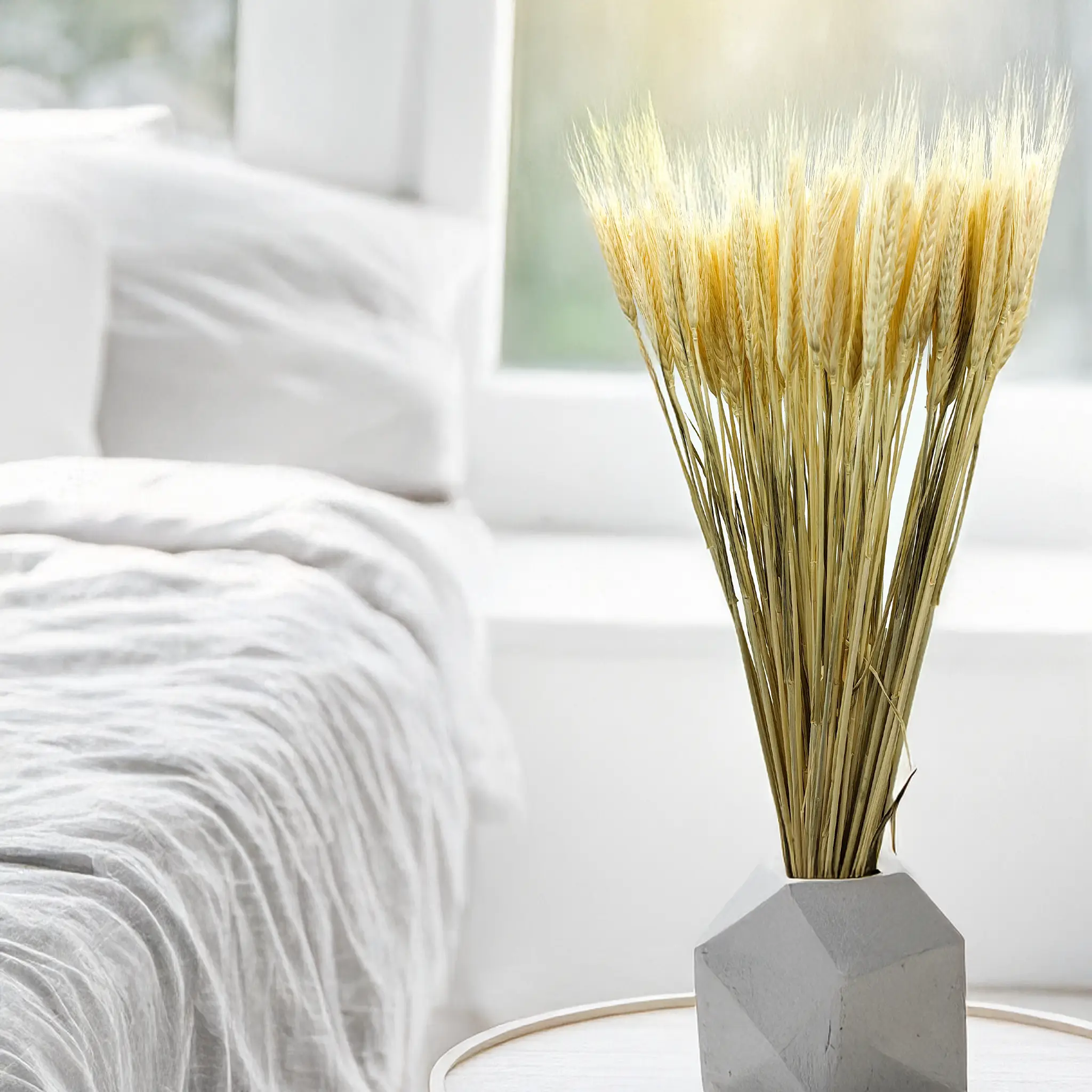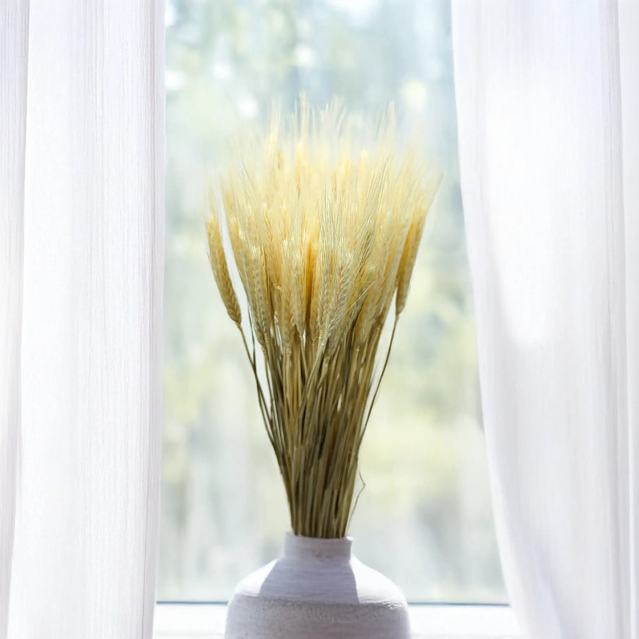Bielone suszone pszenżyto to naturalna ozdoba o wyjątkowej lekkości i subtelności. Jego jasny kolor wnosi do przestrzeni świeżość, spokój i nowoczesną estetykę. Idealnie pasuje do wnętrz w stylu japandi, minimalistycznym czy skandynawskim.