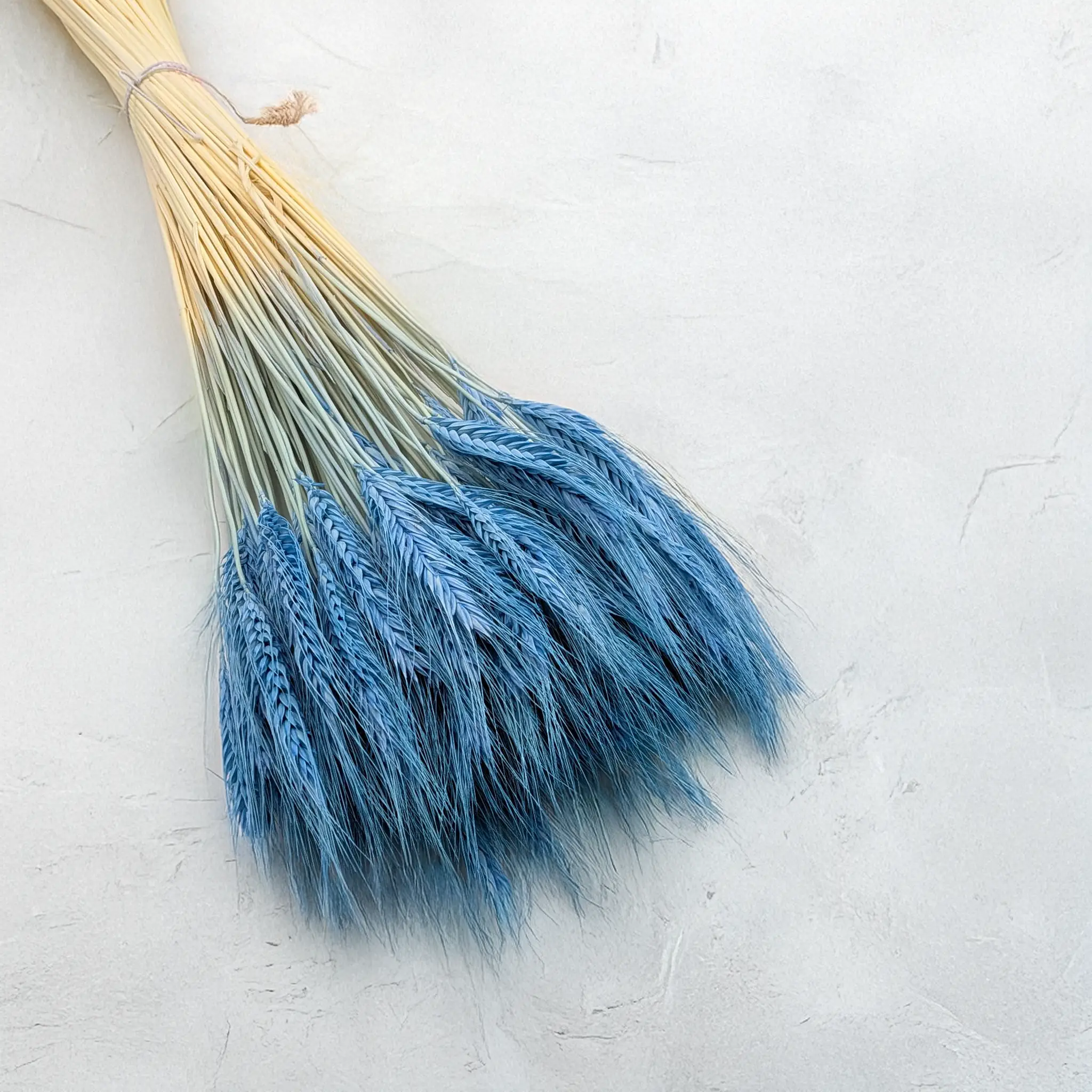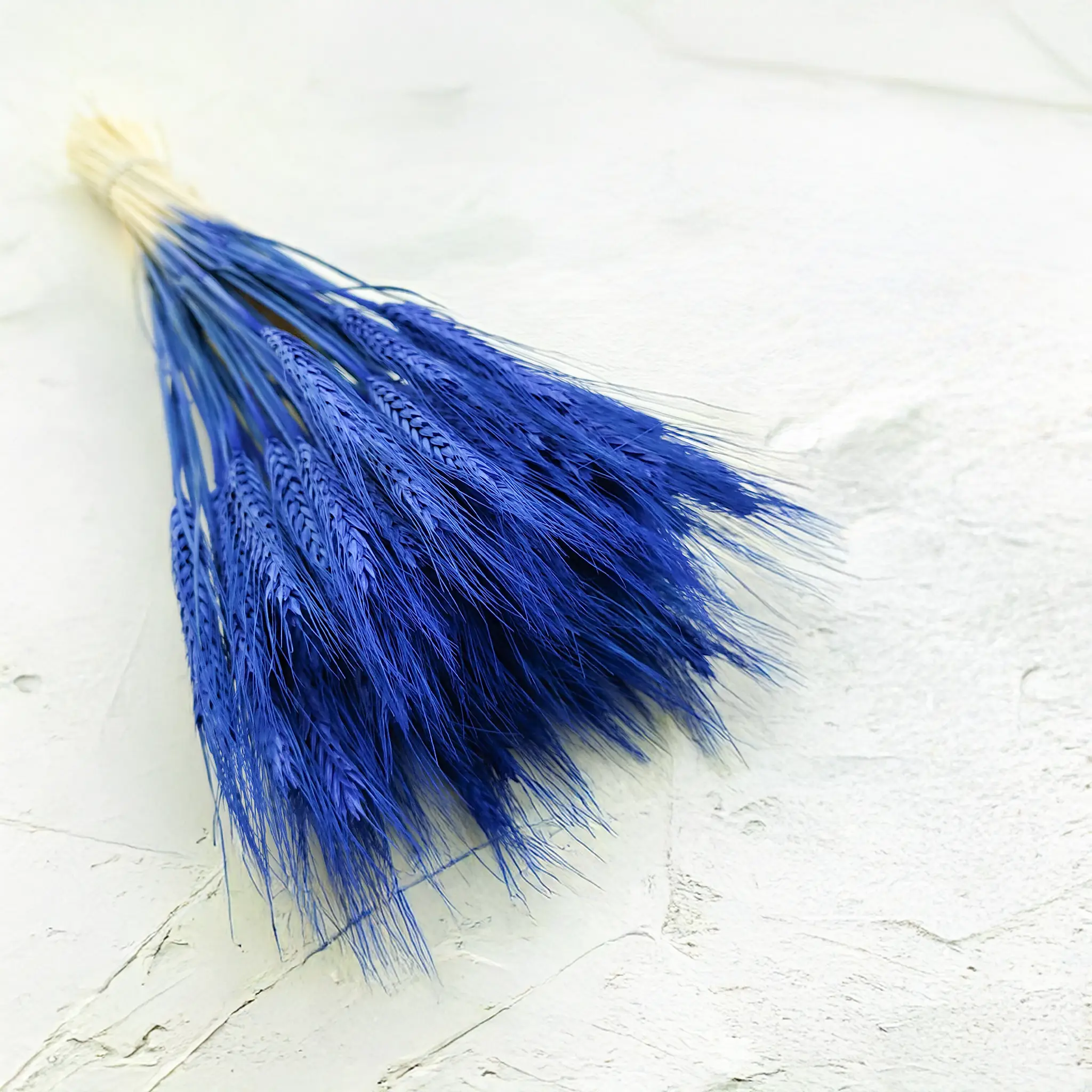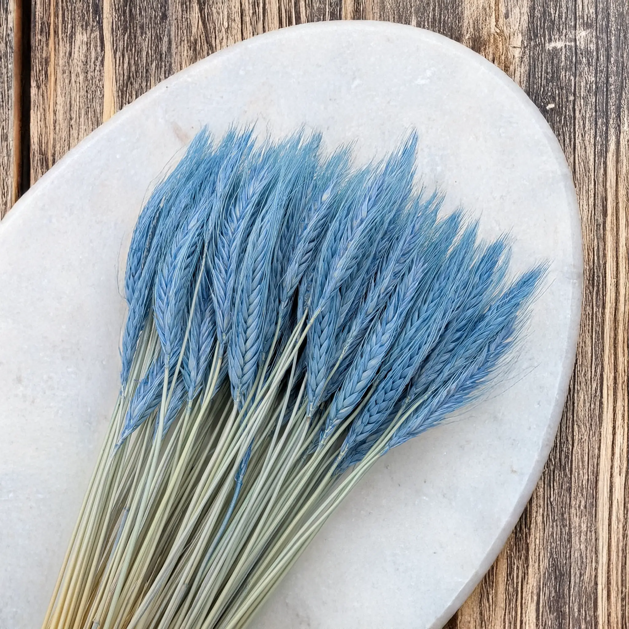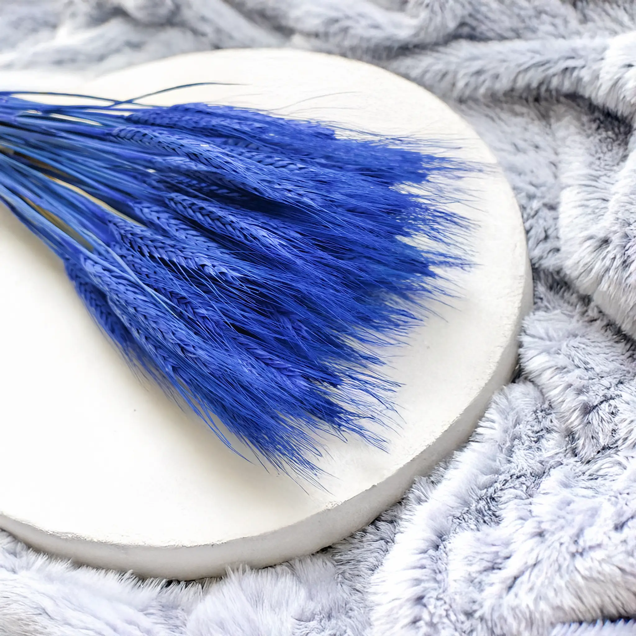 Niebieskie suszone pszenżyto to niezwykła dekoracja, która przyciąga uwagę swoją intensywną, chłodną barwą. Symbolizuje kreatywność, spokój i głębię – doskonałe do kompozycji z nutą nowoczesnej elegancji lub artystycznego minimalizmu.