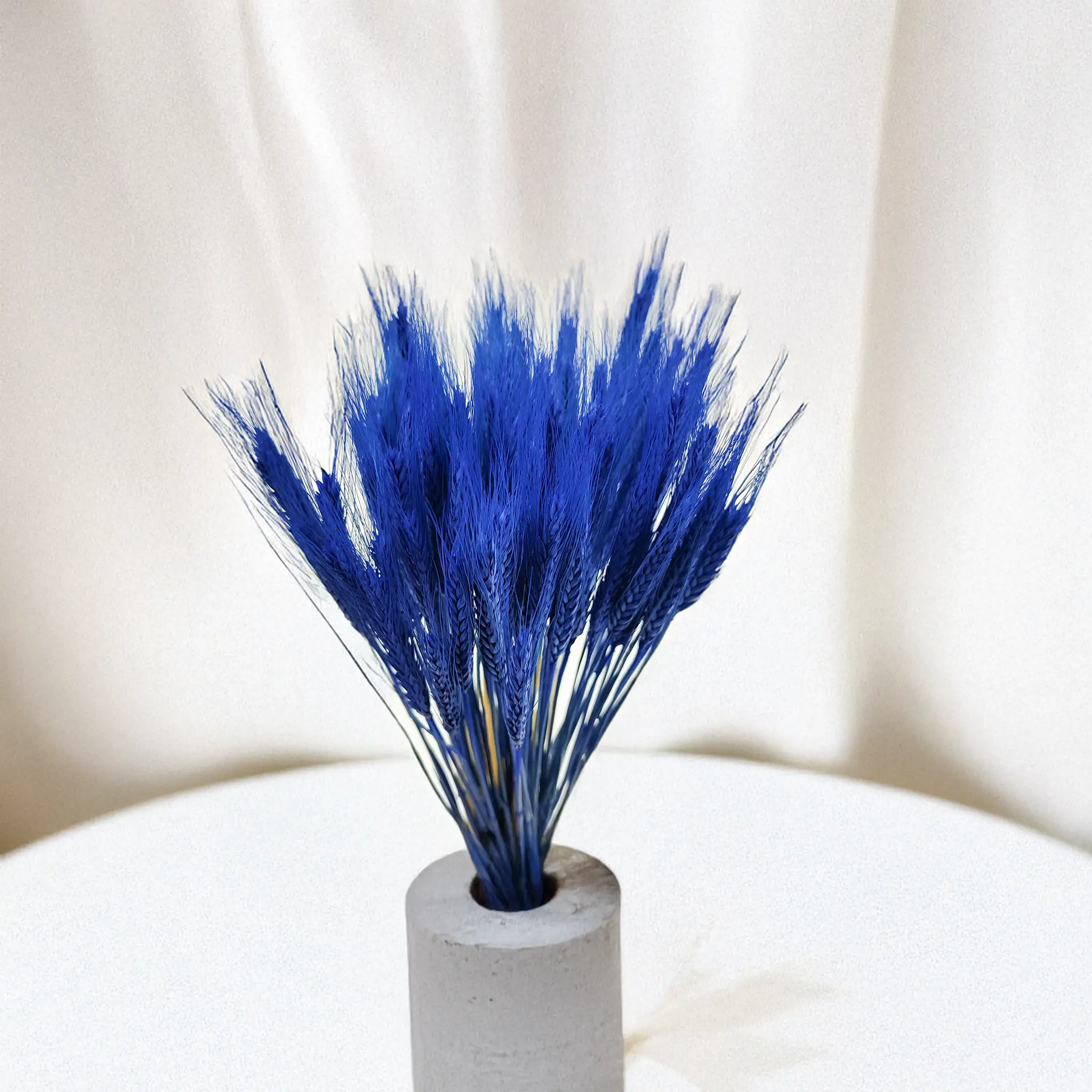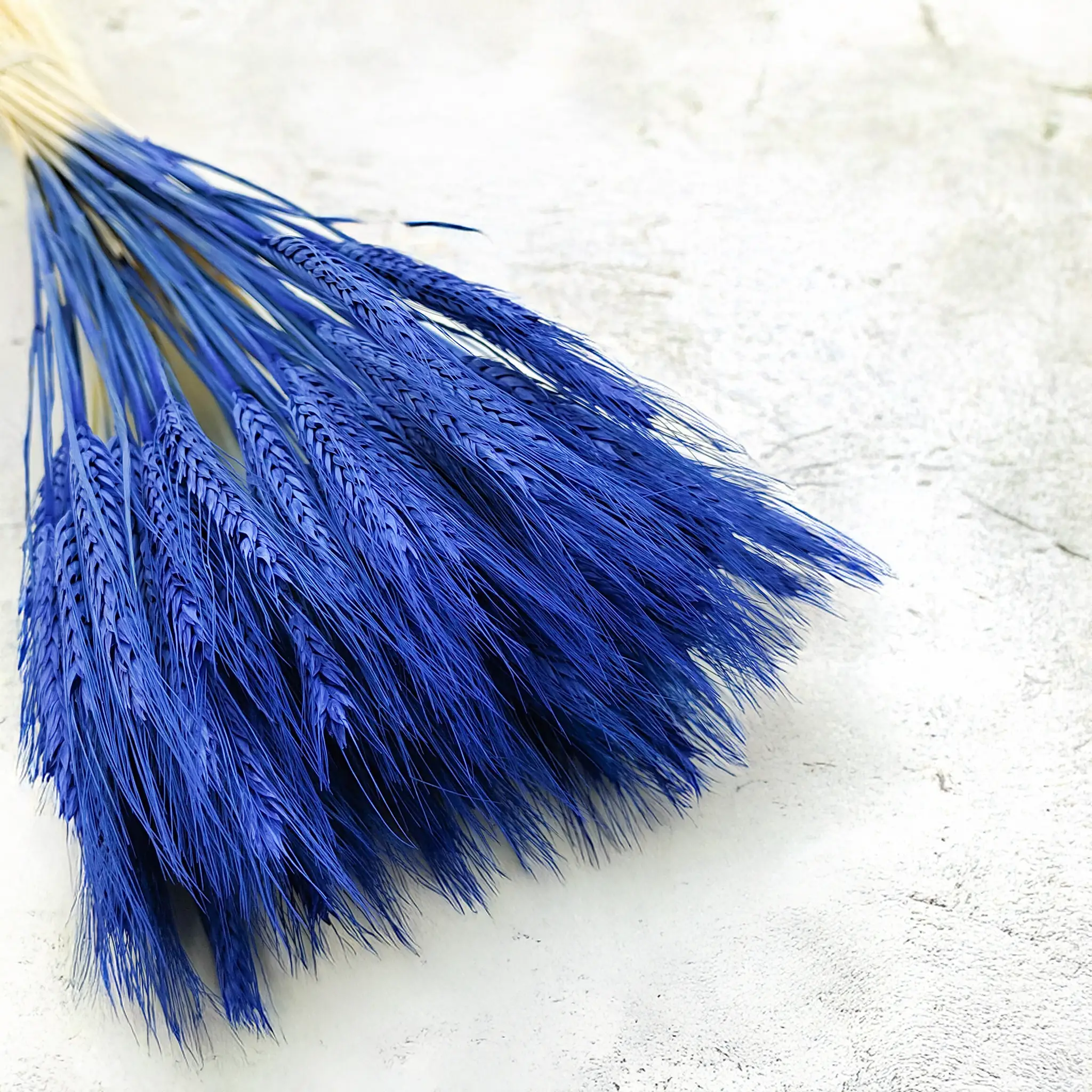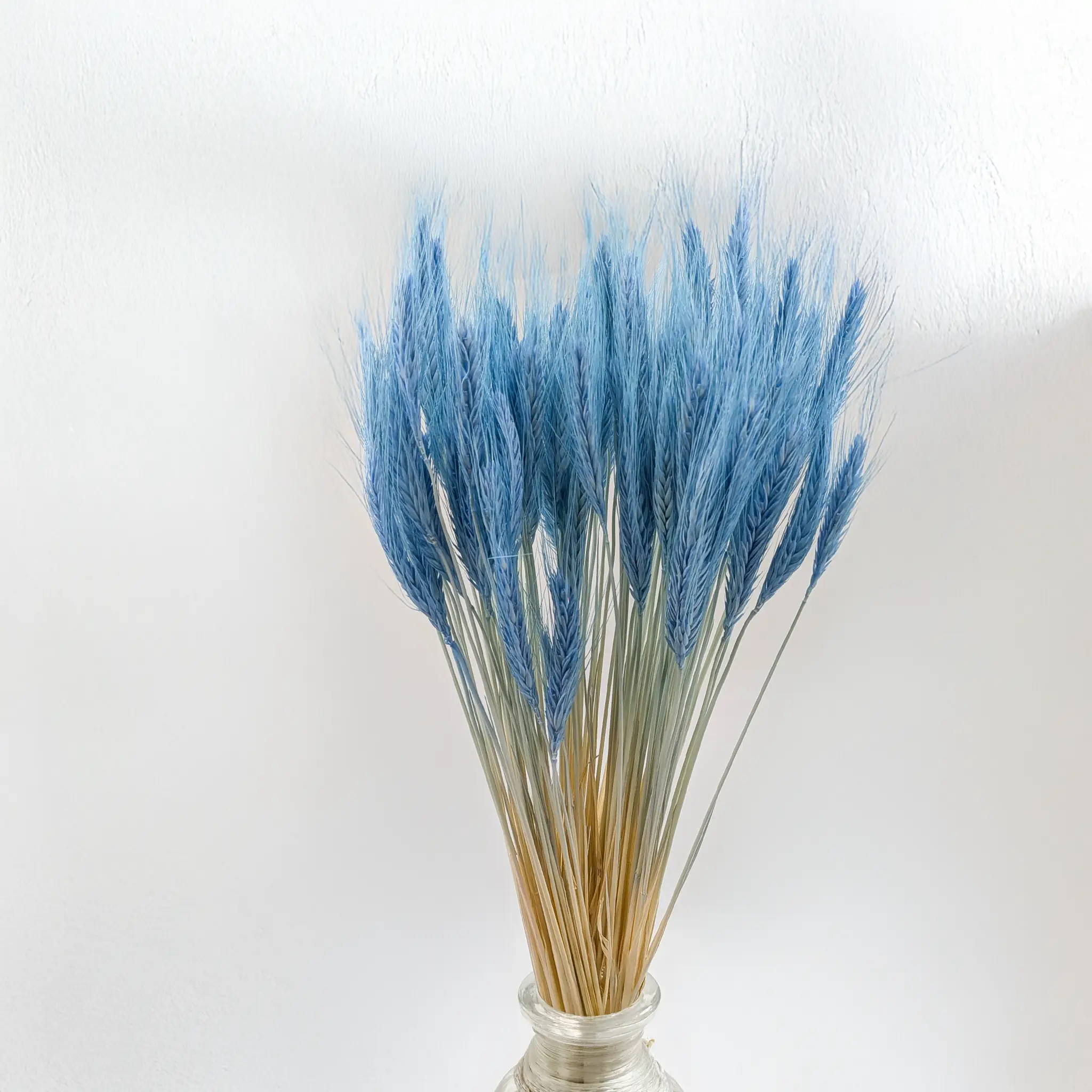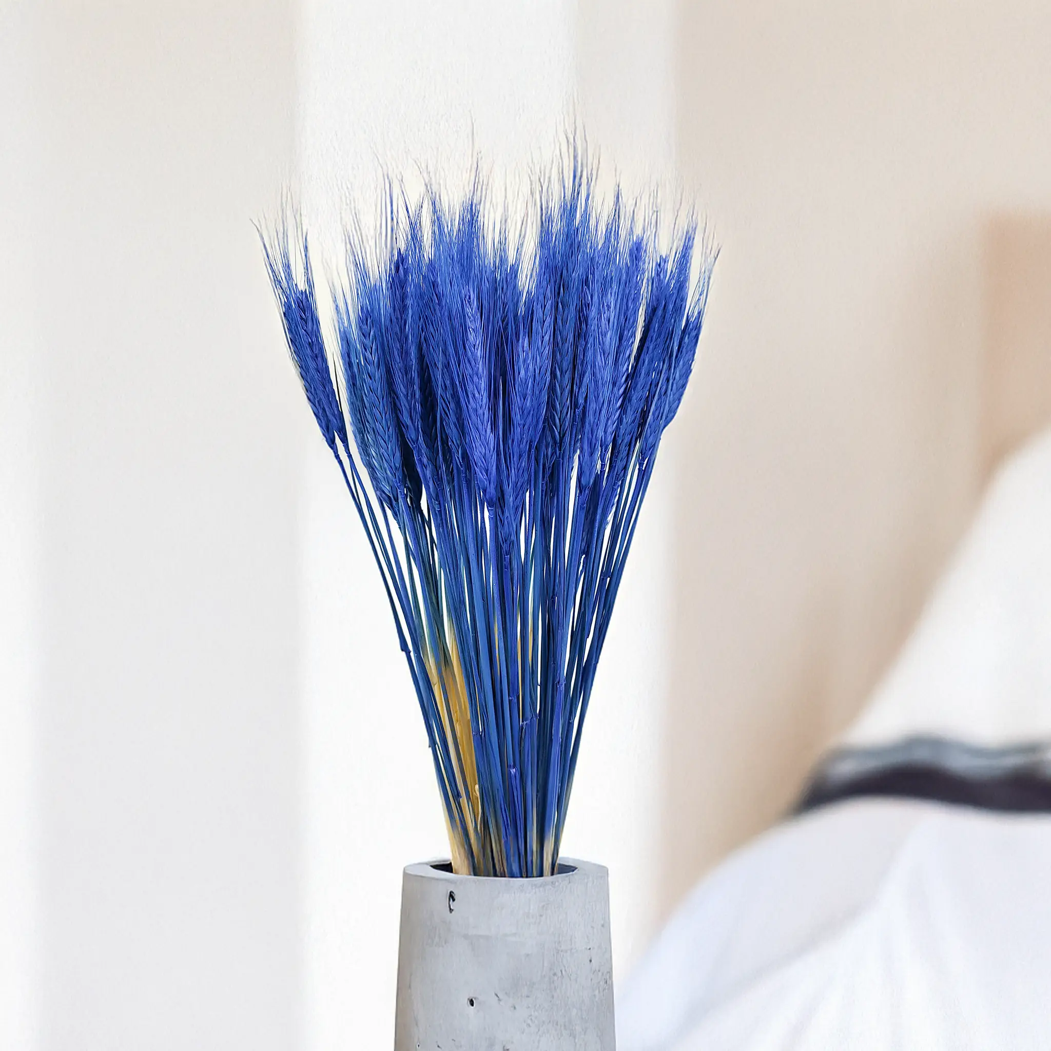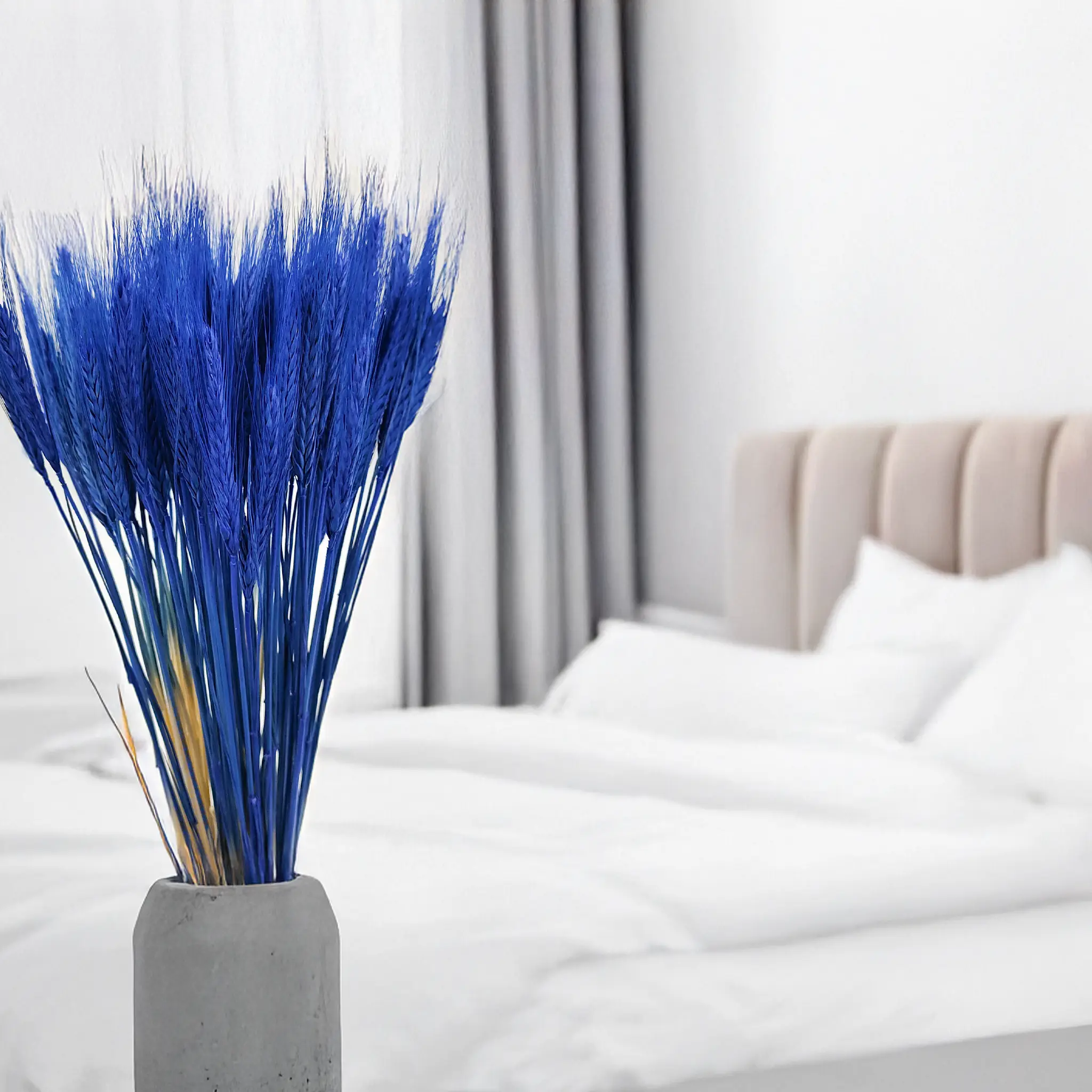Niebieskie suszone pszenżyto to niezwykła dekoracja, która przyciąga uwagę swoją intensywną, chłodną barwą. Symbolizuje kreatywność, spokój i głębię – doskonałe do kompozycji z nutą nowoczesnej elegancji lub artystycznego minimalizmu.