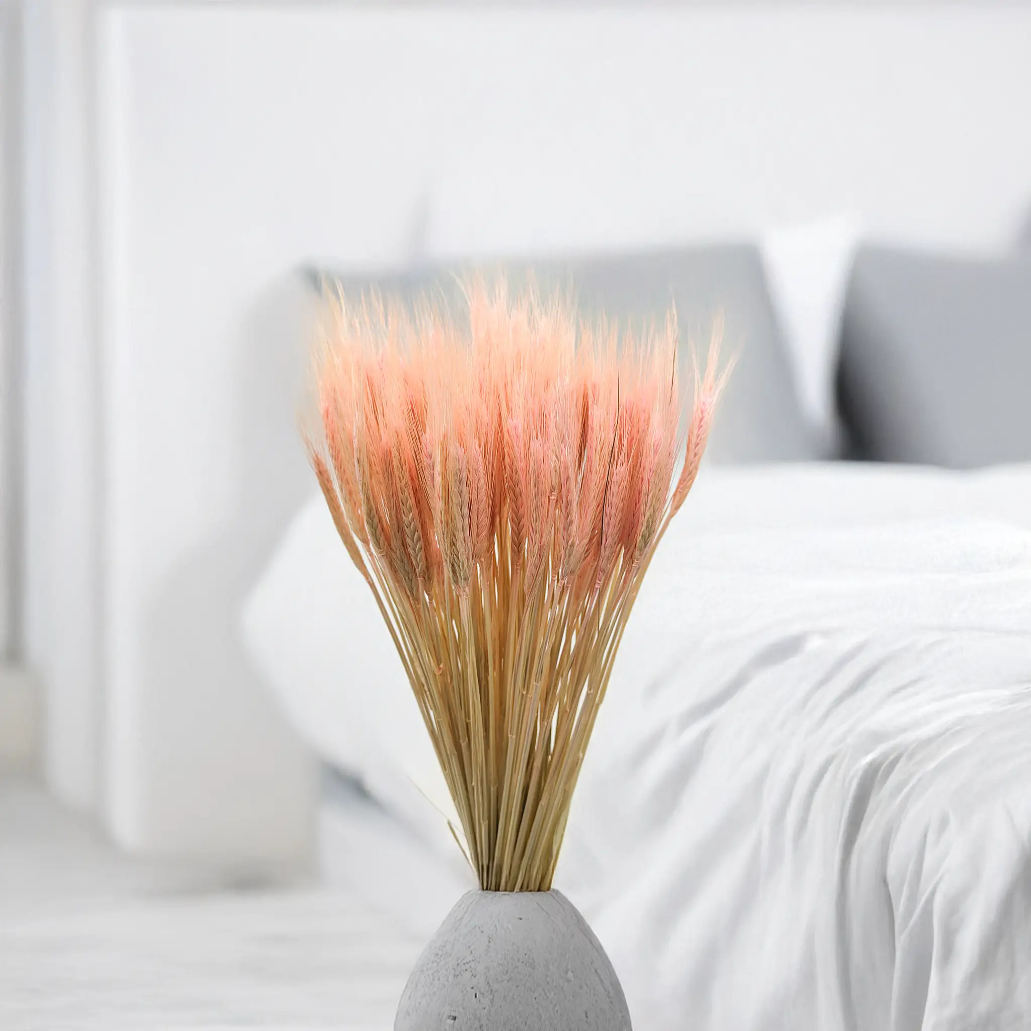 Różowe pszenżyto to niezwykle subtelna dekoracja, która wprowadza do wnętrz lekkość, harmonię i świeżość. Pastelowy róż symbolizuje delikatność, uczucia i kobiecość – idealny do aranżacji w stylu vintage, shabby chic i romantycznym boho.