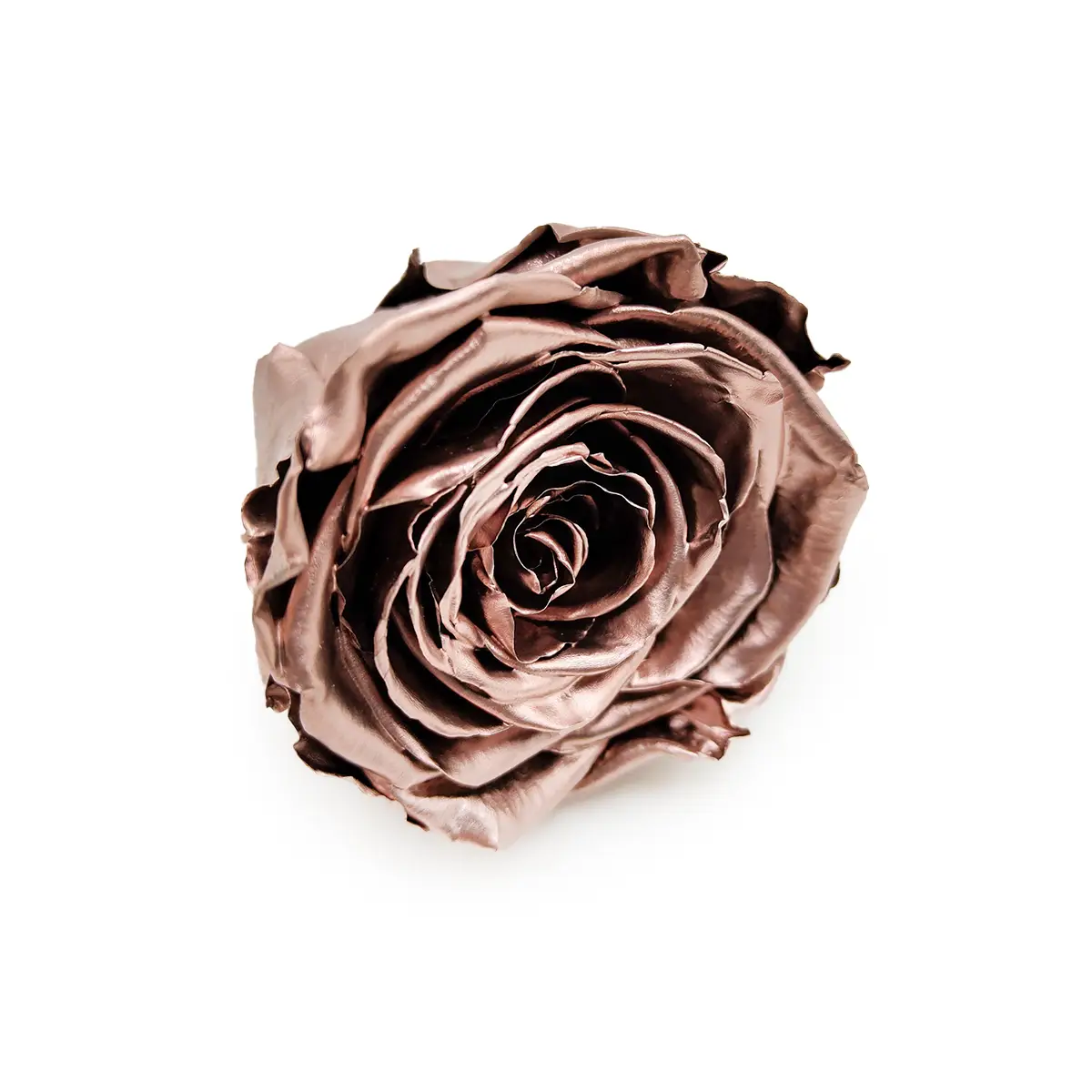 Róża stabilizowana w odcieniu Różowe Złoto – Rose Gold to wyrafinowany dodatek florystyczny, który łączy ciepły róż z subtelnym złotym blaskiem. Symbolizuje luksus, nowoczesność i prestiż – doskonale wpisuje się w aranżacje glamour, minimalistyczne i nowoczesne.
