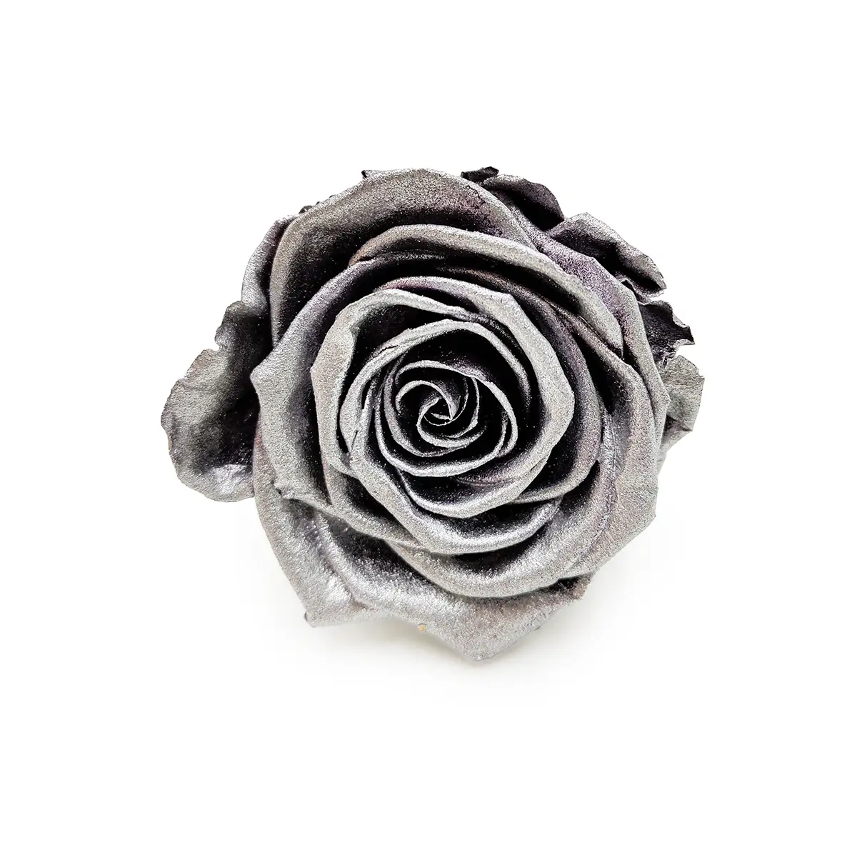 Róża stabilizowana w kolorze srebrnym (silver) to nowoczesna i stylowa dekoracja, która dodaje wnętrzom luksusowego charakteru. Srebrny odcień symbolizuje elegancję, prestiż i nowoczesność, dzięki czemu róża idealnie pasuje do aranżacji glamour, industrialnych oraz świątecznych.
