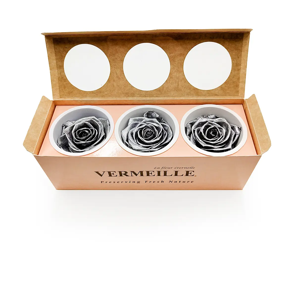 Róża Stabilizowana – Srebrna – XL – 3szt