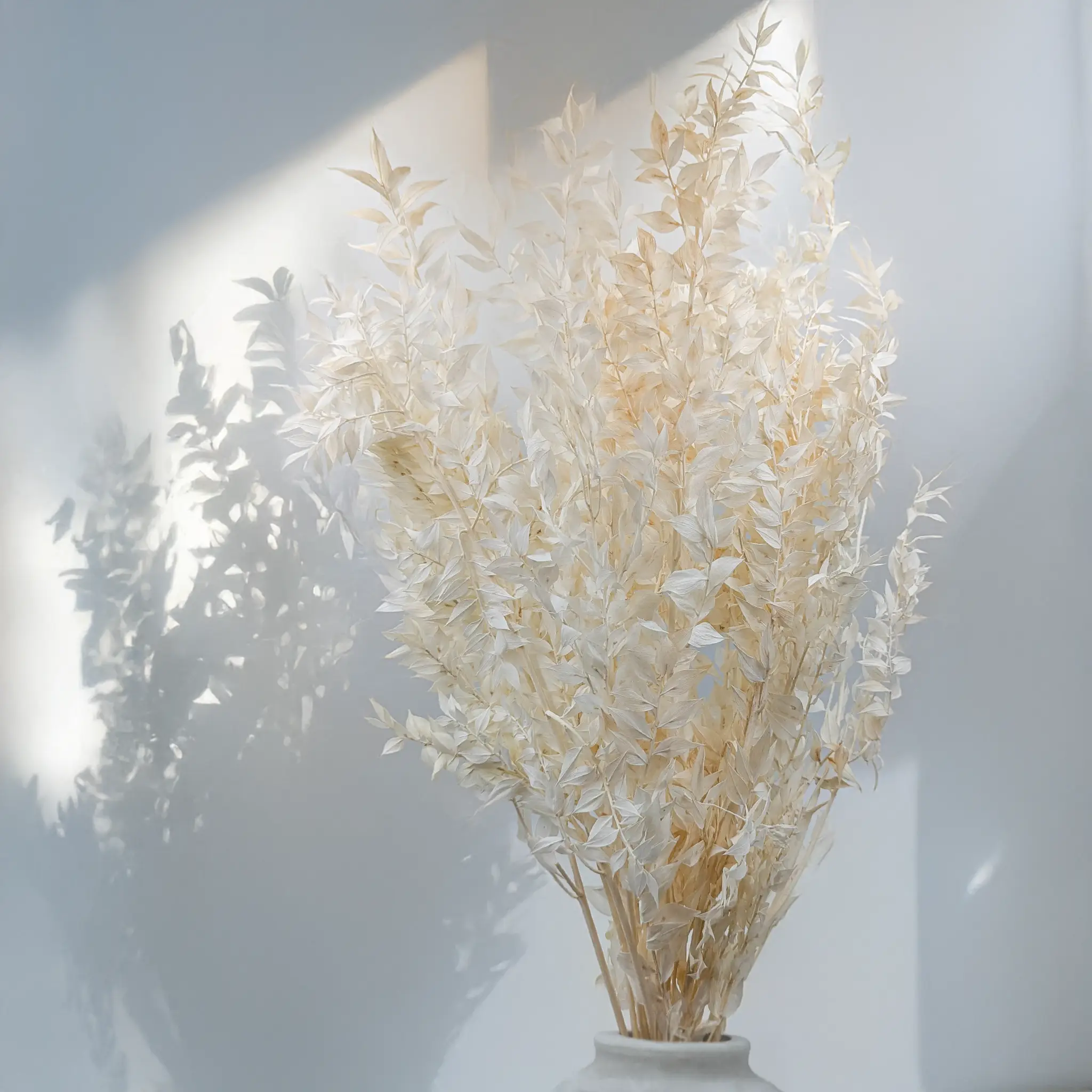 Bielony suszony ruskus to niezwykle stylowa i trwała dekoracja roślinna, idealna do nowoczesnych i klasycznych kompozycji florystycznych. Jego delikatne, ale wyraziste liście zachowują swoją strukturę na długo dzięki procesowi suszenia i wybielania. Kremowo-biały odcień nadaje subtelnej elegancji każdej aranżacji – od ślubnych bukietów po minimalistyczne dekoracje wnętrz.