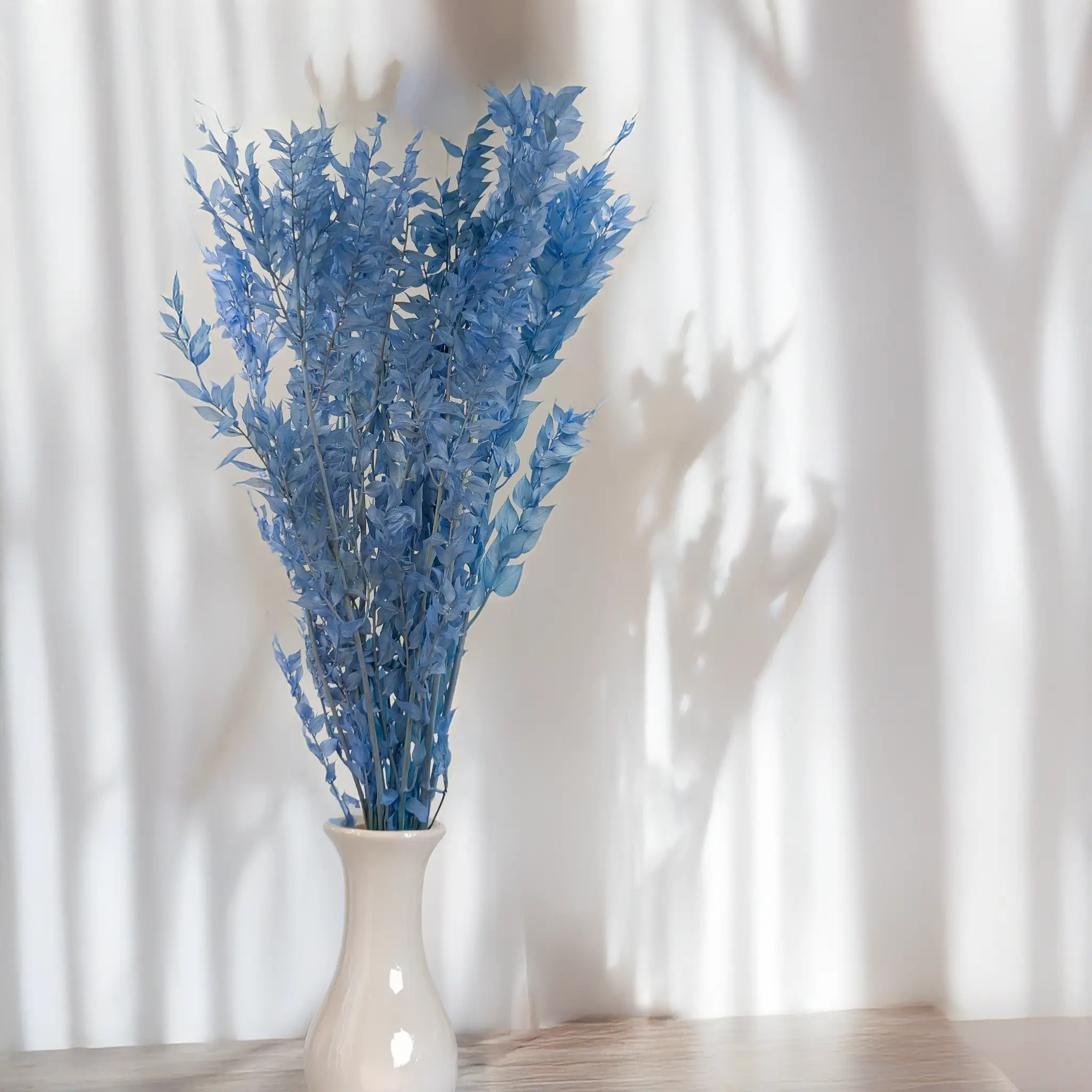 Ruskus Stabilizowany – Stalowy Błękit – Gałązki Dekoracyjne 60 cm