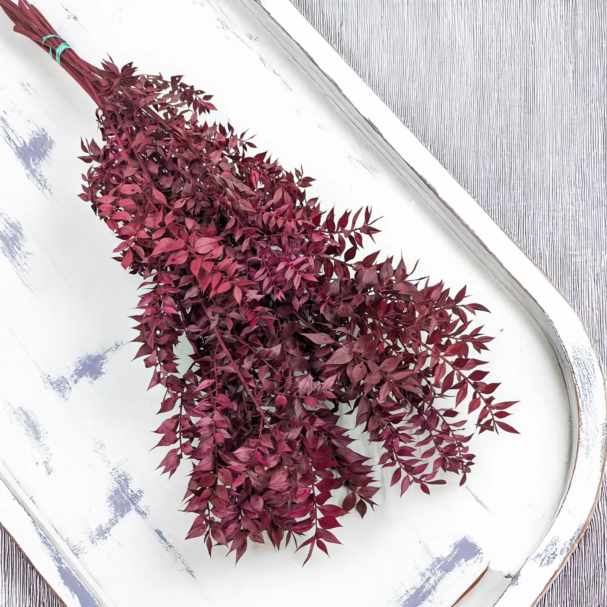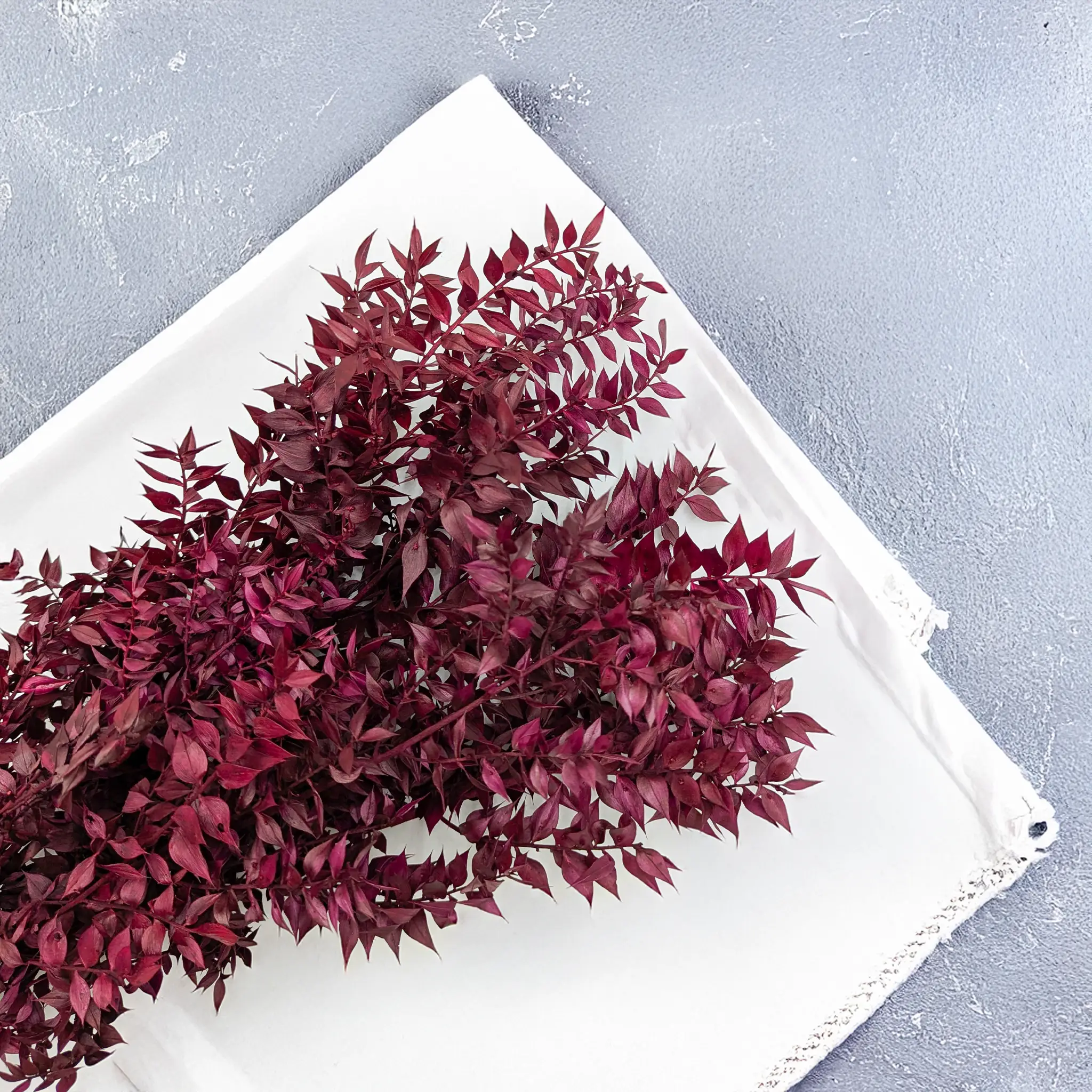 Ruskus stabilizowany (ruscus) w kolorze Wiśniowym