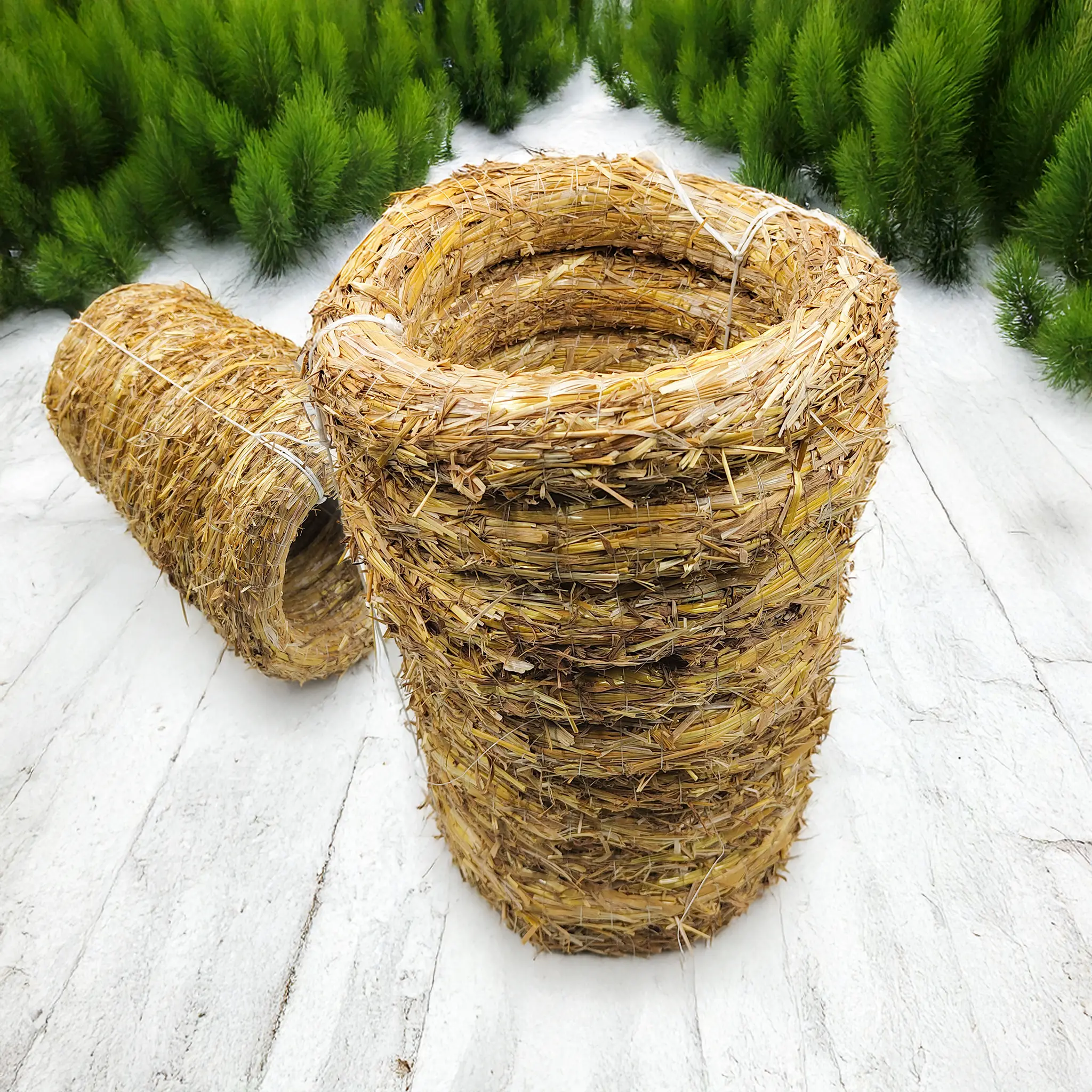 Wytrzymałe słomiane podkłady o średnicy 30 cm to niezastąpiona baza do tworzenia unikalnych kompozycji florystycznych. Każdy podkład jest ciasno owinięty mocną żyłką, co zapewnia trwałość, stabilność formy i wygodę użytkowania.