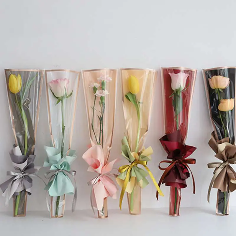Wykonany z przezroczystej, usztywnionej folii z dekoracyjną ramką, opakowanie na jeden kwiat prezentuje się wyjątkowo estetycznie, jednocześnie zabezpieczając zawartość.