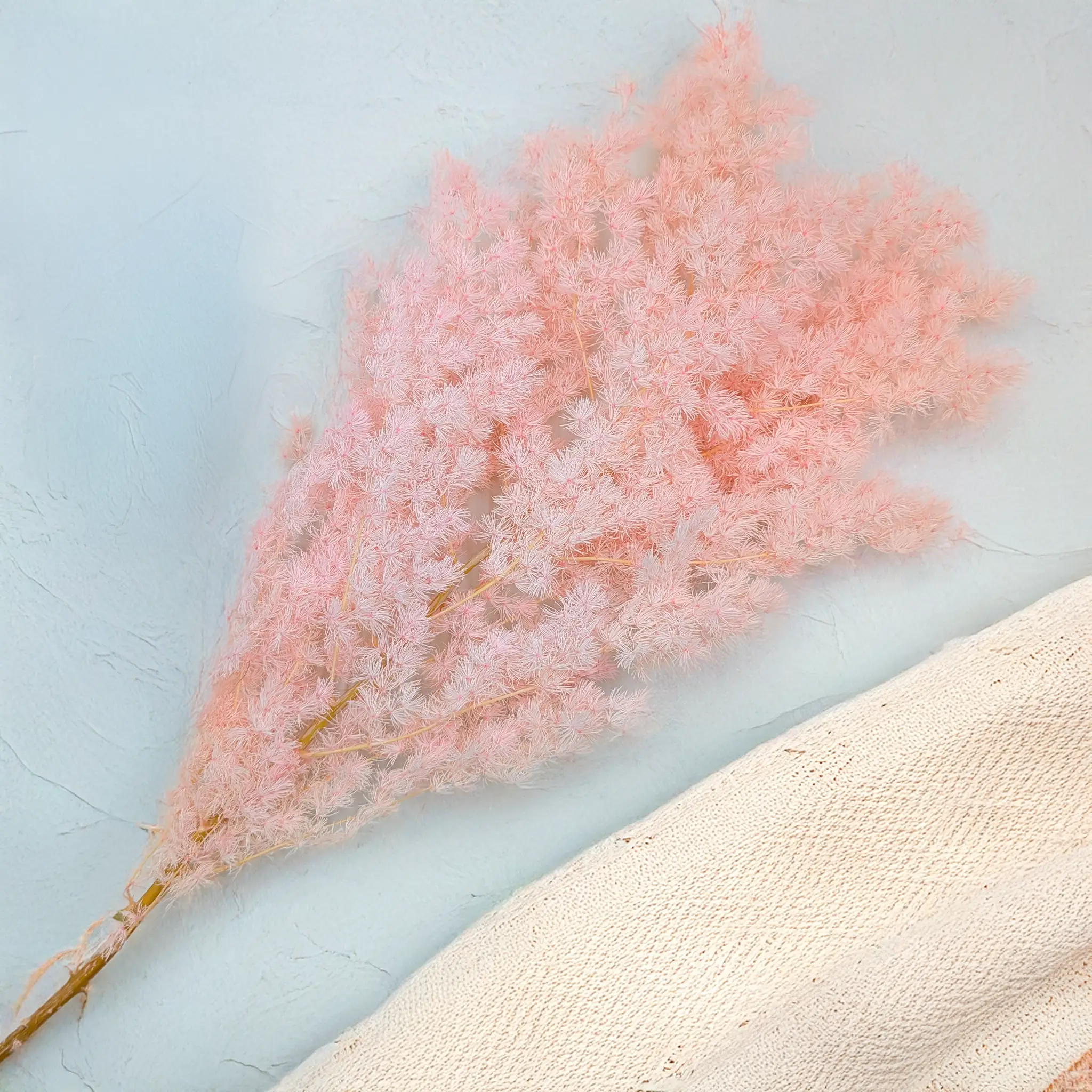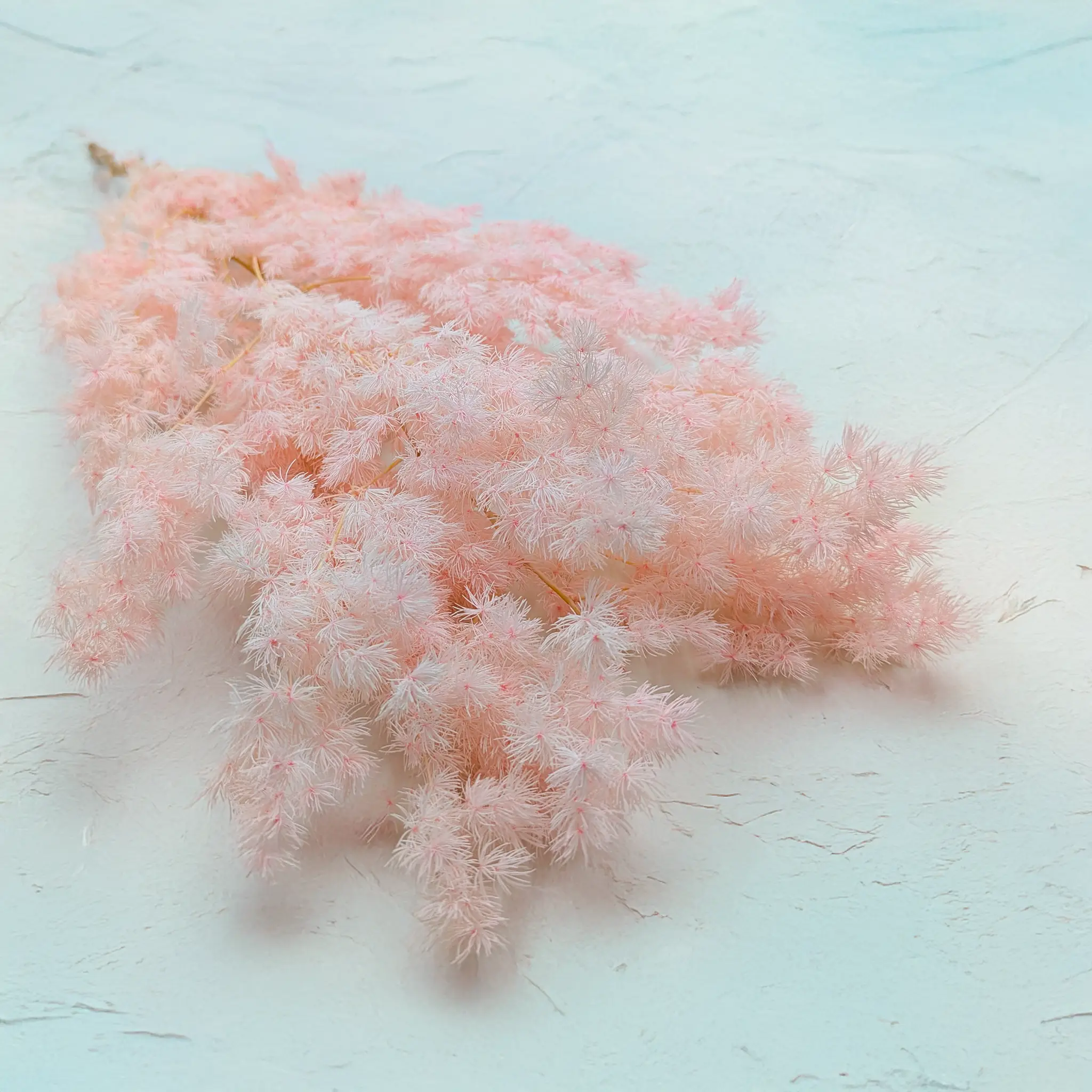 Asparagus Ming Fern w pastelowym różu to kwintesencja romantycznej subtelności zamknięta w delikatnych, pierzastych gałązkach. Dzięki procesowi stabilizacji roślina zachowuje swoją miękką strukturę i naturalny wygląd na długi czas, stając się trwałą ozdobą we florystyce i dekoracjach wnętrz.