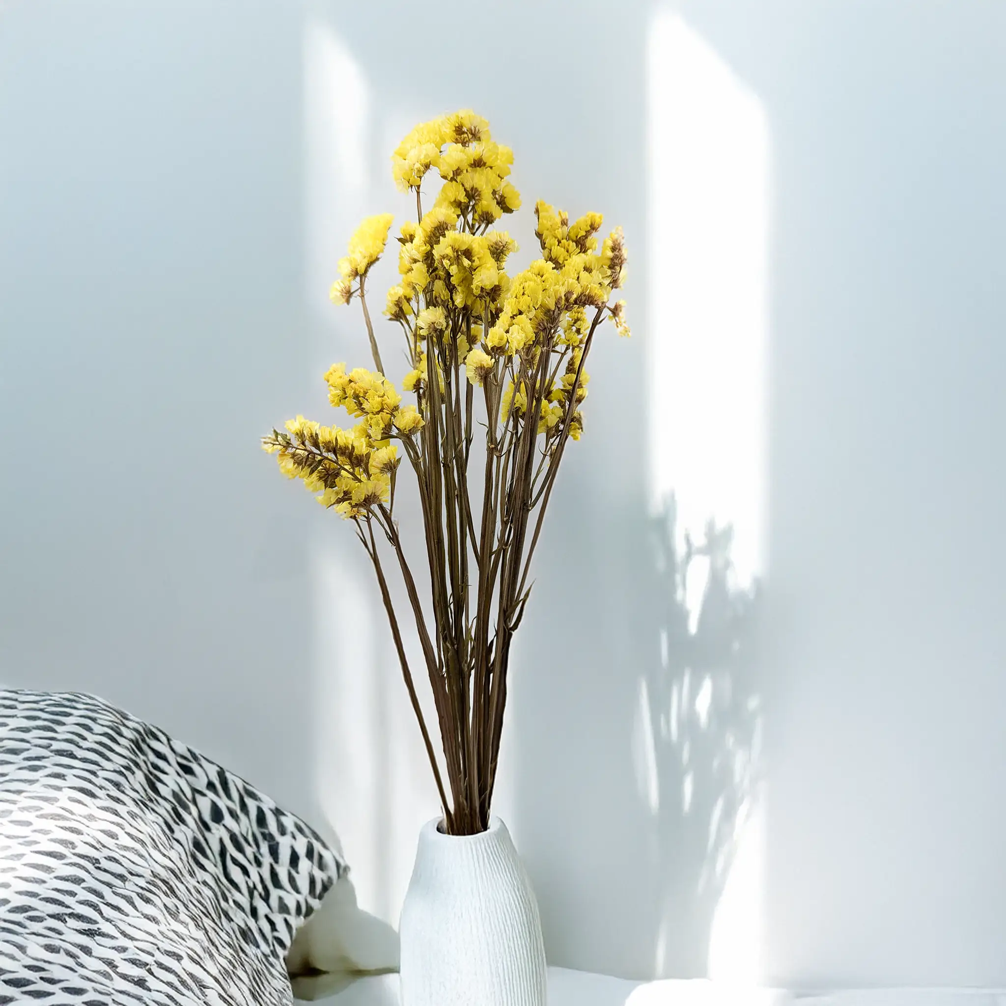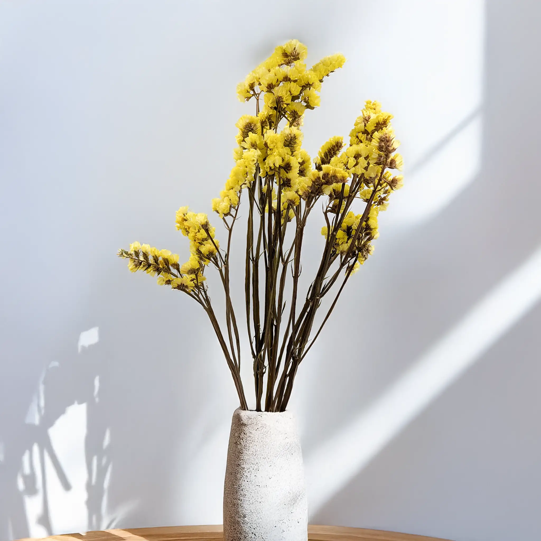 Stabilizowany zatrwian wrębny w radosnym, żółtym kolorze to wyjątkowy dodatek do naturalnych aranżacji. Dzięki specjalistycznemu procesowi stabilizacji, roślina zachowuje miękkość i elastyczność, przypominając świeżo zerwany kwiat – bez potrzeby podlewania i pielęgnacji.