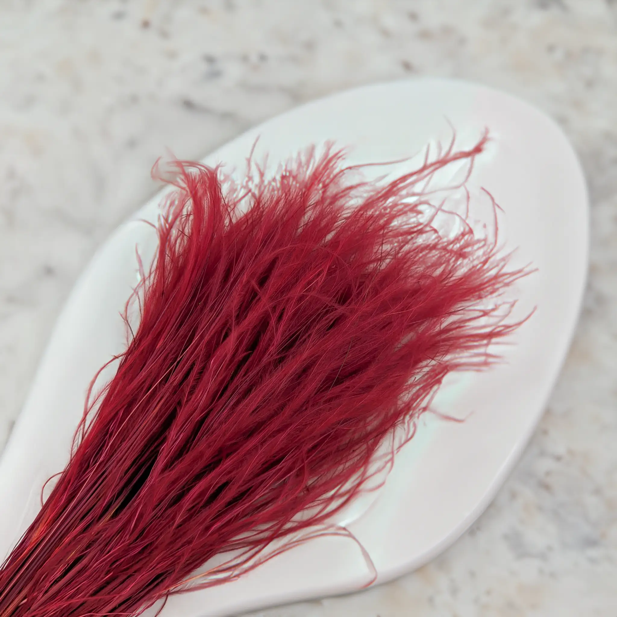 Bordowy odcień symbolizuje elegancję, głębię emocji i kreatywność. W dekoracjach łączy się doskonale z różem, złotem, beżami, kremem i neutralnymi odcieniami suszonych roślin. Ostnica piórkowata to idealny wybór, gdy zależy Ci na stworzeniu aranżacji, która przyciąga wzrok i zachwyca subtelną dynamiką kłosów.