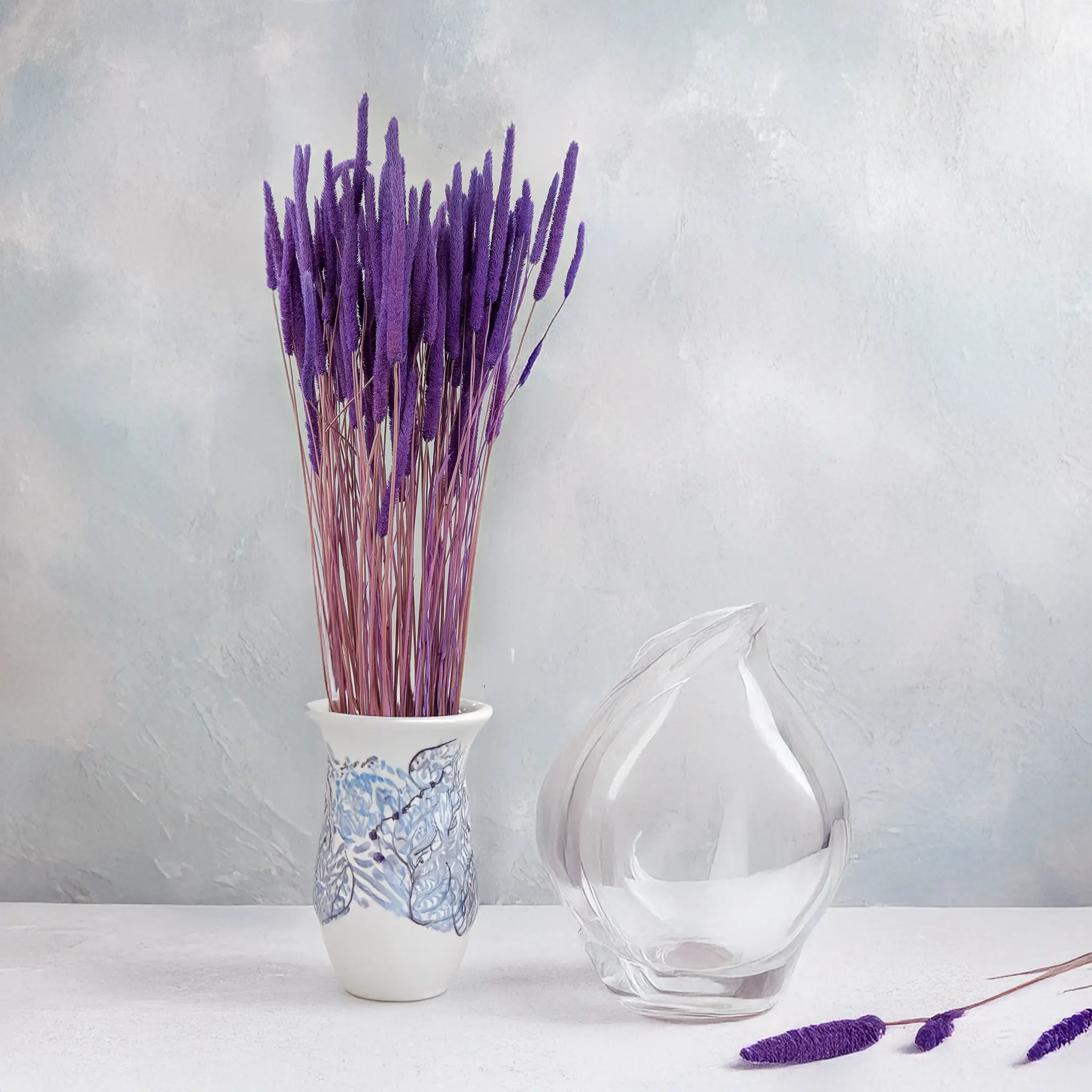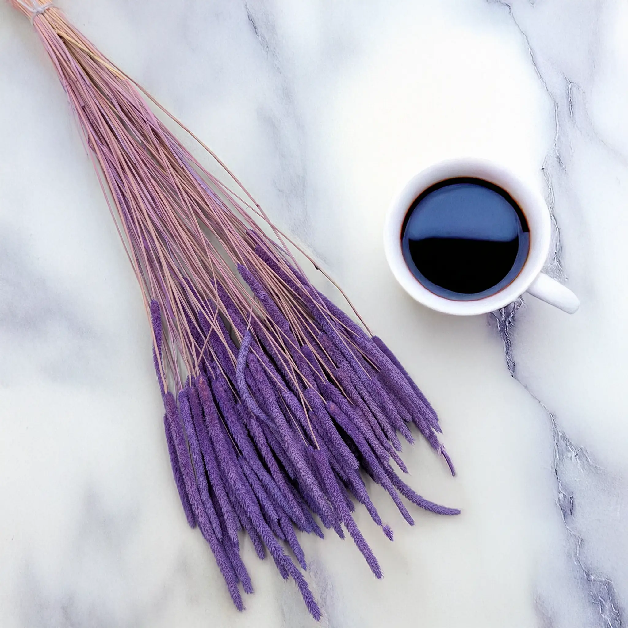Suszona tymotka w odcieniu lila to niezwykle efektowny element dekoracyjny, łączący romantyzm z elegancją. Jej intensywny, chłodny fiolet przyciąga wzrok i doskonale nadaje się do odważnych, ale estetycznie zbalansowanych aranżacji florystycznych.
