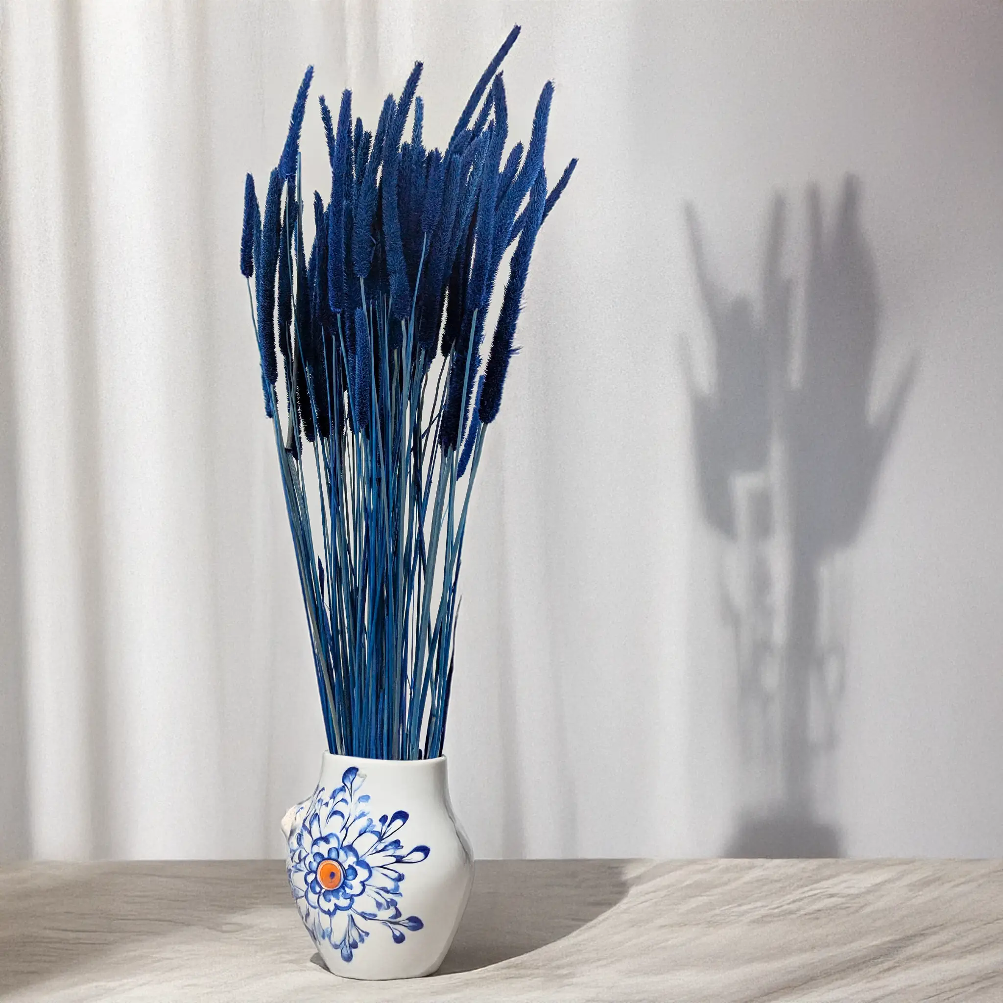 Suszona tymotka w intensywnie niebieskim odcieniu to nowoczesna i wyrazista dekoracja florystyczna. Głęboki, chłodny kolor przyciąga wzrok i nadaje aranżacjom świeżości, harmonii i artystycznej energii.