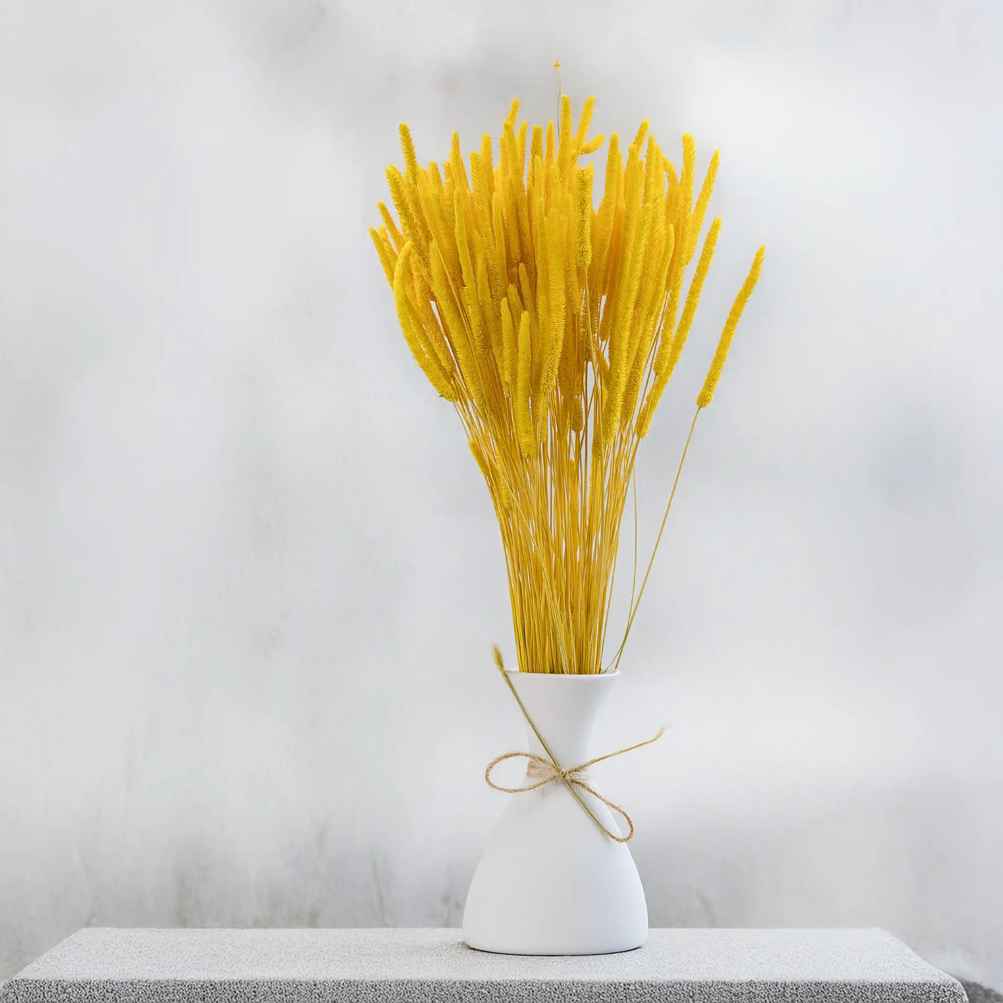Suszona tymotka w słonecznym, żółtym odcieniu to energetyczny i ciepły akcent florystyczny, który natychmiast rozświetla kompozycje i nadaje im optymistycznego charakteru. Smukłe kłosy o delikatnej strukturze wprowadzają do aranżacji lekkość i naturalną dynamikę, idealnie balansując intensywność koloru.