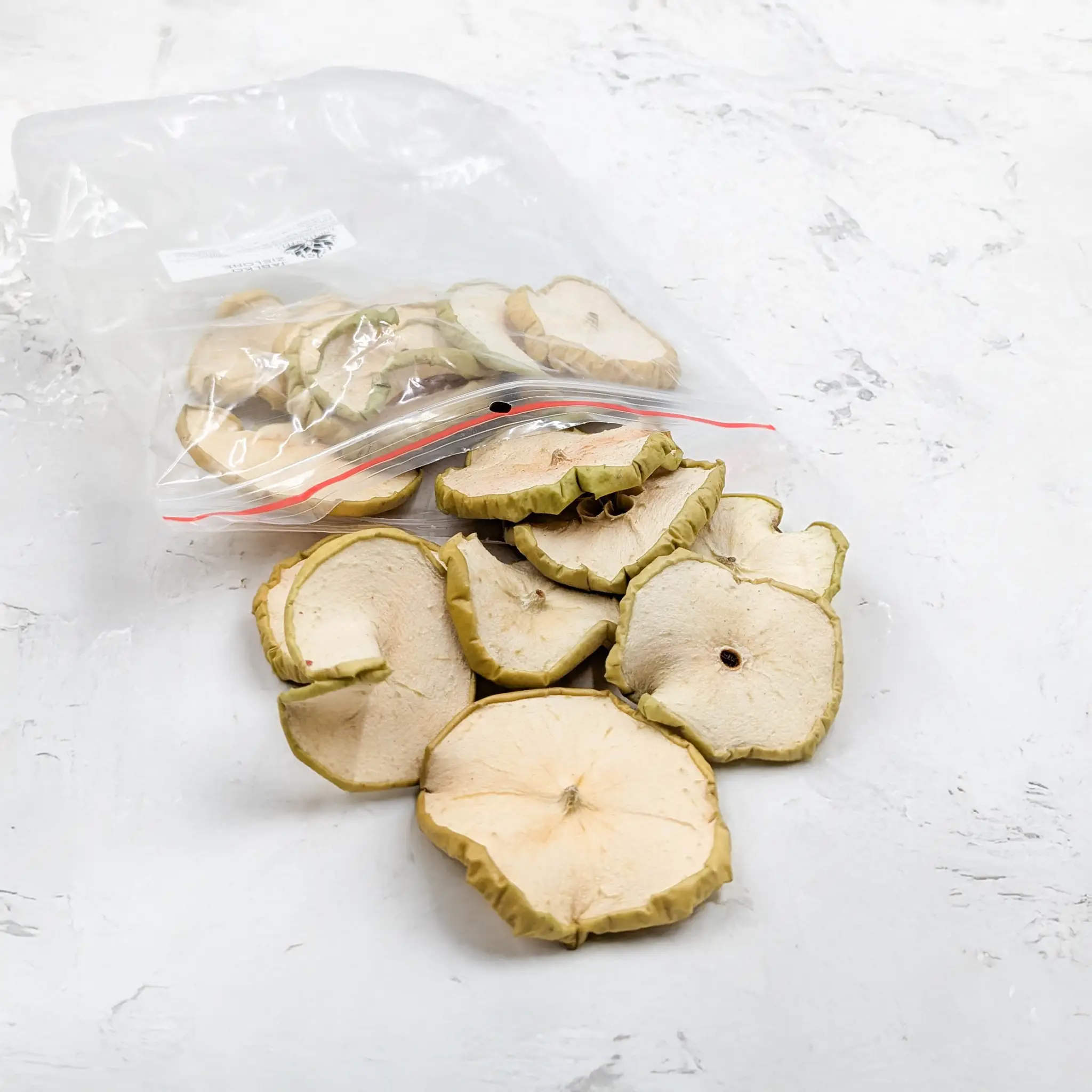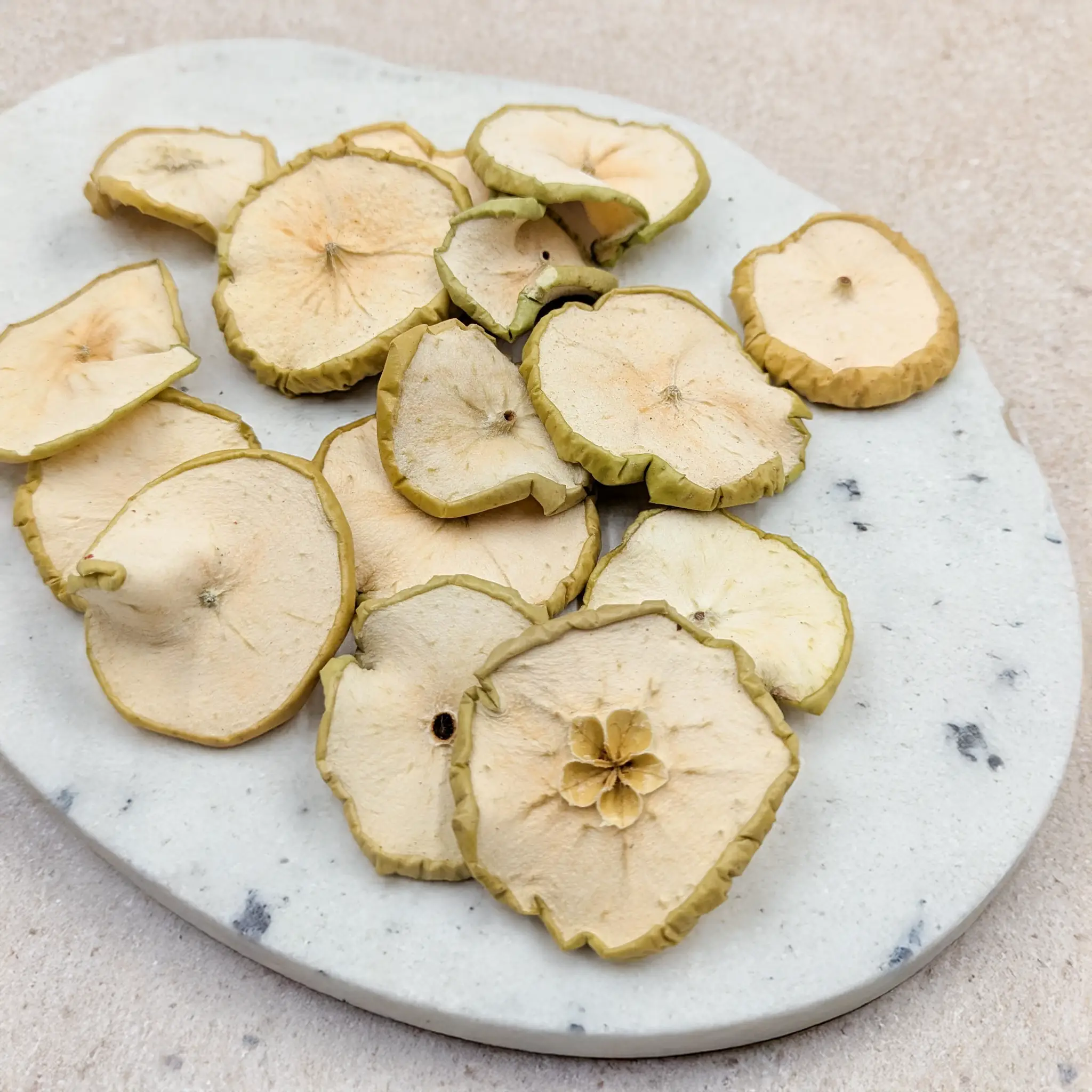 Kształt: nieregularny, plastry, naturalne jabłko suszone.