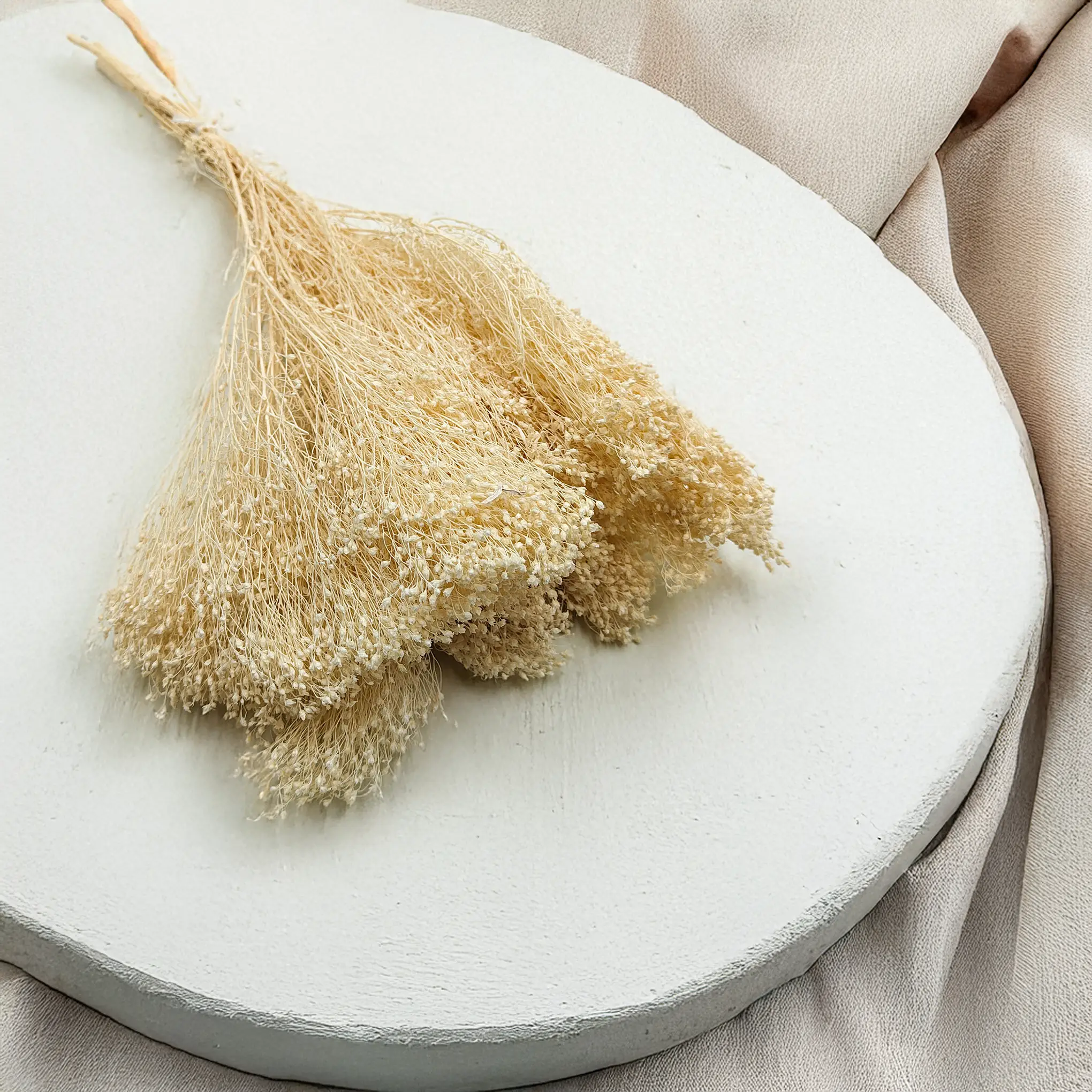 Broom Bloom, znany również jako żarnowiec miotlasty lub szczodrzeniec (Cytisus scoparius), to lekka, suszona trawa dekoracyjna o naturalnym, miotlastej strukturze i wytłumionym odcieniu. Jego delikatne kwiatostany idealnie uzupełniają bukiety, wieńce i kompozycje boho oraz rustykalne.