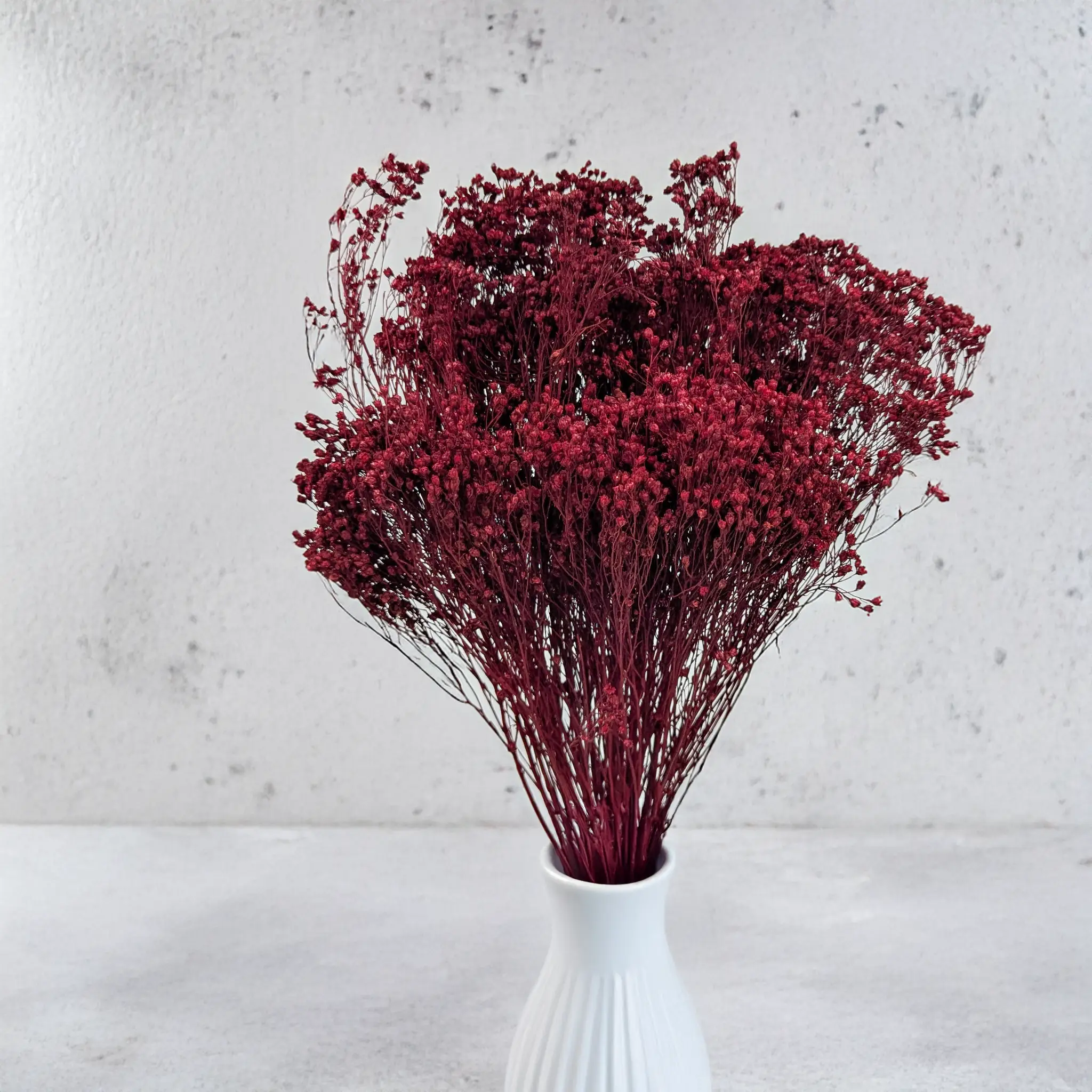 Broom Bloom w kolorze bordowym to wyjątkowy susz florystyczny o głębokim, szlachetnym odcieniu czerwieni z nutą wina. Jego elegancka barwa wprowadza do wnętrz luksus, romantyzm i wyrazistość. Puszyste kwiatostany żarnowca zachowują swoją objętość i formę, dzięki czemu stanowią trwały i efektowny element dekoracyjny.