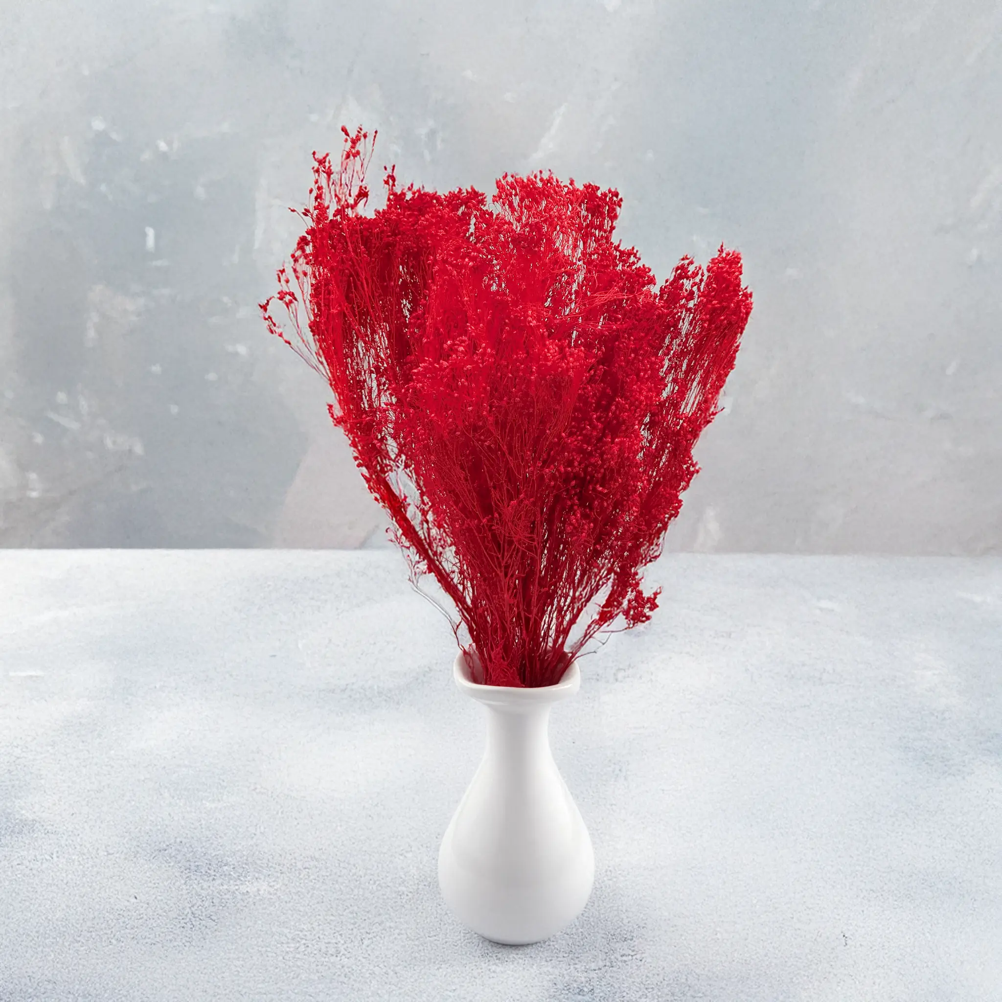 Broom Bloom w kolorze czerwonym to suszona roślina dekoracyjna o wyjątkowo głębokiej barwie. Jego drobne, kuliste kwiatostany osadzone na elastycznych łodygach idealnie podkreślają charakter kompozycji florystycznych, dodając im wyrazistości i szlachetnego wykończenia.