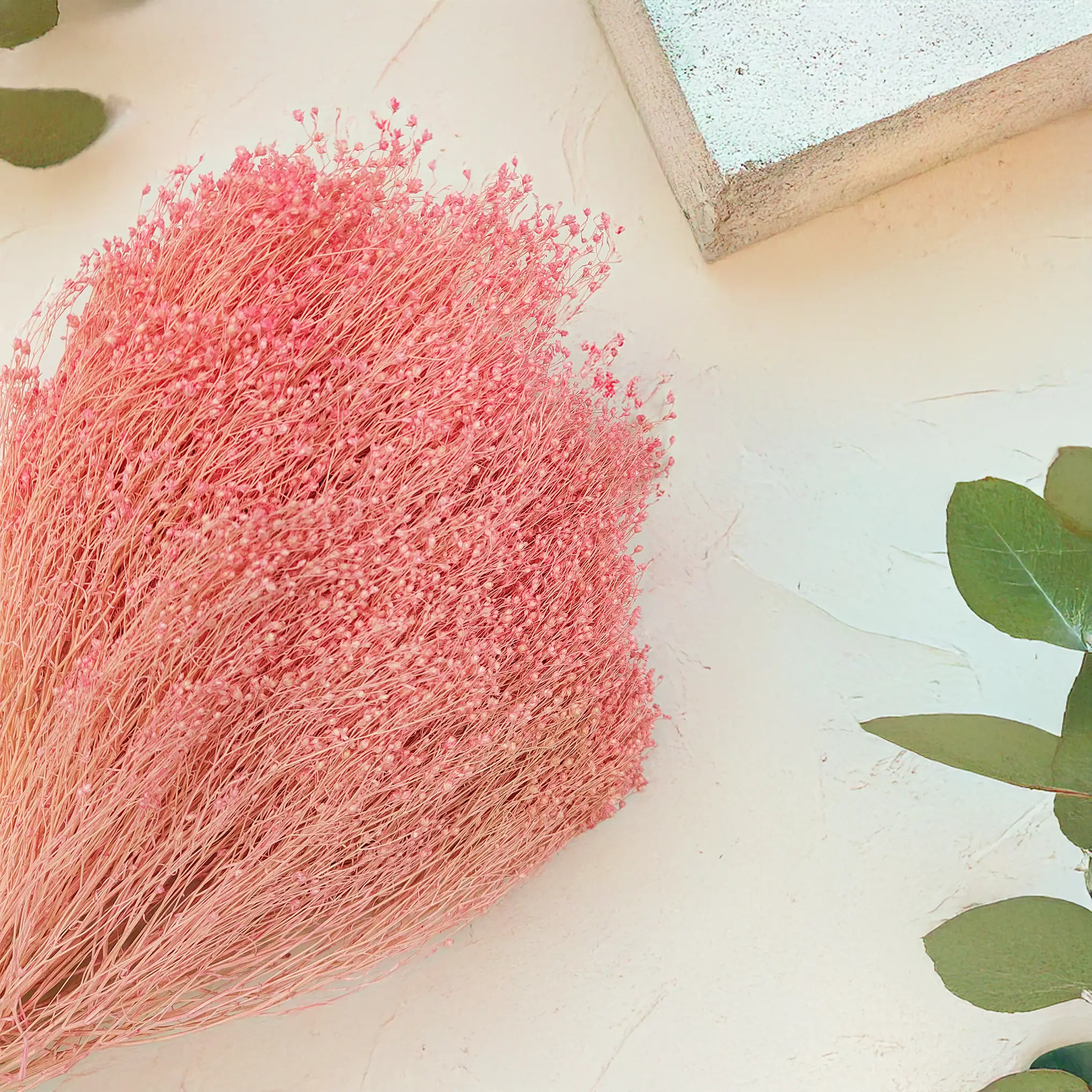 Suszony Broom Bloom, znany jako żarnowiec różowy, to dekoracyjna roślina o puszystych, pastelowych kwiatach, które doskonale sprawdzają się w kompozycjach boho, rustykalnych i ślubnych. Jego delikatny różowy kolor wprowadza romantyczną lekkość i subtelność do każdego bukietu lub dekoracji wnętrza.