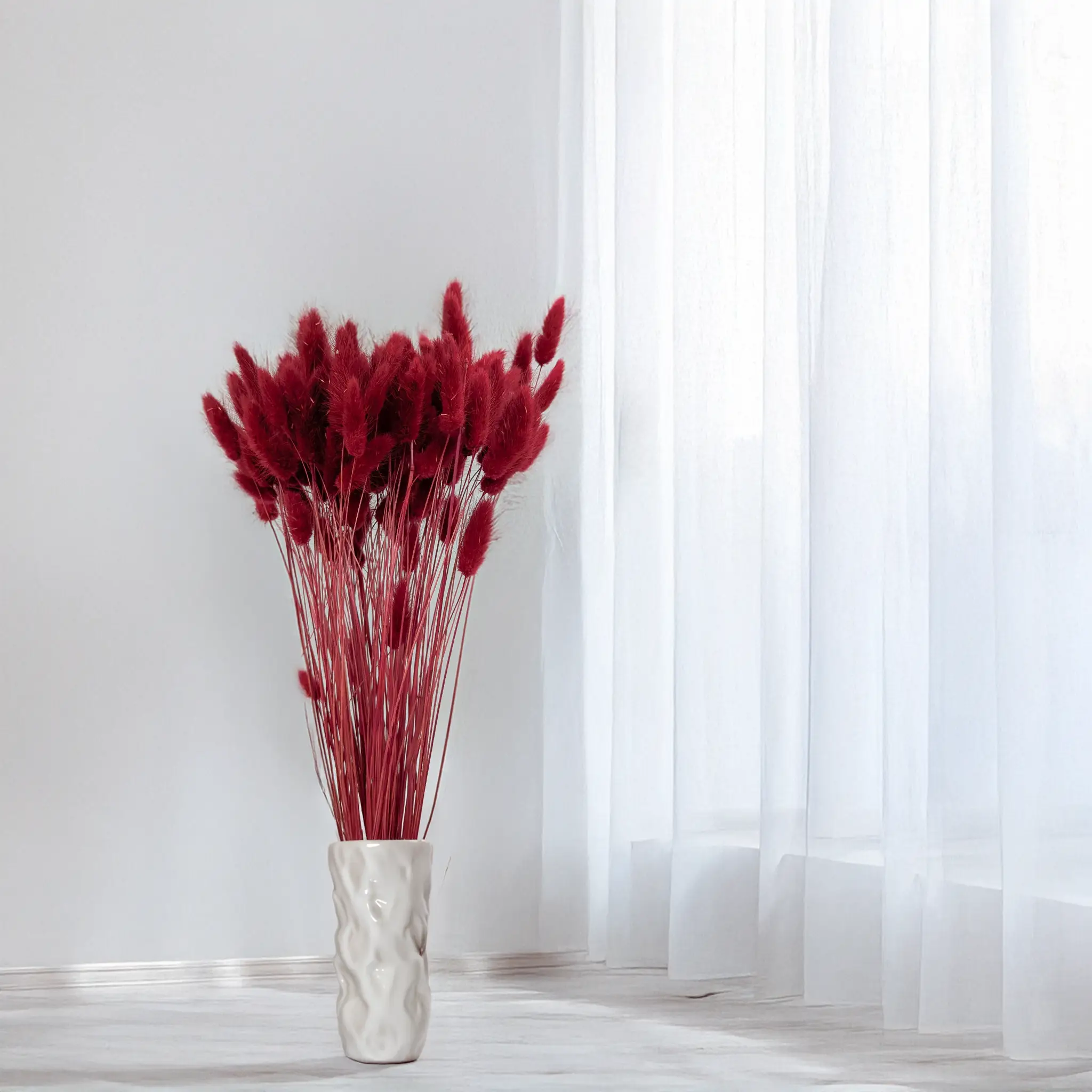 Bordowy suszony Lagurus (Dmuszek jajowaty) to niezwykle elegancka i głęboka dekoracja, która wnosi do kompozycji nutę luksusu i wyrafinowania. Głęboka, winna barwa symbolizuje siłę, dojrzałość i pasję, przez co jest idealna do aranżacji w stylu glamour, jesiennym oraz klasycznym. Dzięki swojej nasyconej kolorystyce stanowi mocny akcent w każdej kompozycji, a jednocześnie harmonijnie łączy się z innymi naturalnymi barwami.