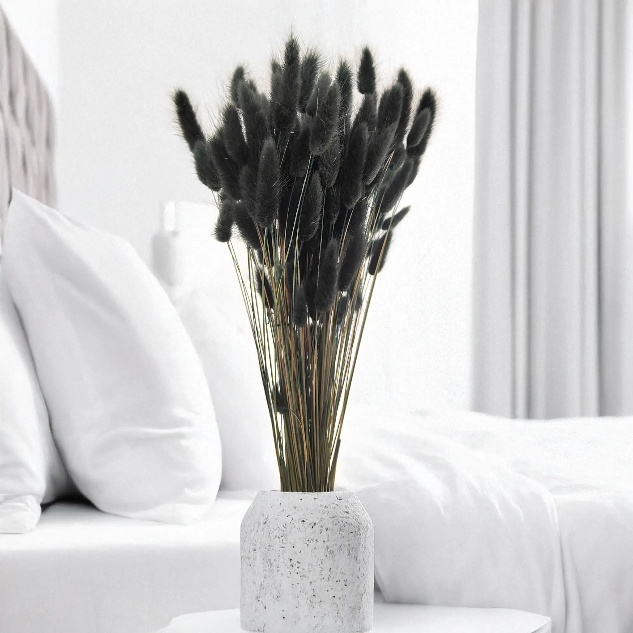 Czarny suszony Lagurus (Dmuszek jajowaty) to odważna, elegancka i niezwykle stylowa propozycja dla tych, którzy szukają nietuzinkowych dodatków florystycznych. Głęboka, matowa czerń symbolizuje tajemniczość, siłę i nowoczesność. To doskonały wybór do aranżacji w stylu industrialnym, glamour, a także do nowoczesnych, minimalistycznych przestrzeni. Czarny Lagurus nadaje kompozycjom dramatyzmu i kontrastu, szczególnie w zestawieniu z jasnymi lub metalicznymi elementami.