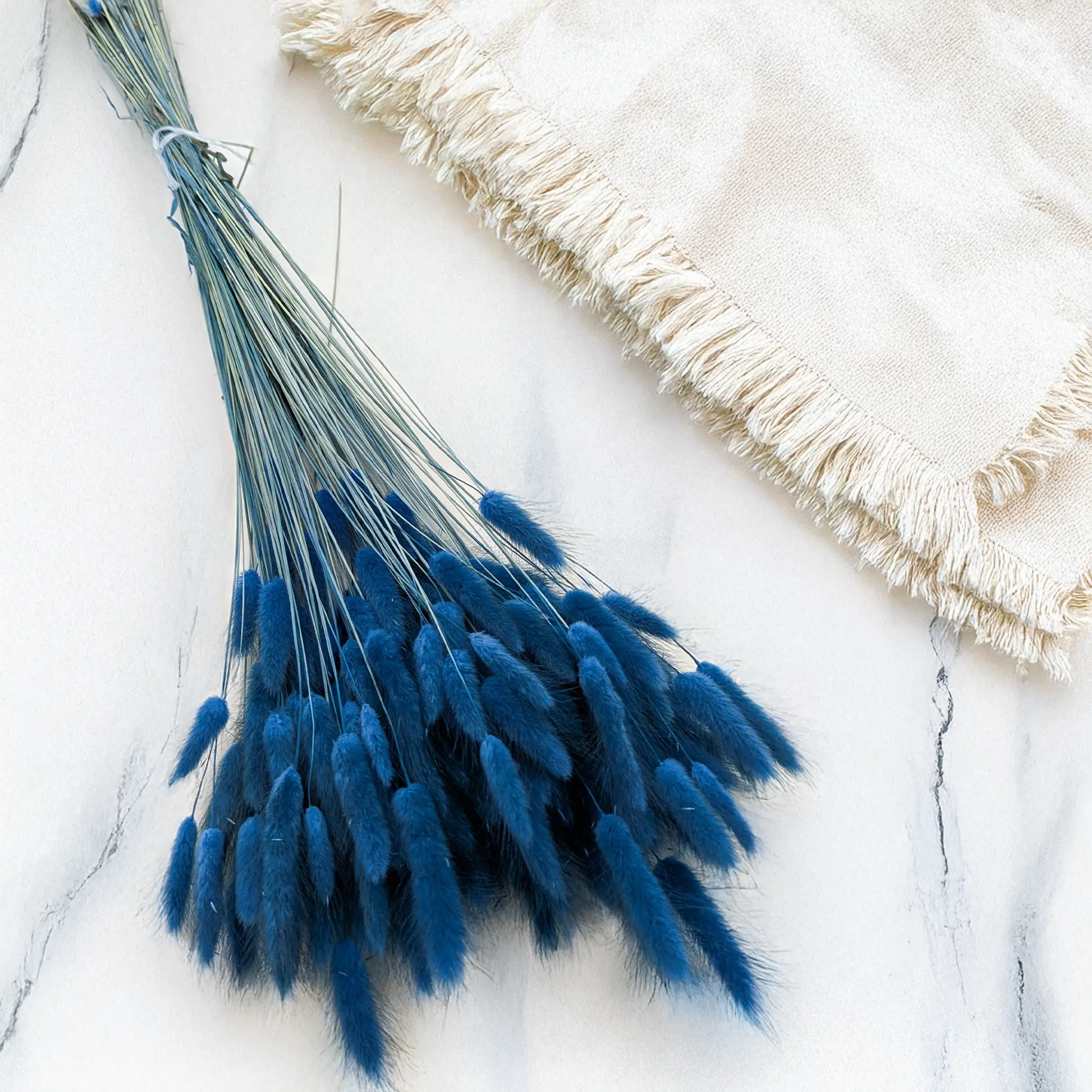 Lagurus w niebieskim kolorze świetnie sprawdza się w aranżacjach florystycznych, stylizacjach wnętrzarskich oraz projektach DIY. Doskonale komponuje się z:
