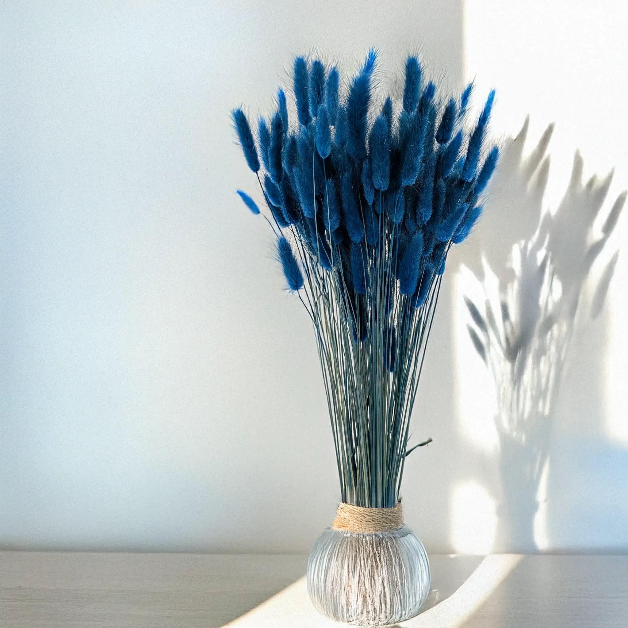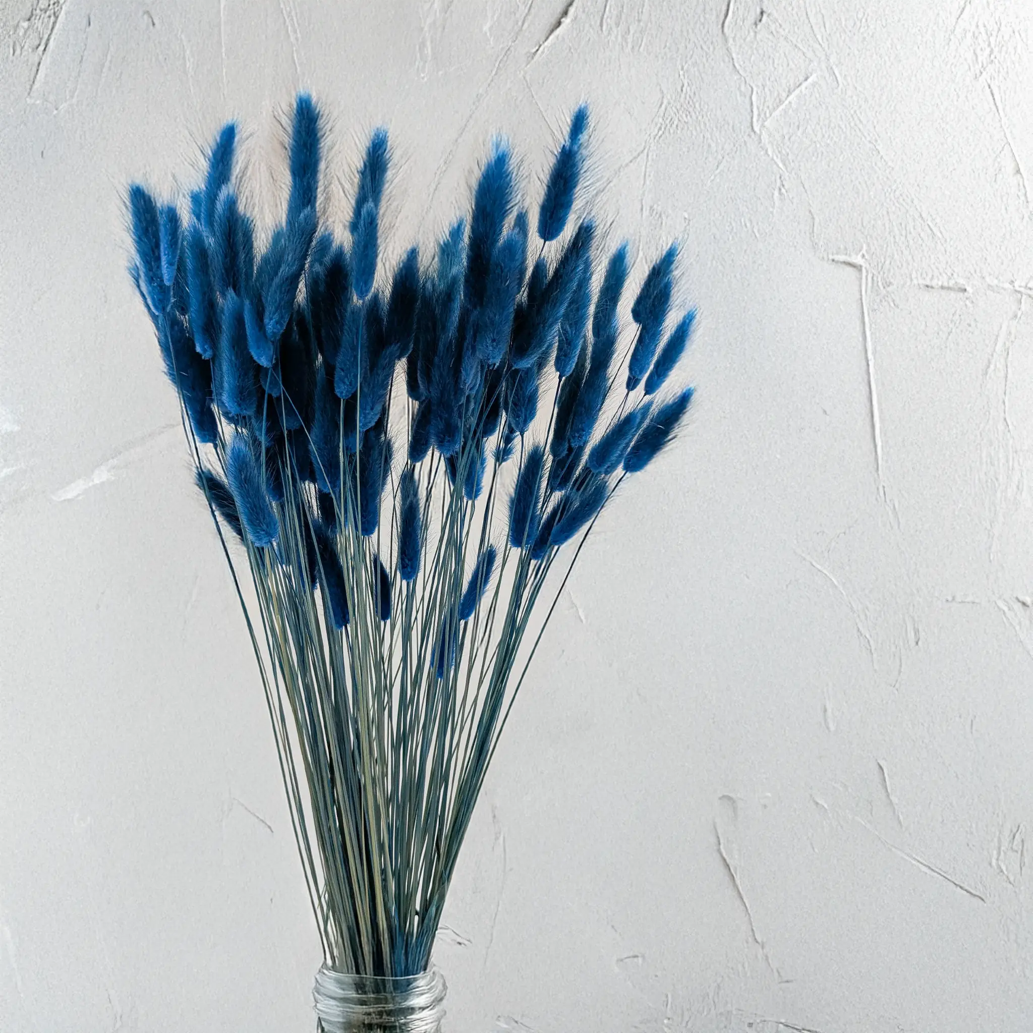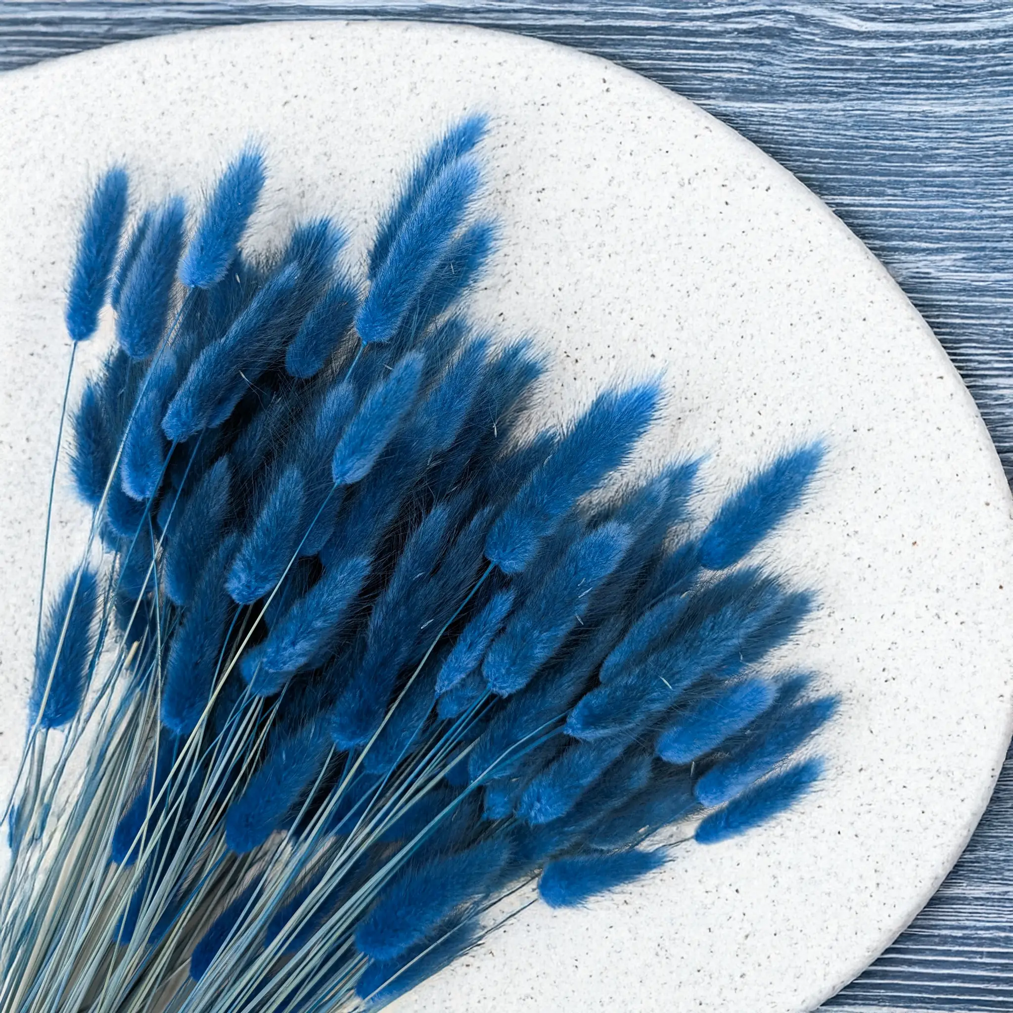Niebieski suszony Lagurus (Dmuszek jajowaty) to wyjątkowa propozycja dekoracyjna dla miłośników głębokich i chłodnych tonów. Niebieski kolor symbolizuje spokój, zaufanie i świeżość, wprowadzając do wnętrz uczucie harmonii i nowoczesnej elegancji. Jego intensywny odcień przyciąga wzrok i stanowi doskonałą bazę dla kontrastujących lub monochromatycznych kompozycji.