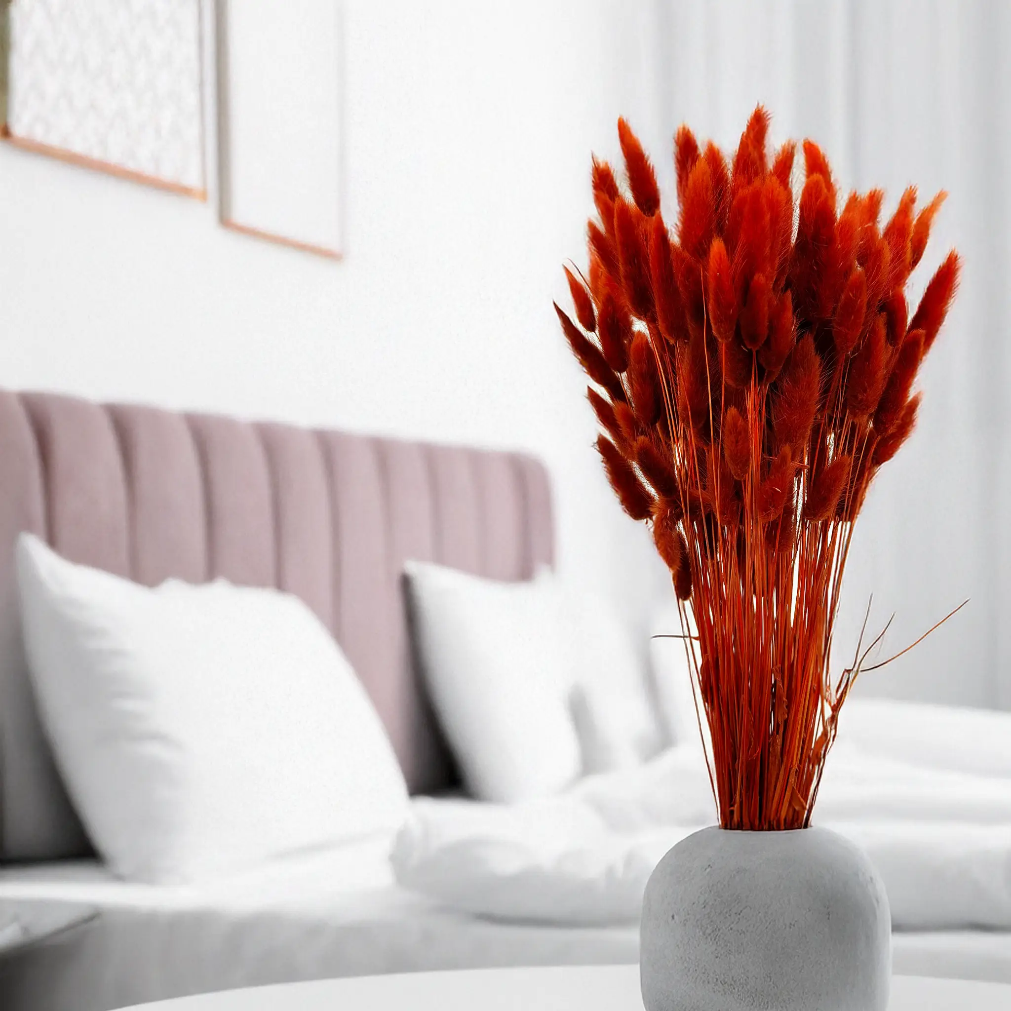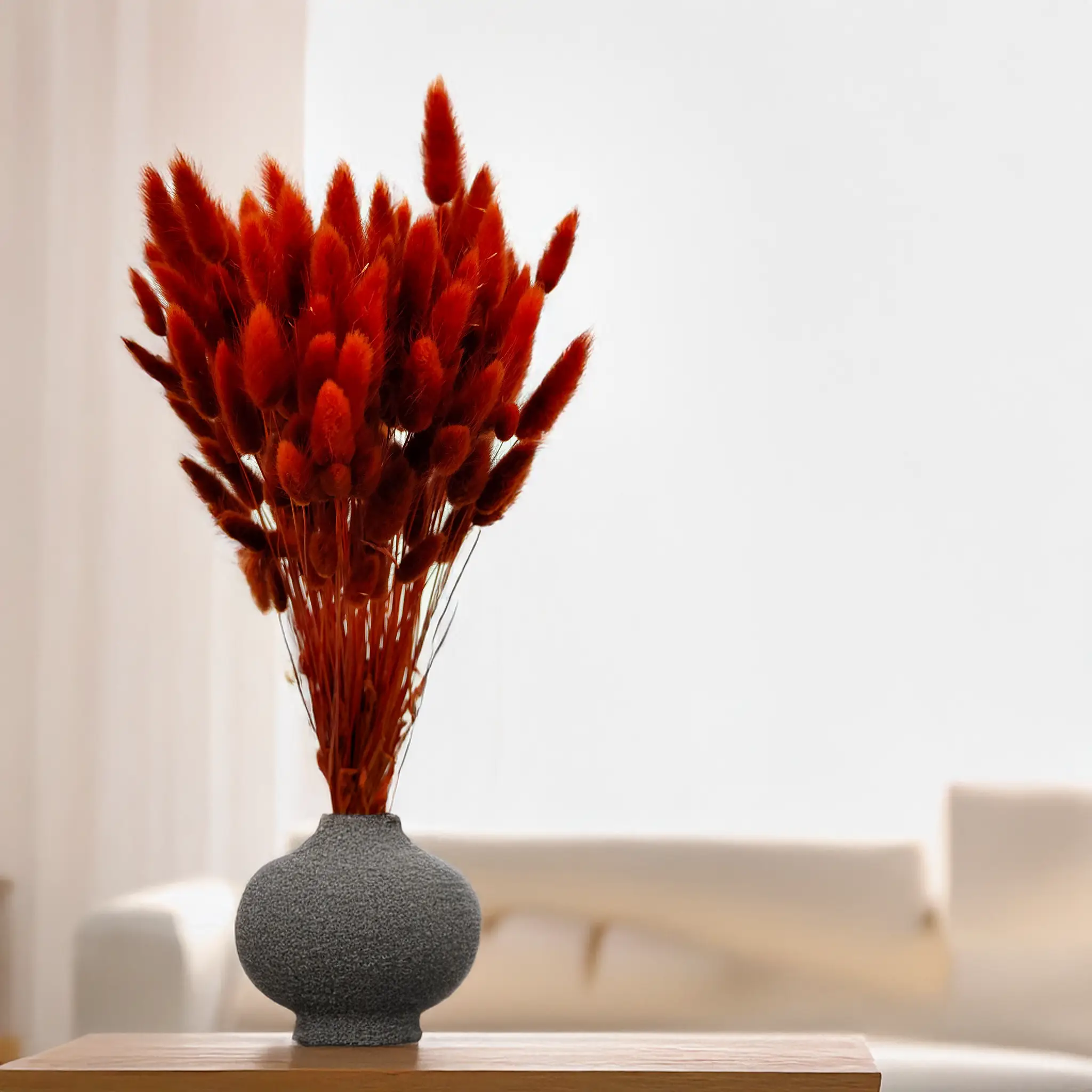 Brązowy suszony Lagurus (Dmuszek jajowaty) to ciepła i ziemista dekoracja, idealna do wnętrz w stylu rustykalnym, boho oraz skandynawskim. Kolor brązowy kojarzy się z naturą, stabilnością i bezpieczeństwem – doskonale współgra z drewnem, lnem i naturalnymi materiałami. To uniwersalny wybór do kompozycji stonowanych, eleganckich i minimalistycznych.