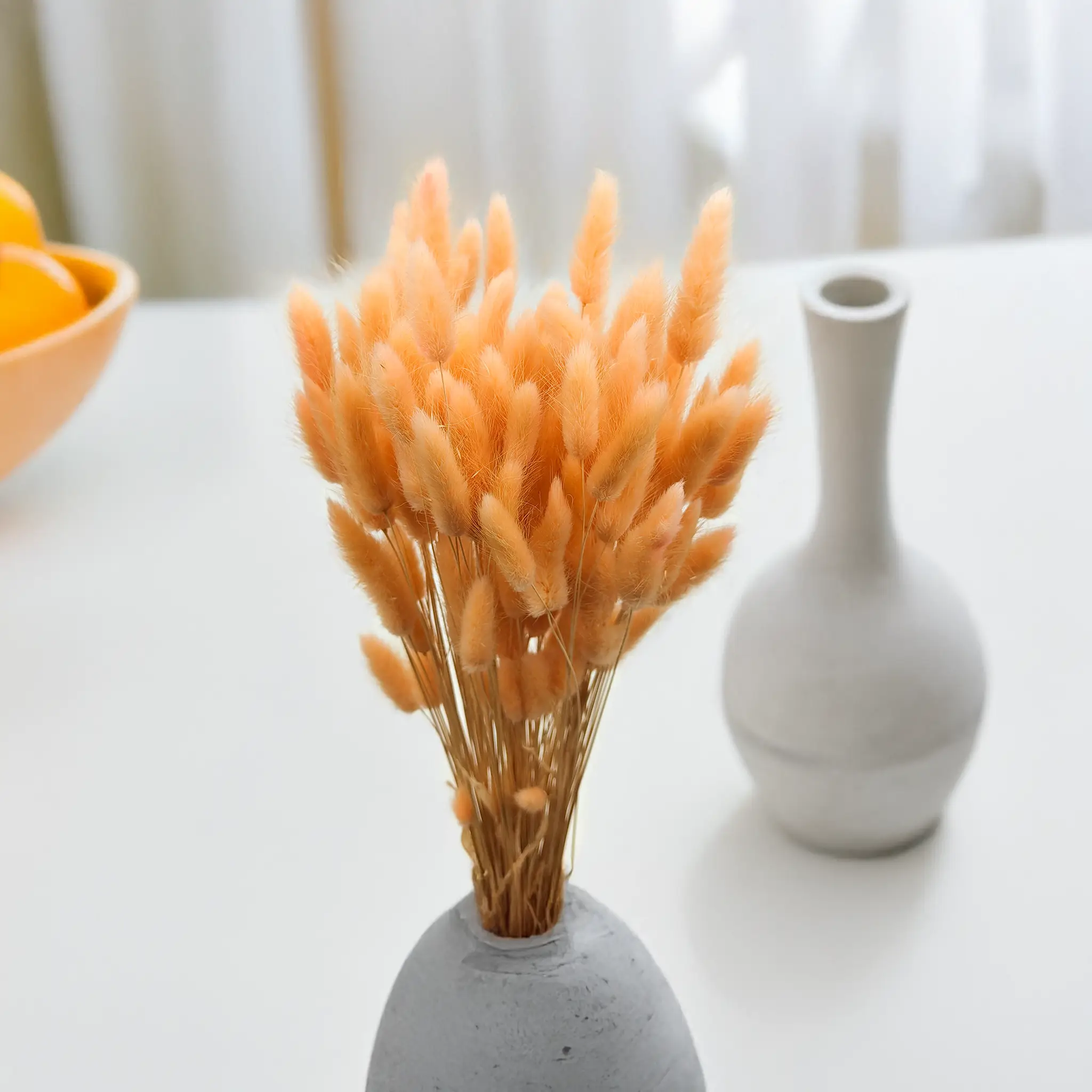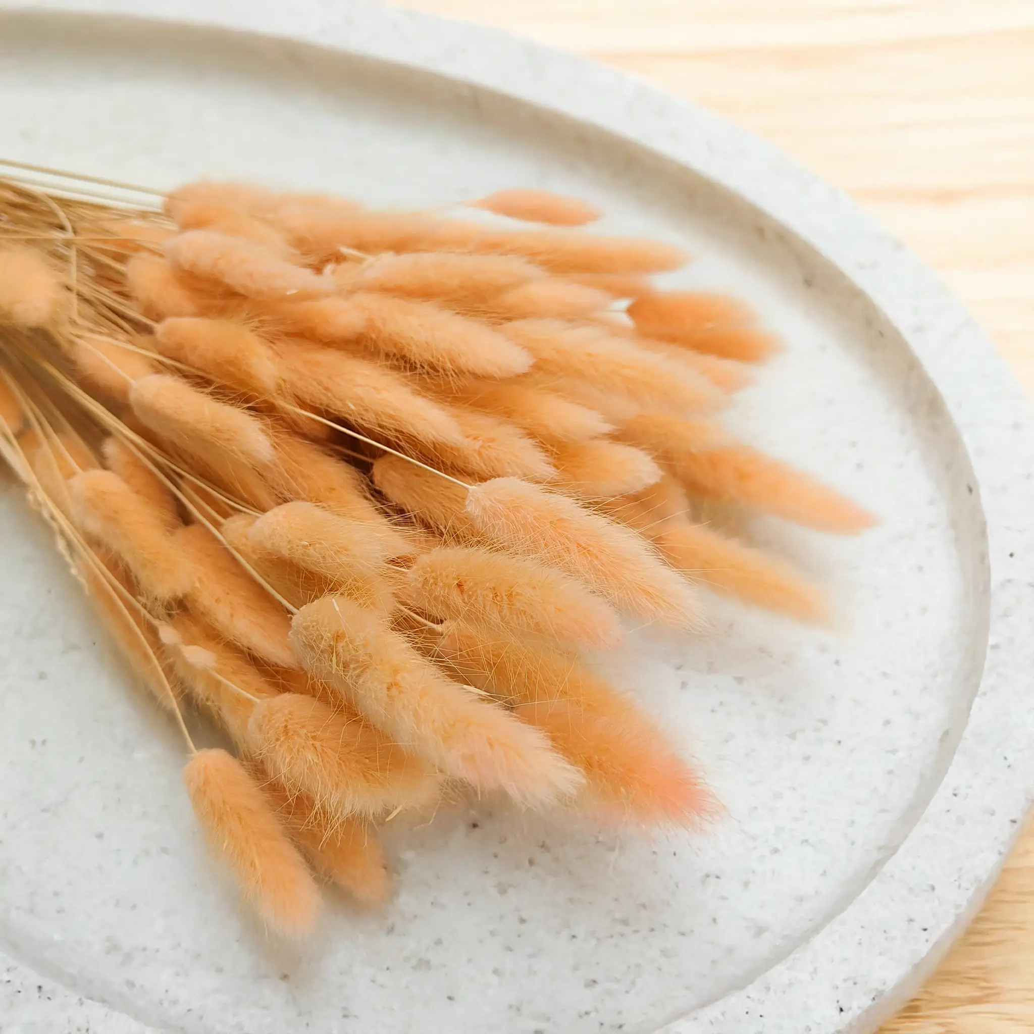 Brzoskwiniowy suszony Lagurus (Dmuszek jajowaty) to delikatna i romantyczna propozycja dla miłośników naturalnych, subtelnych barw. Kolor brzoskwiniowy symbolizuje czułość, harmonię i świeżość – doskonale wpisuje się w aranżacje w stylu boho, rustykalnym oraz ślubnym. Puszyste, miękkie kłosy w ciepłym pastelowym odcieniu dodają lekkości każdej kompozycji florystycznej.