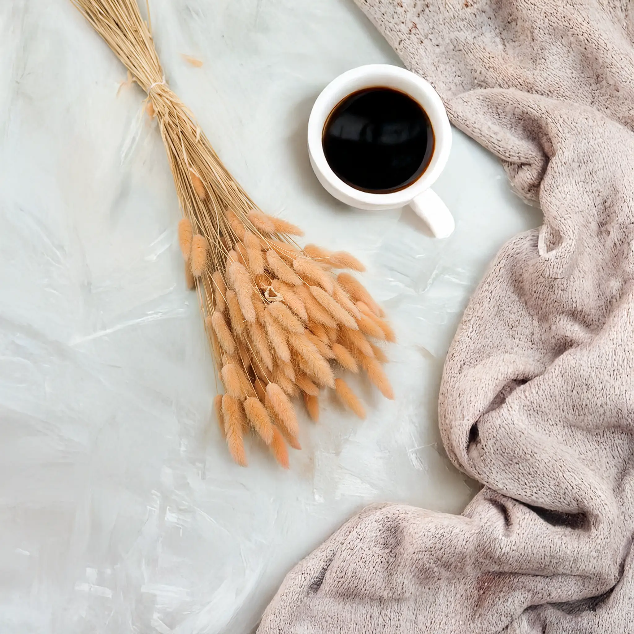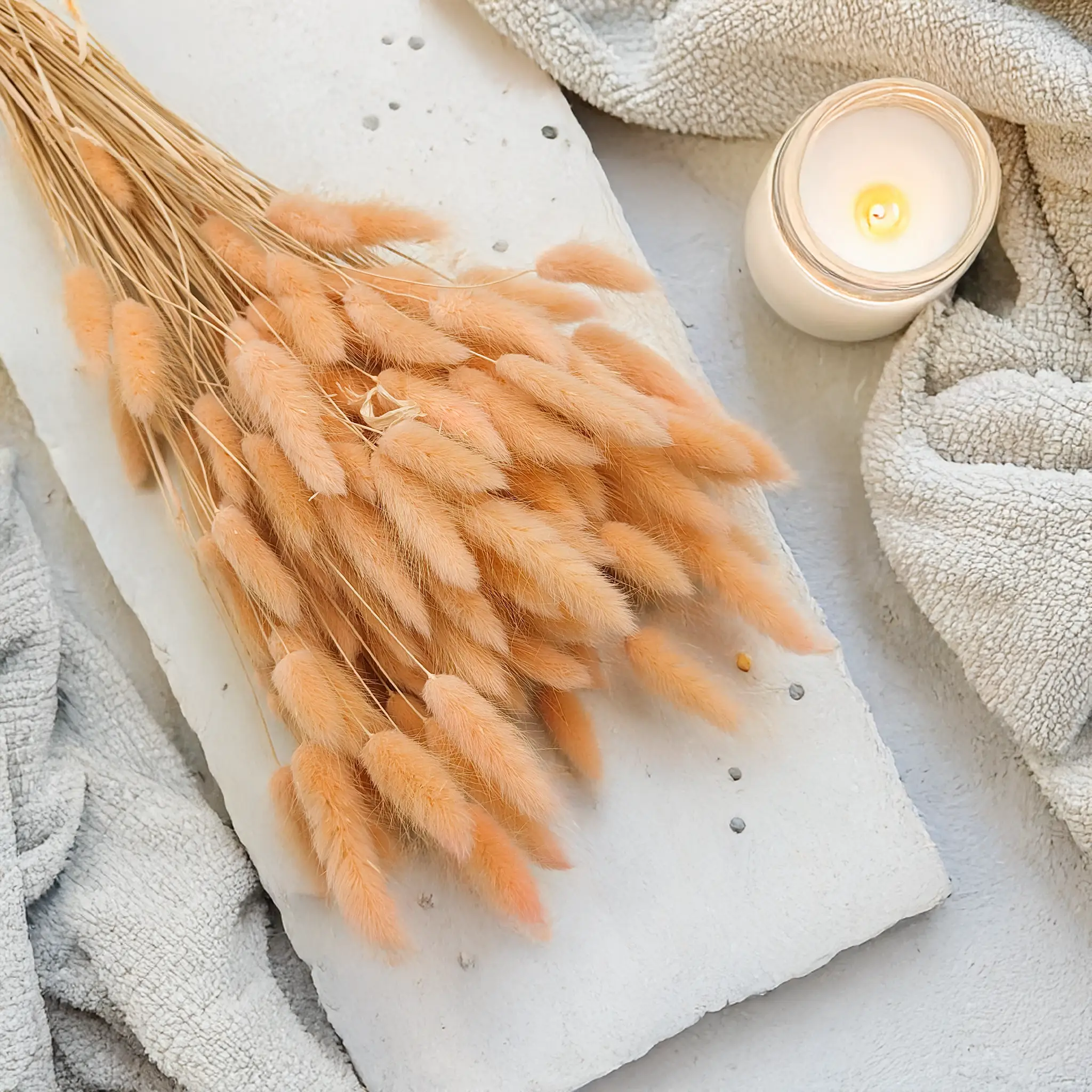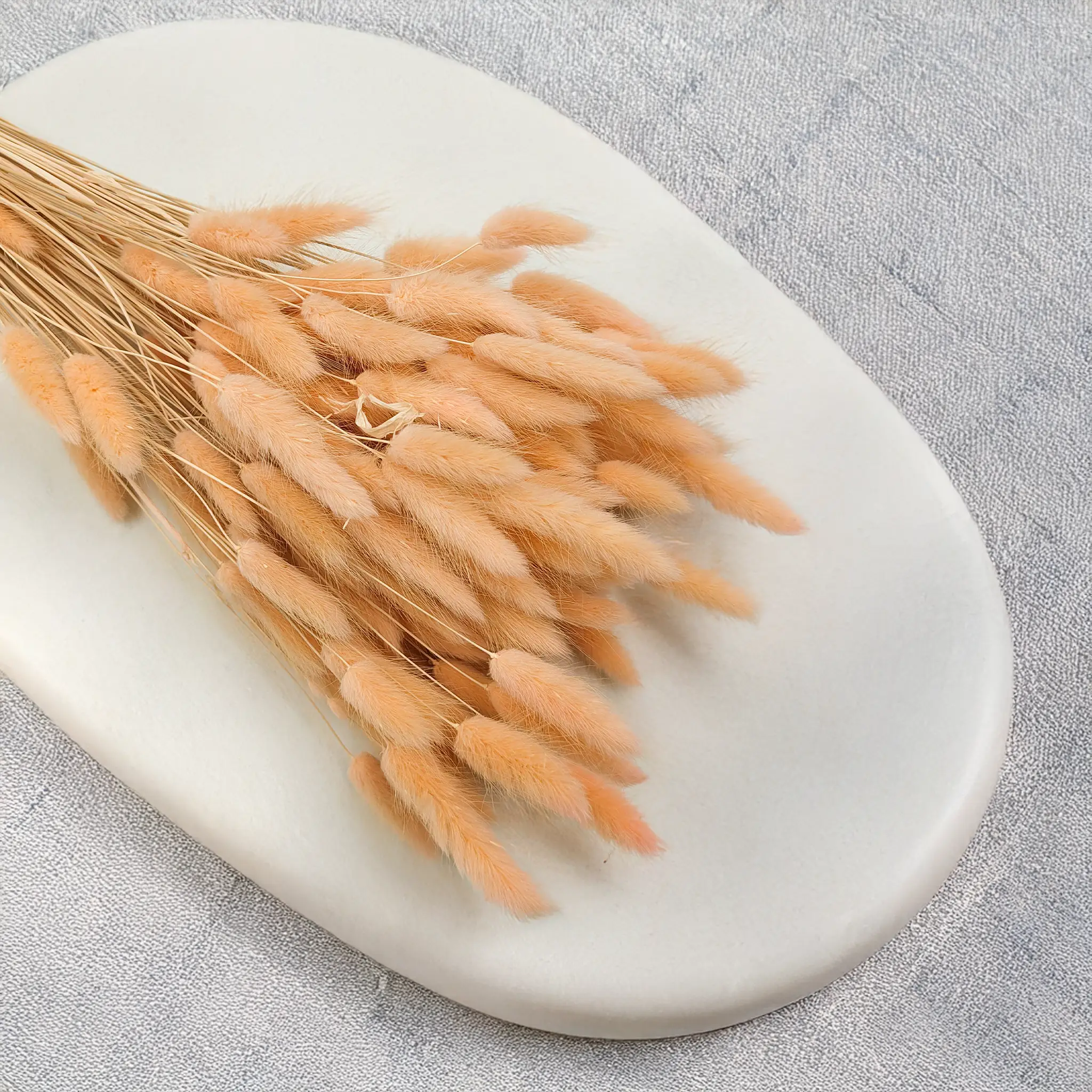 • Lagurusem w kolorze kremowym, białym, pudrowym różu lub miedzianym,