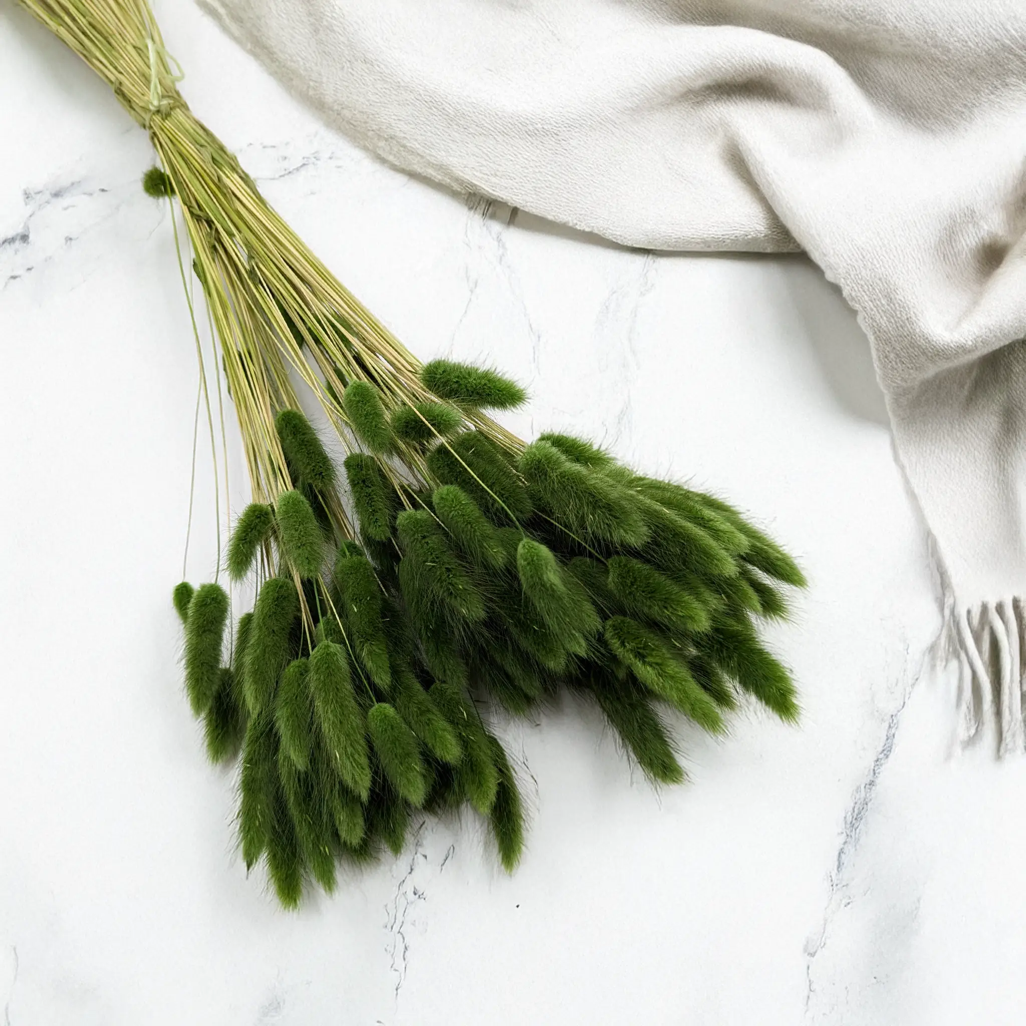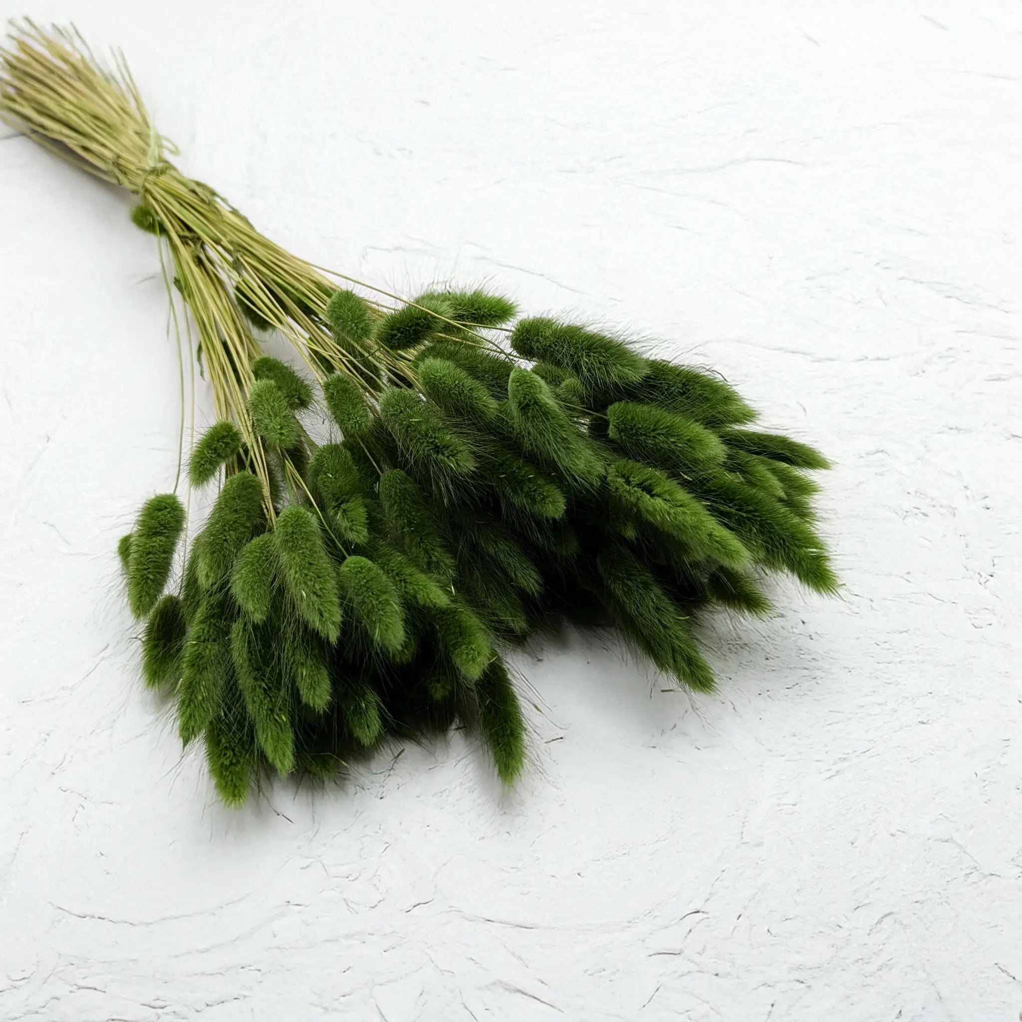 Ciemnozielony suszony Lagurus (Dmuszek jajowaty) to głęboki, naturalny akcent dekoracyjny, idealny dla miłośników eleganckich i leśnych kompozycji. Ten intensywny odcień zieleni symbolizuje równowagę, stabilność, naturę i świeżość. Doskonale wpisuje się w aranżacje bożonarodzeniowe, jesienne, rustykalne oraz loftowe. To barwa, która nadaje kompozycjom głębi, a jednocześnie nie przytłacza.