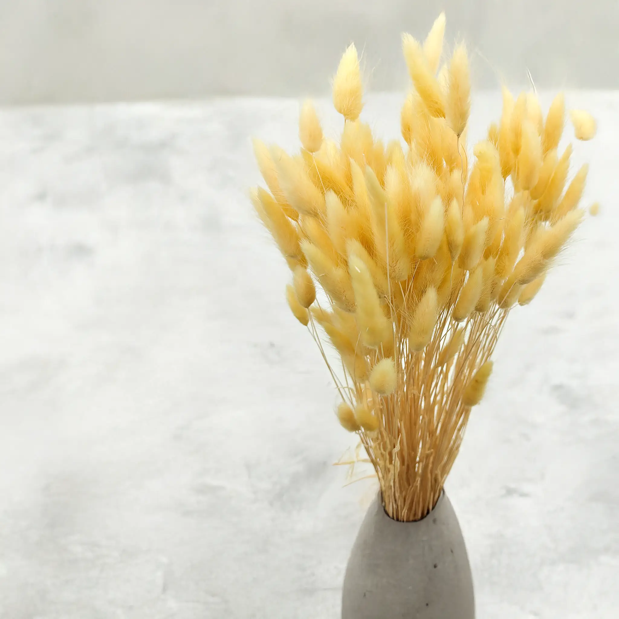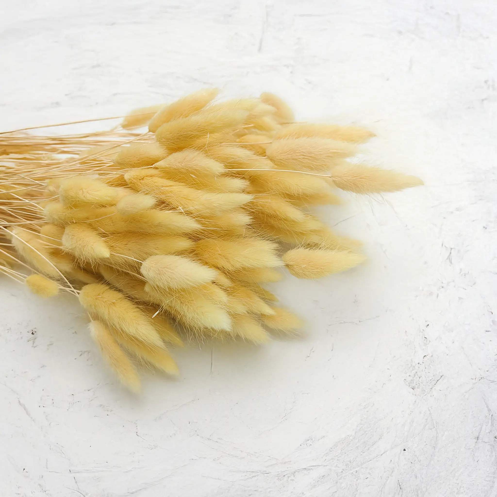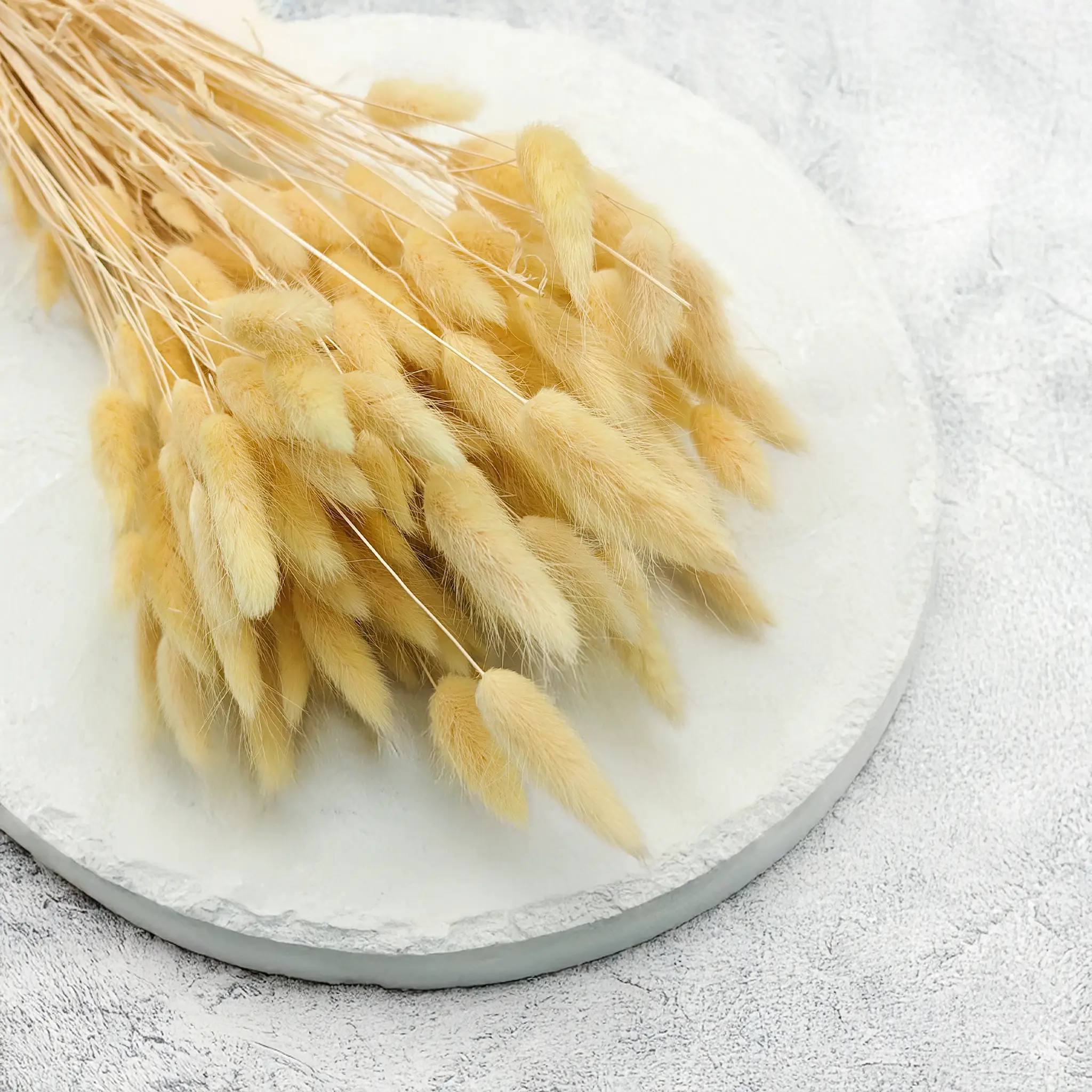 Kremowy suszony Lagurus (Dmuszek jajowaty) to ponadczasowa dekoracja o delikatnym, naturalnym charakterze. Jasny, neutralny odcień symbolizuje czystość, elegancję i spokój, dzięki czemu idealnie pasuje do klasycznych i nowoczesnych aranżacji florystycznych. Jego puszysta faktura dodaje objętości i miękkości, nie dominując przy tym kompozycji.