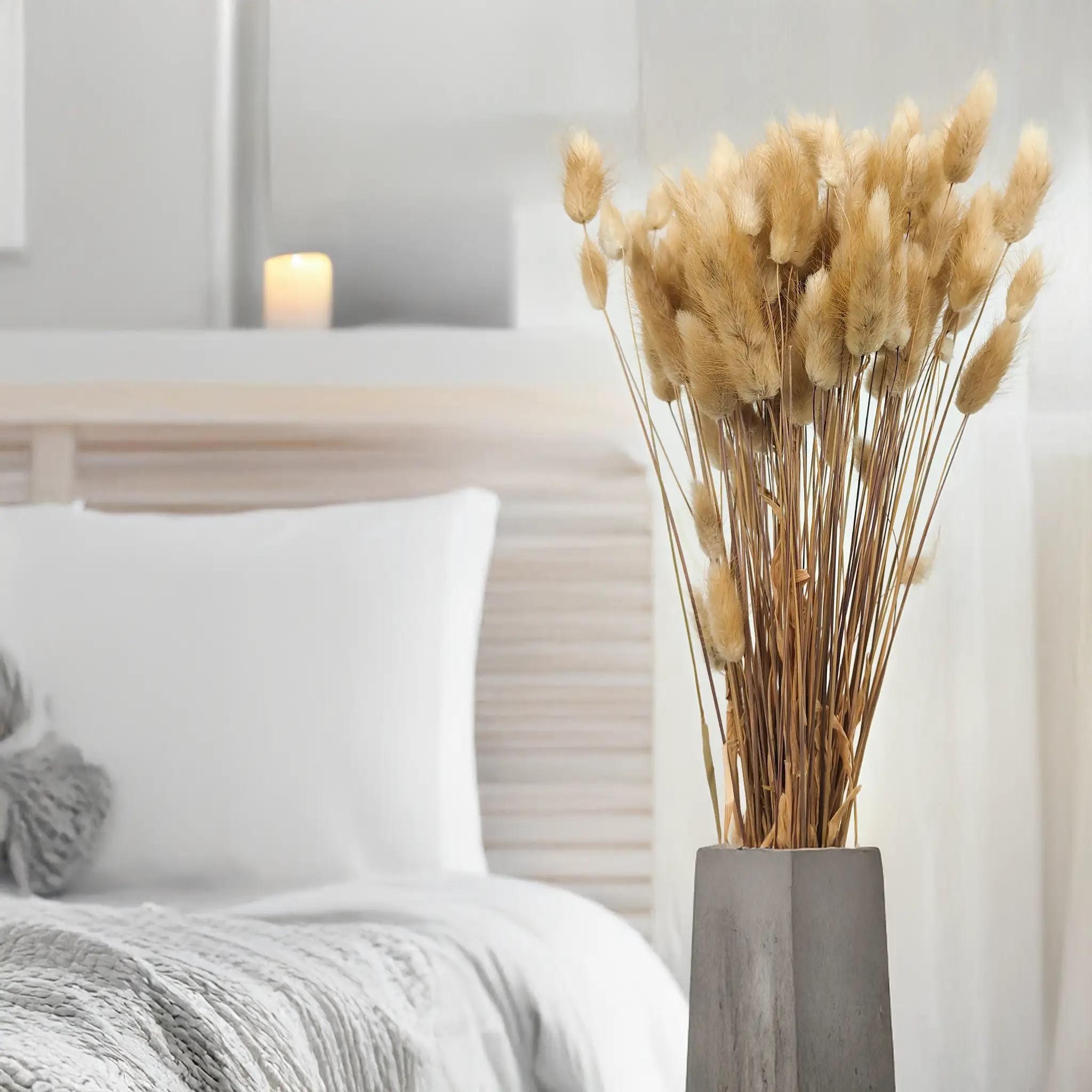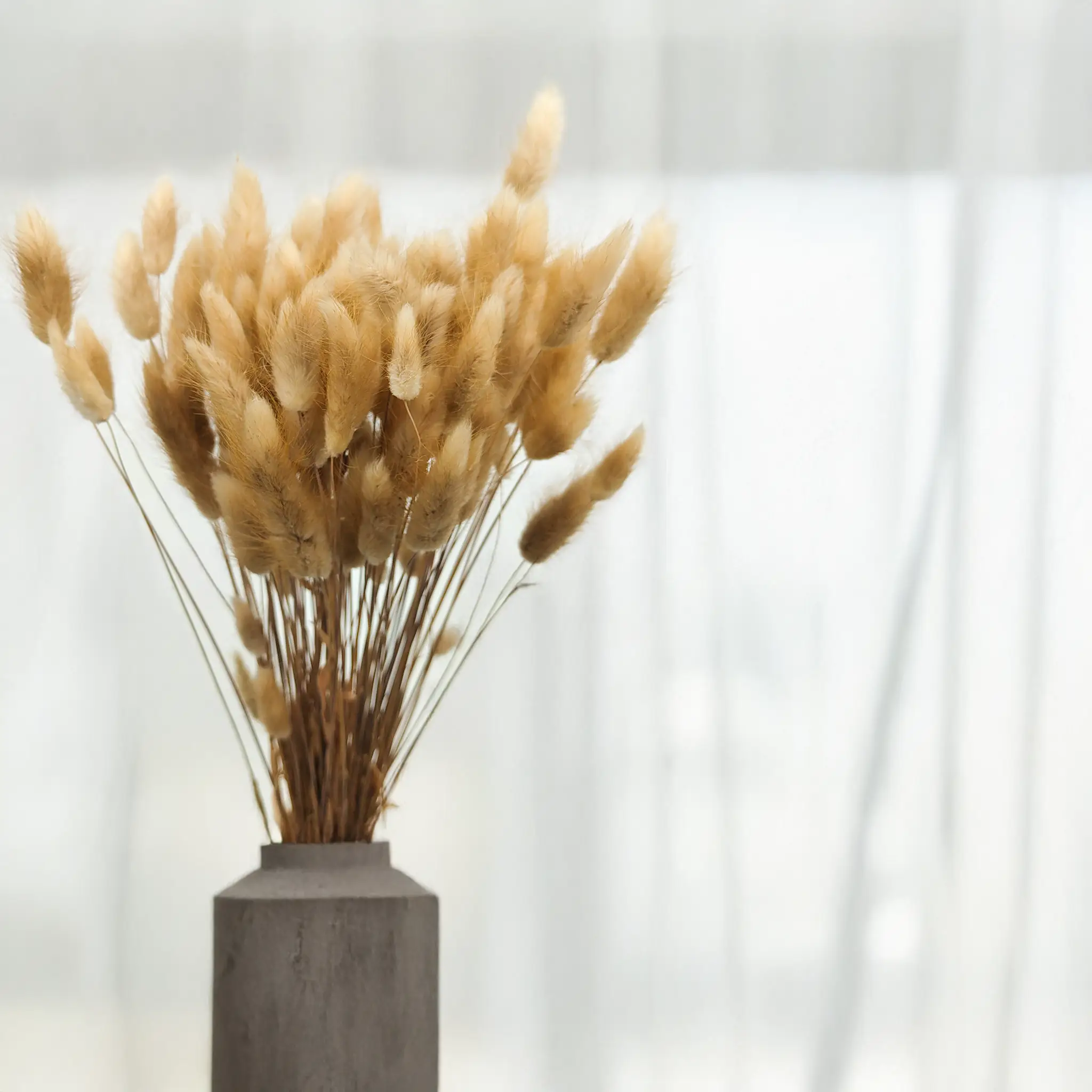 Naturalny suszony Lagurus (Dmuszek jajowaty) to klasyka wśród traw dekoracyjnych – prosty, subtelny i niezwykle uniwersalny. Beżowo-słomkowy odcień wprowadza do wnętrz harmonię, ciepło i organiczną estetykę. Symbolizuje równowagę, minimalizm i bliskość z naturą. Dzięki swojej neutralności doskonale współgra z każdą paletą barw, dlatego znajduje zastosowanie w aranżacjach ślubnych, florystyce boho, projektach DIY oraz nowoczesnych wnętrzach.