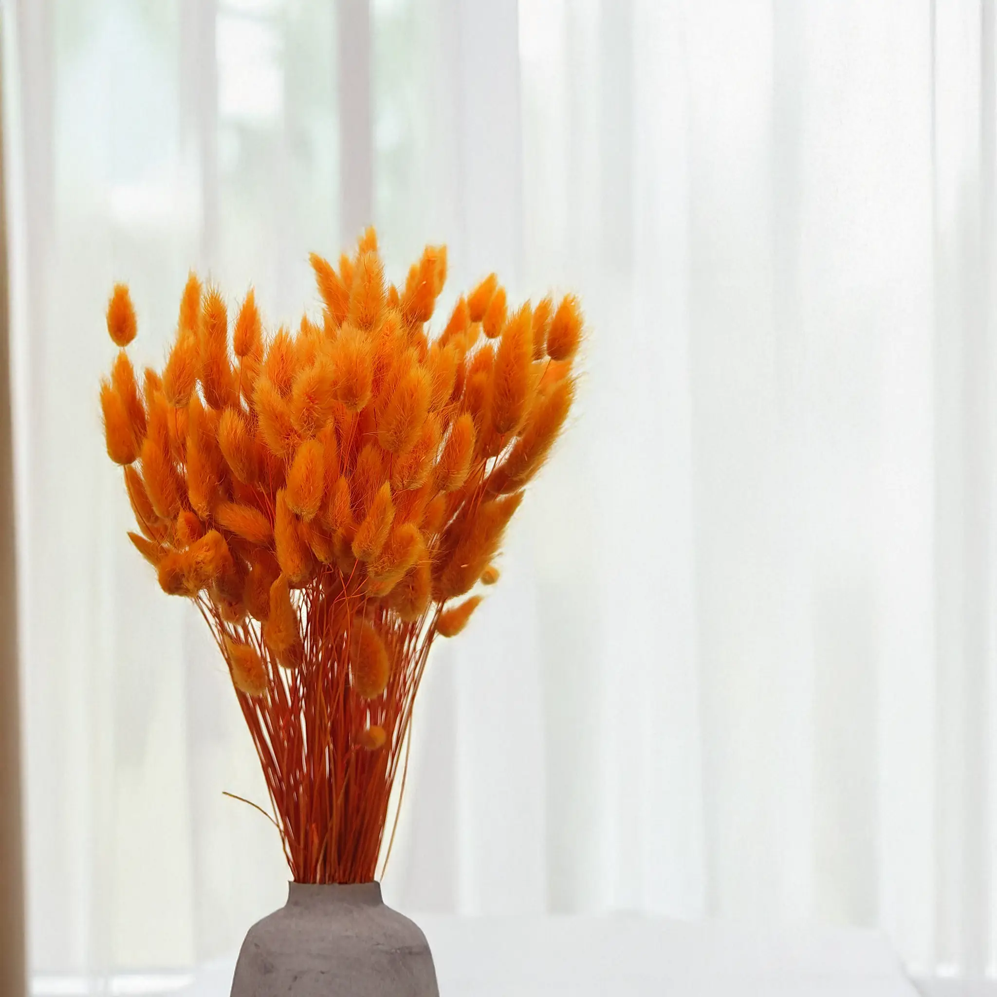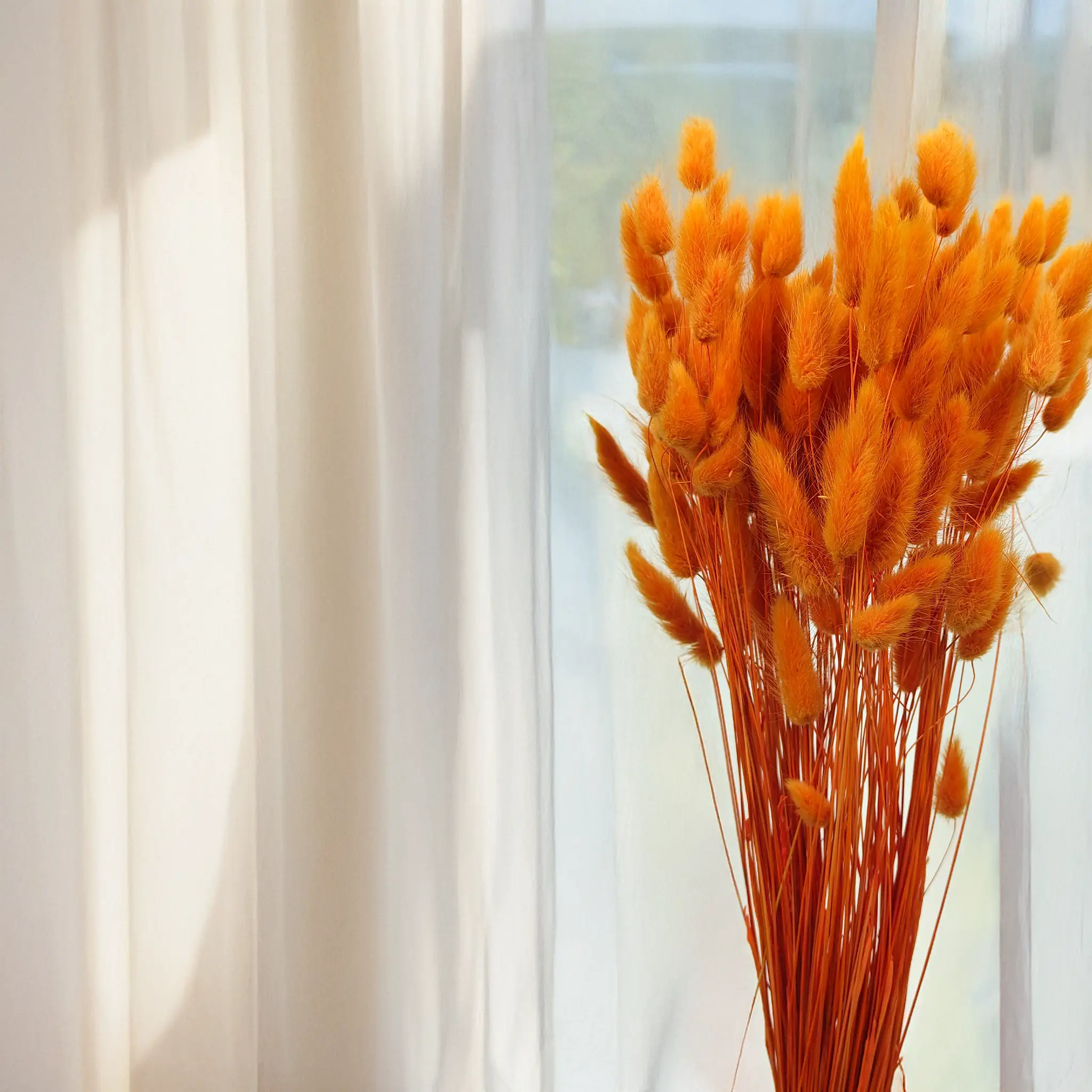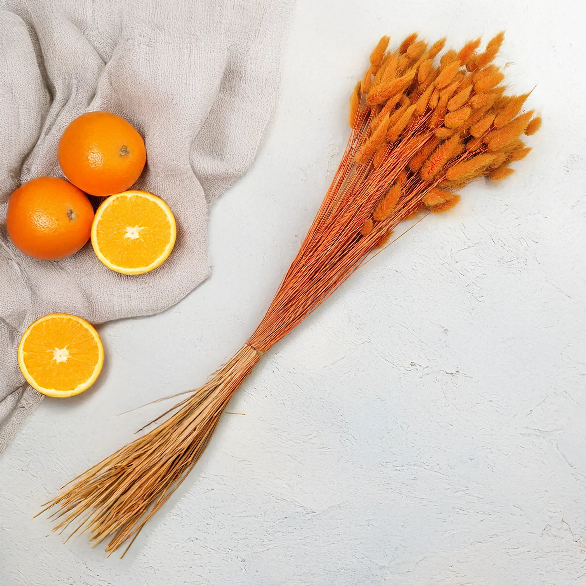 Pomarańczowy suszony Lagurus (Dmuszek jajowaty) to wyrazisty, ciepły i energetyzujący akcent florystyczny, który natychmiast przyciąga uwagę. Odcień ten symbolizuje kreatywność, radość życia i dynamikę – świetnie nadaje się do aranżacji z charakterem, zarówno nowoczesnych, jak i rustykalnych. Fluffy kłosy dodają objętości i lekkości, a intensywny kolor nadaje całości wyrazisty ton.