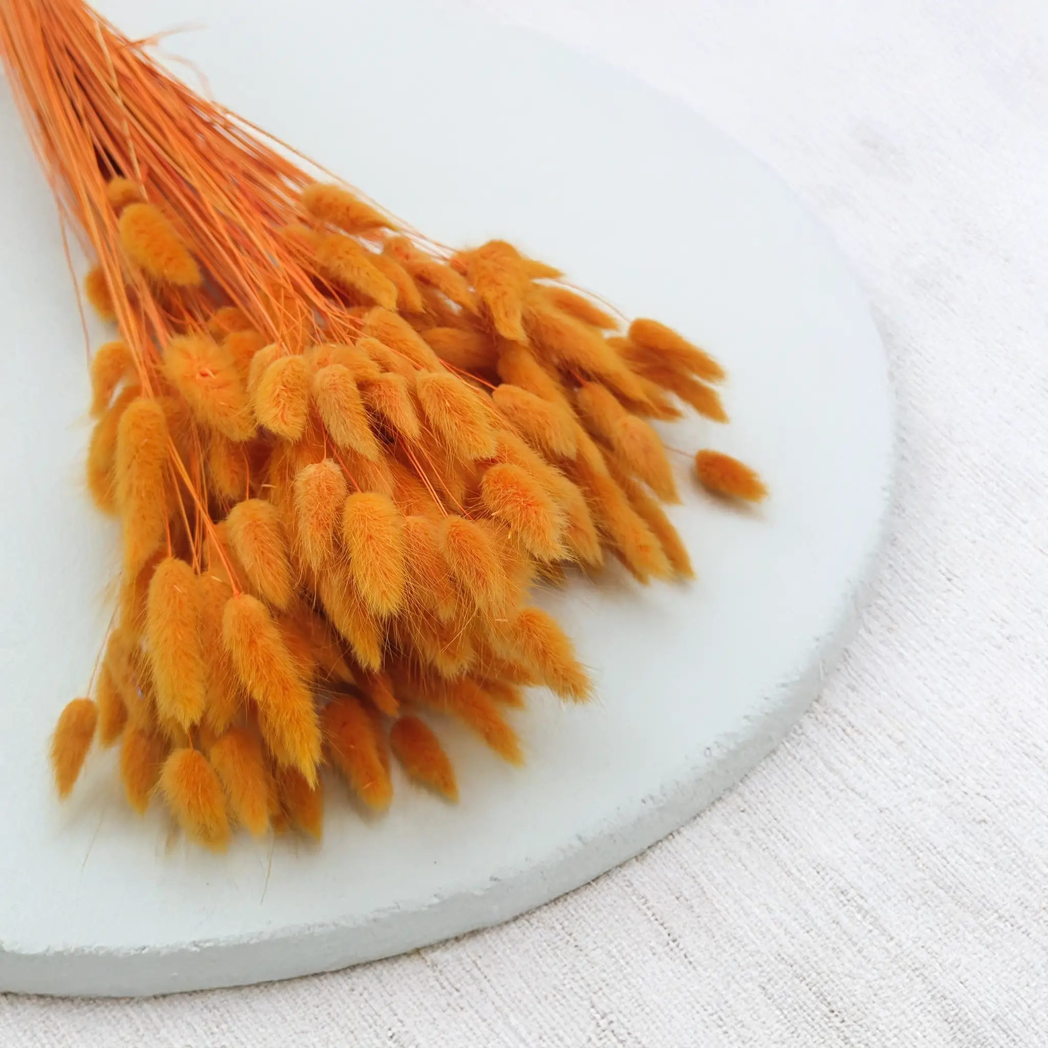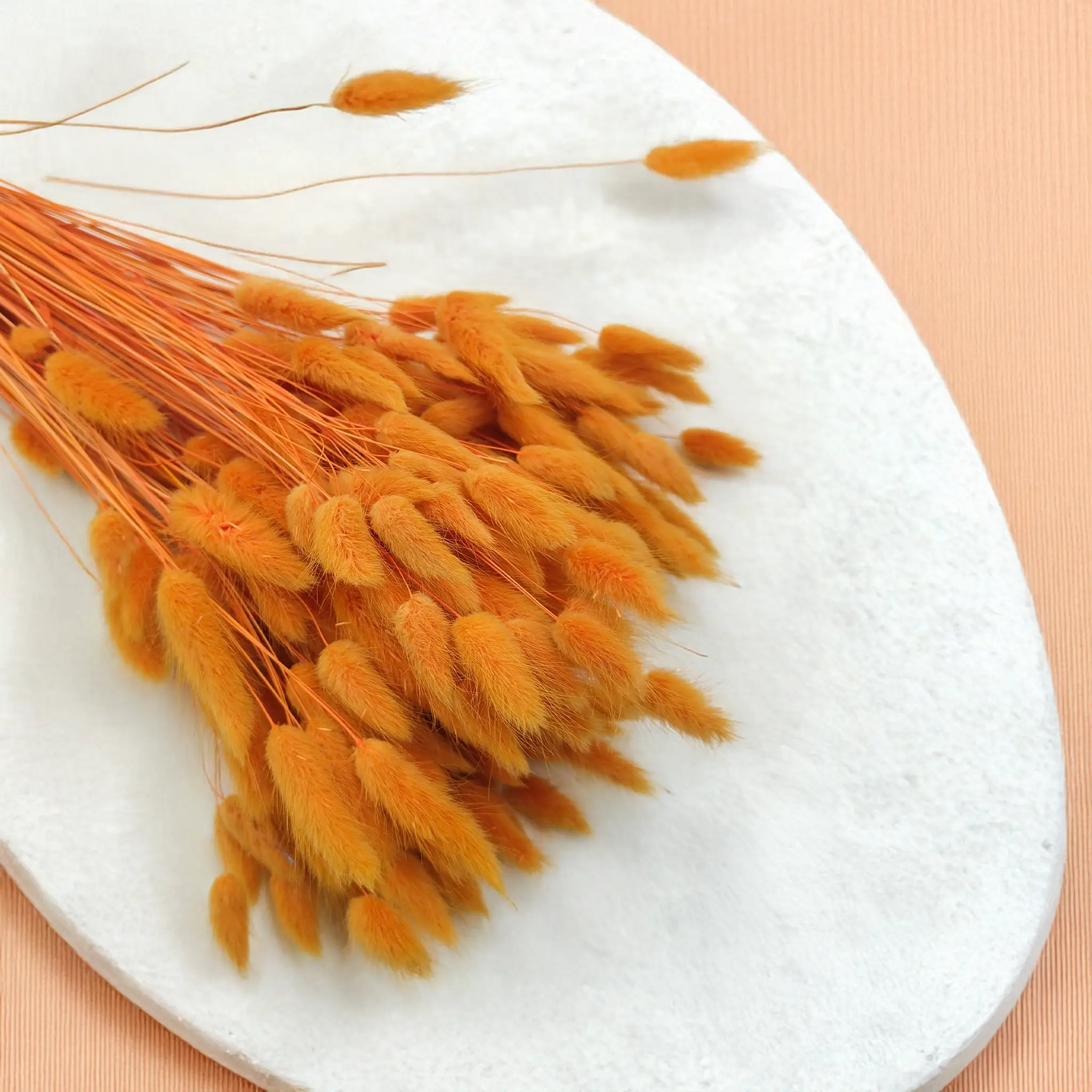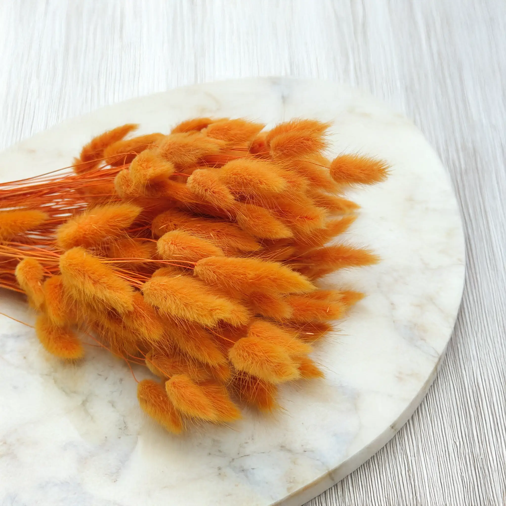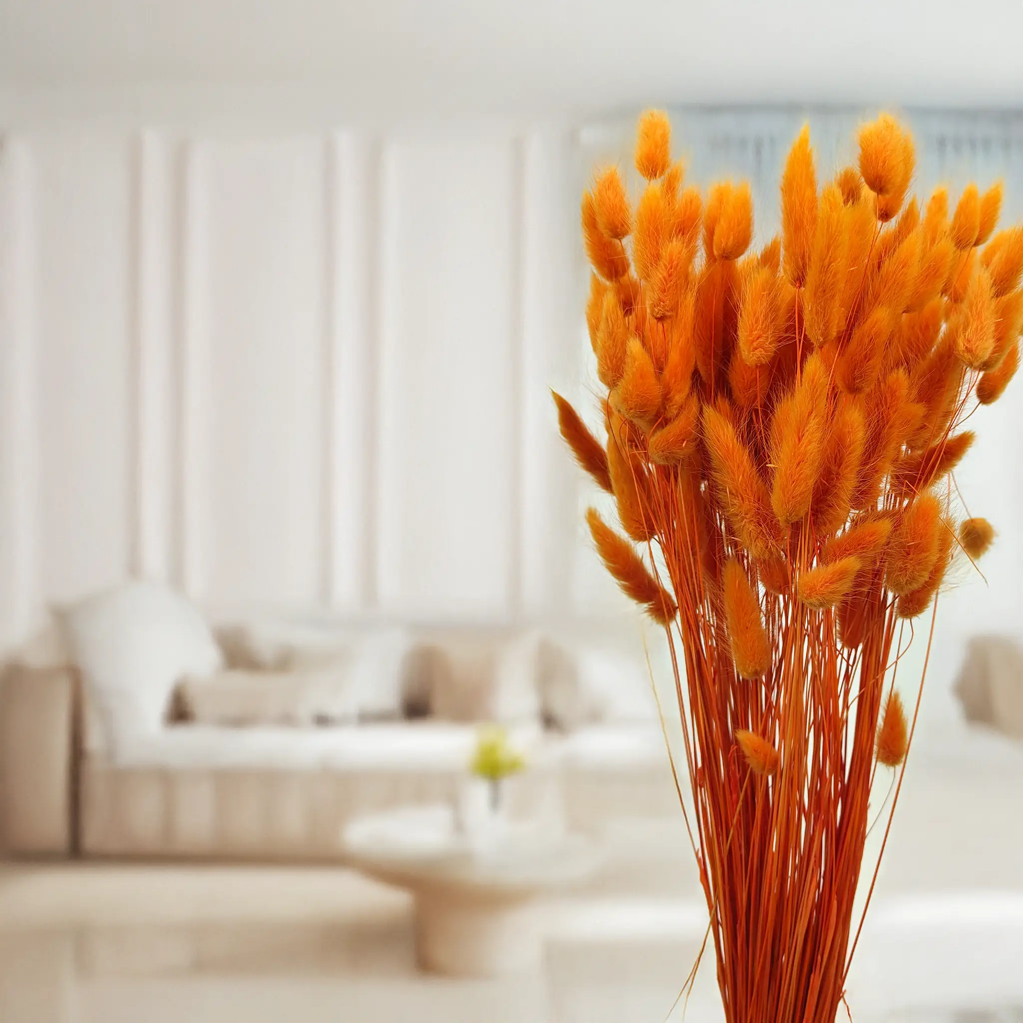 Pomarańczowy suszony Lagurus (Dmuszek jajowaty) to wyrazisty, ciepły i energetyzujący akcent florystyczny, który natychmiast przyciąga uwagę. Odcień ten symbolizuje kreatywność, radość życia i dynamikę – świetnie nadaje się do aranżacji z charakterem, zarówno nowoczesnych, jak i rustykalnych. Fluffy kłosy dodają objętości i lekkości, a intensywny kolor nadaje całości wyrazisty ton.
